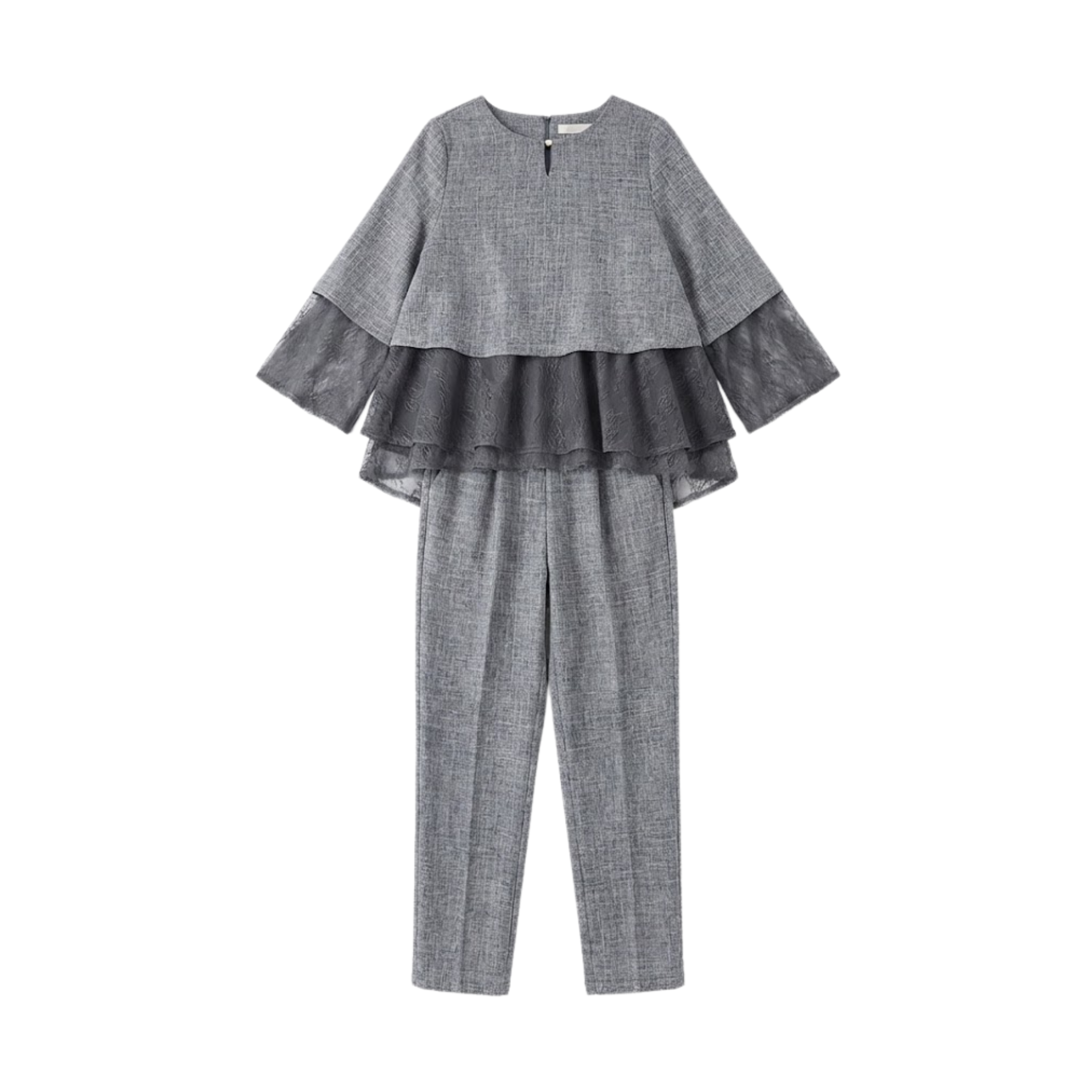 パンツ丈はアンクル丈からフルレングスがベスト。テーパードパンツは腰や太ももをさりげなくカバーします。