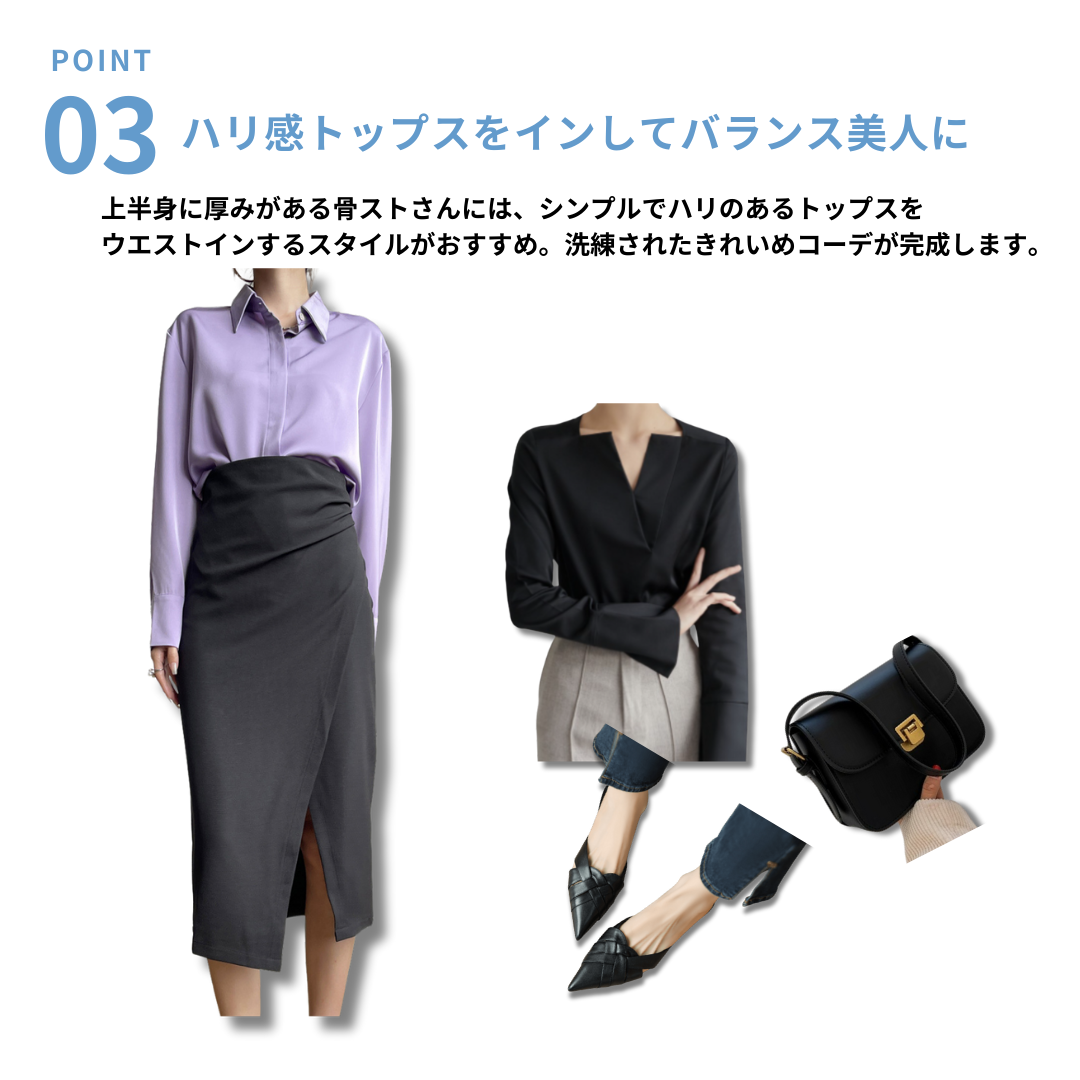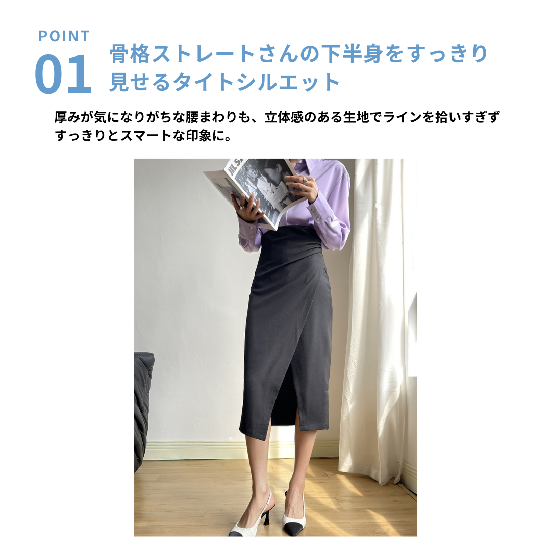 骨格ストレートさんにおすすめのサイドスリットタイトスカートです◎