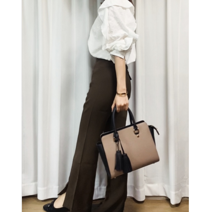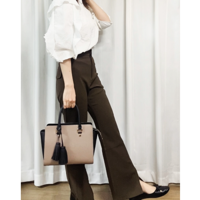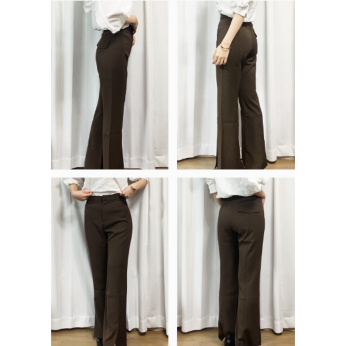 フロントスリットが縦のラインを強調し、脚をまっすぐ長く見せるスラックスパンツ。骨格ストレートに馴染むシンプルなシルエットで、きれいめにもカジュアルにも対応可能。スタイルアップを叶える、美脚見えパンツです。