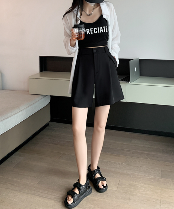 スッキリとしたストレートシルエットが魅力のシンプルハーフパンツ。ハリのある素材が脚のラインを美しく整え、カジュアルながらも上品な印象に。ウエスト周りのもたつきがなく、トップスをインしてもきれいに決まるデザイン。シャツやブラウスと合わせてキレイめに、Tシャツやスニーカーでラフなスタイルも楽しめる万能アイテム。