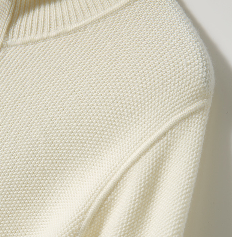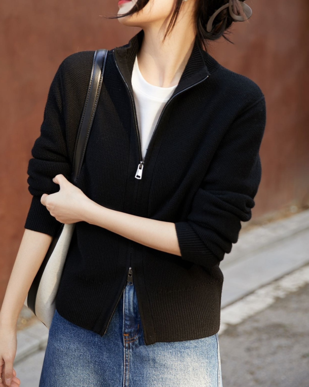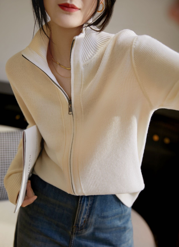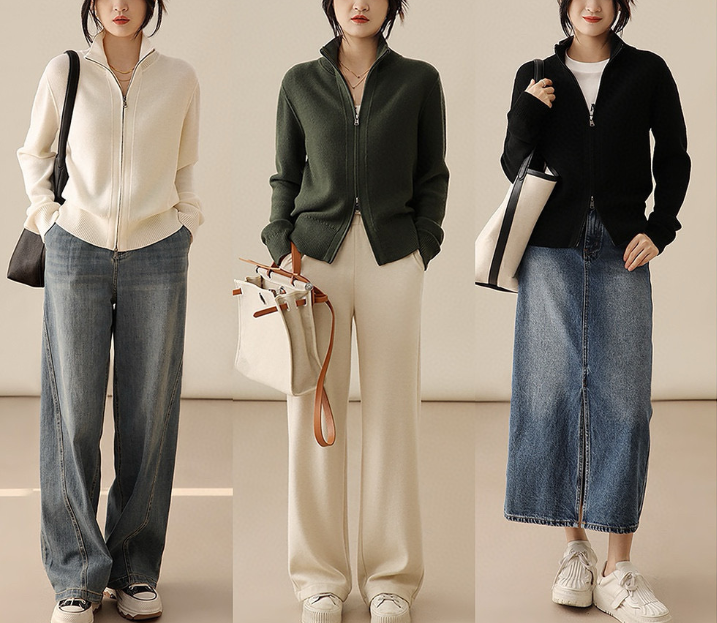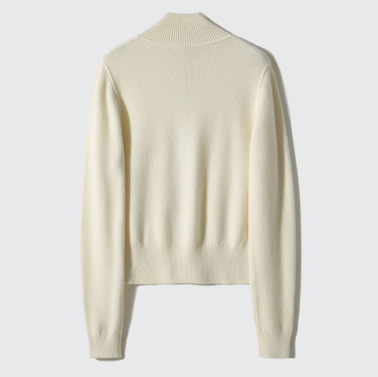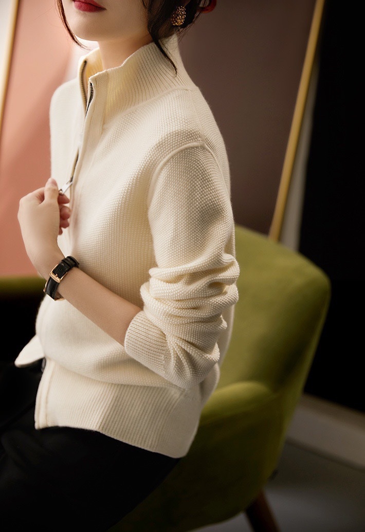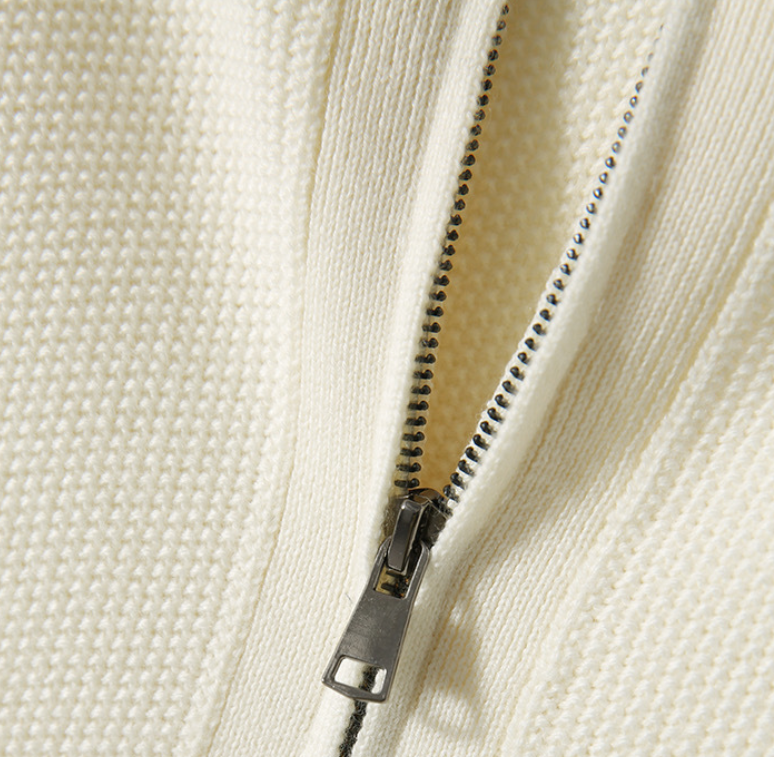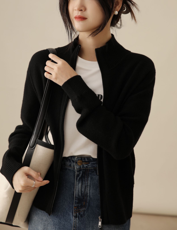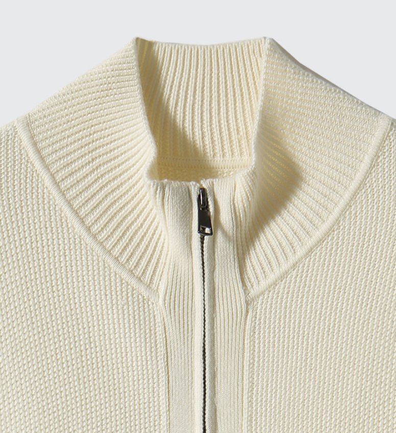 首元から裾までまっすぐ落ちるシルエットが、骨ストさんになじむジップニットトップス。シンプルなデザインと、縦ラインを意識できるフロントジップで、上半身をすっきりと見せてくれます。程よくフィットするサイズ感なので、羽織としても一枚着としても使いやすく、パンツスタイルとの相性も抜群。カジュアルになりすぎず、大人のきれいめコーデに取り入れやすい一着です。
