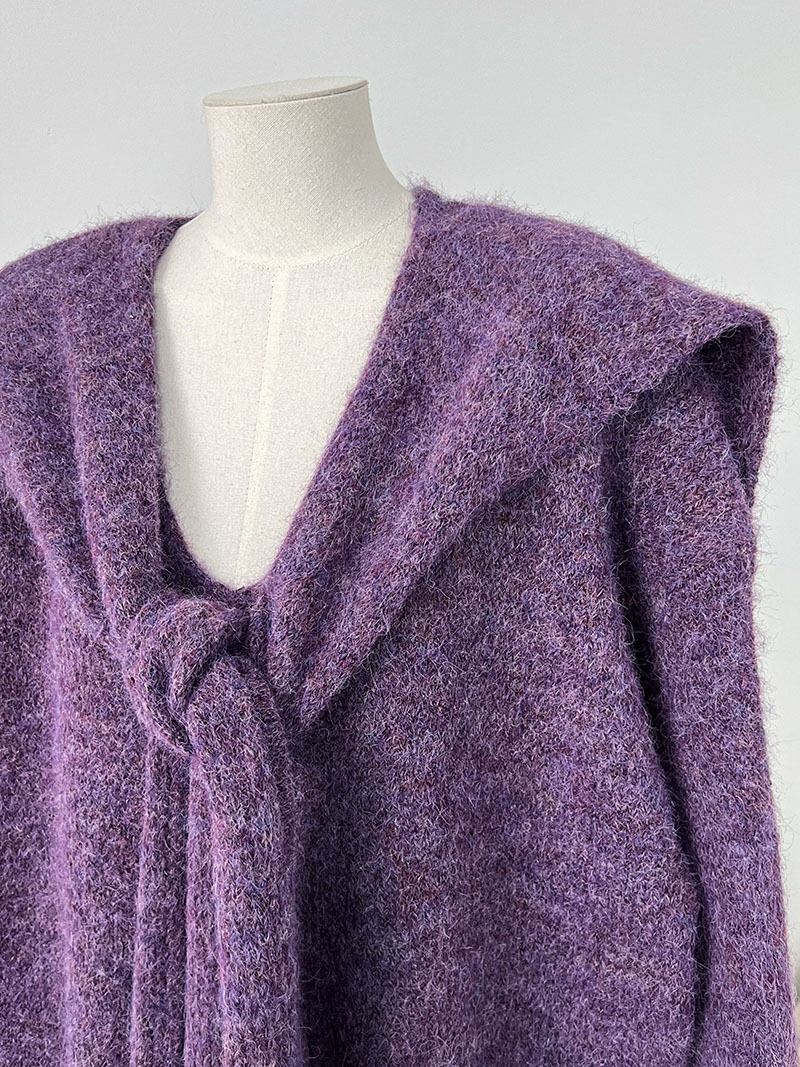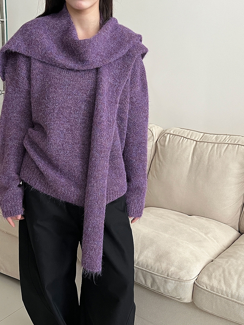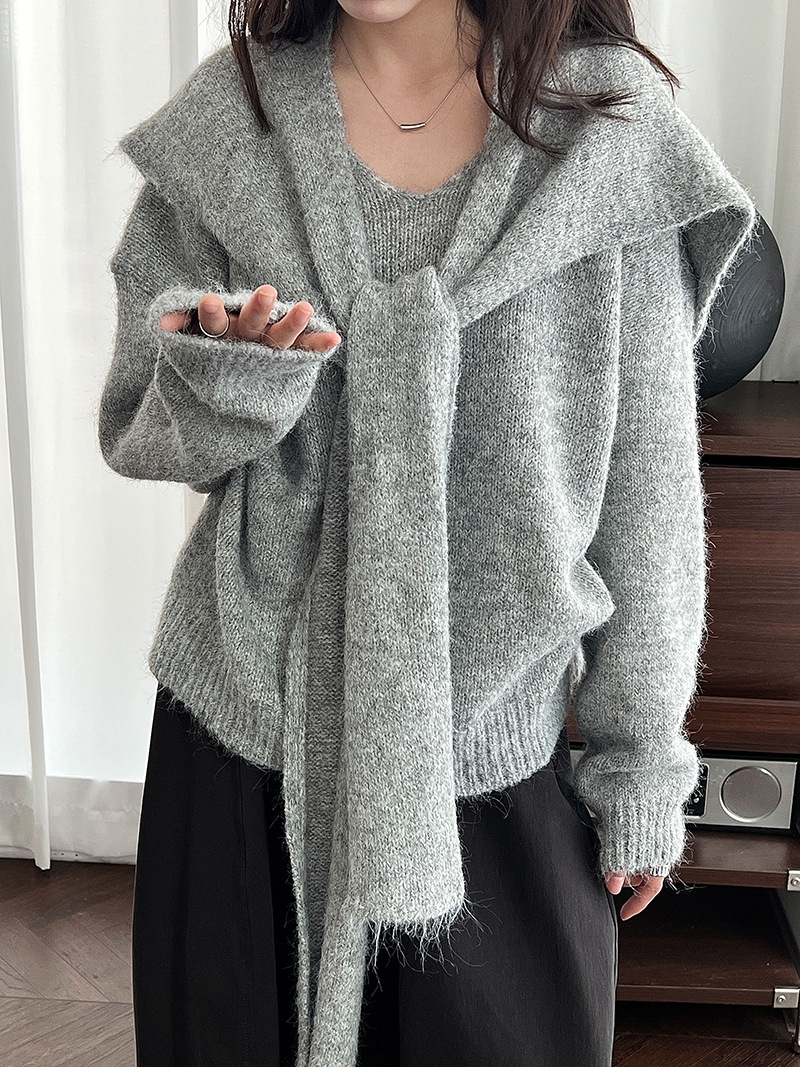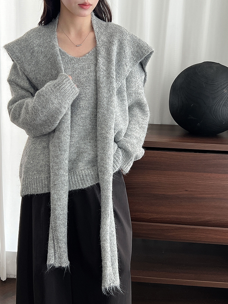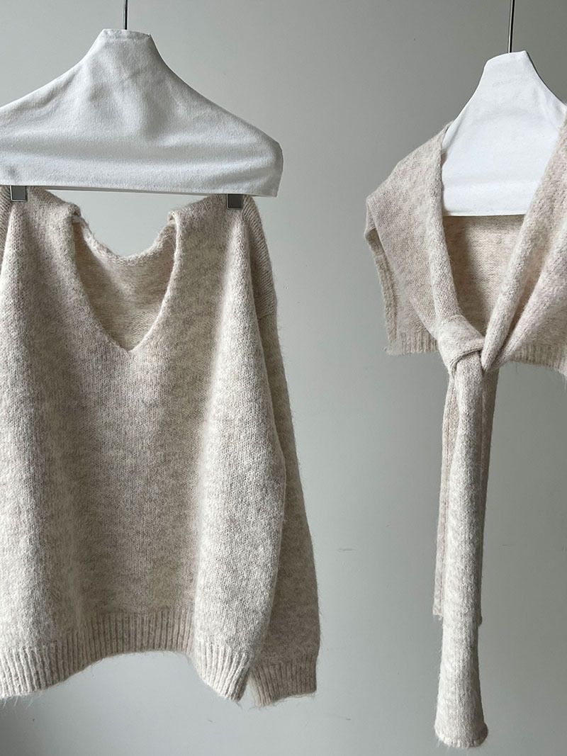 骨格ストレートさんが得意とする、シンプルで落ち着いた印象を活かせるショール付きニットトップス。Vネックの開きが首元に抜けをつくり、上半身をコンパクトに見せてくれます。付属のショールは巻き方次第で縦ラインを意識でき、コーデに変化をつけながらも着膨れ感を抑えた着こなしが可能。柔らかさのある素材感でも、全体はすっきりと大人っぽくまとまる一枚です。
