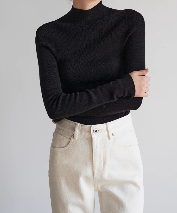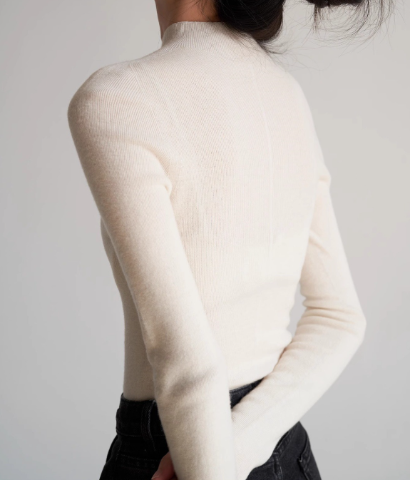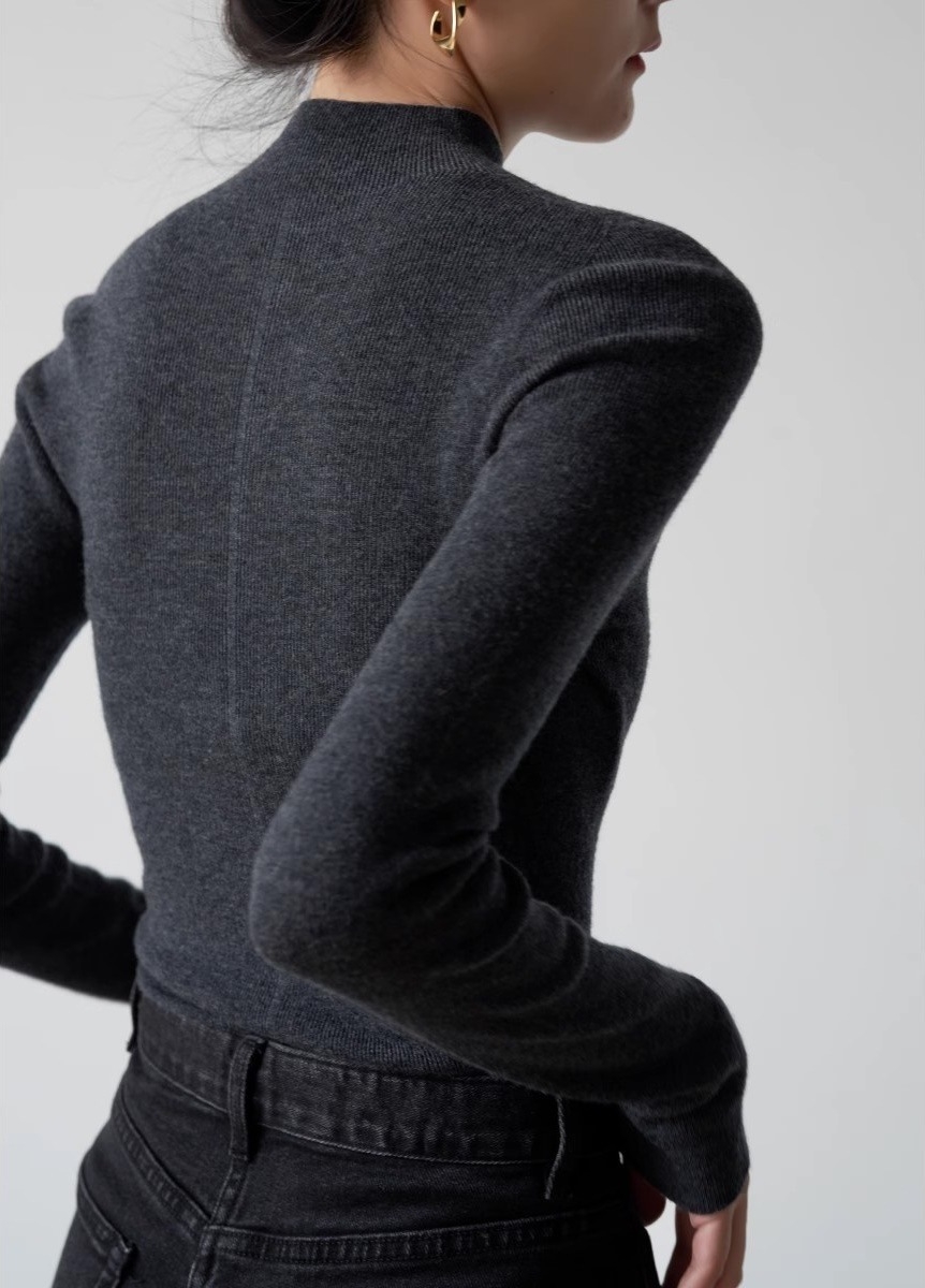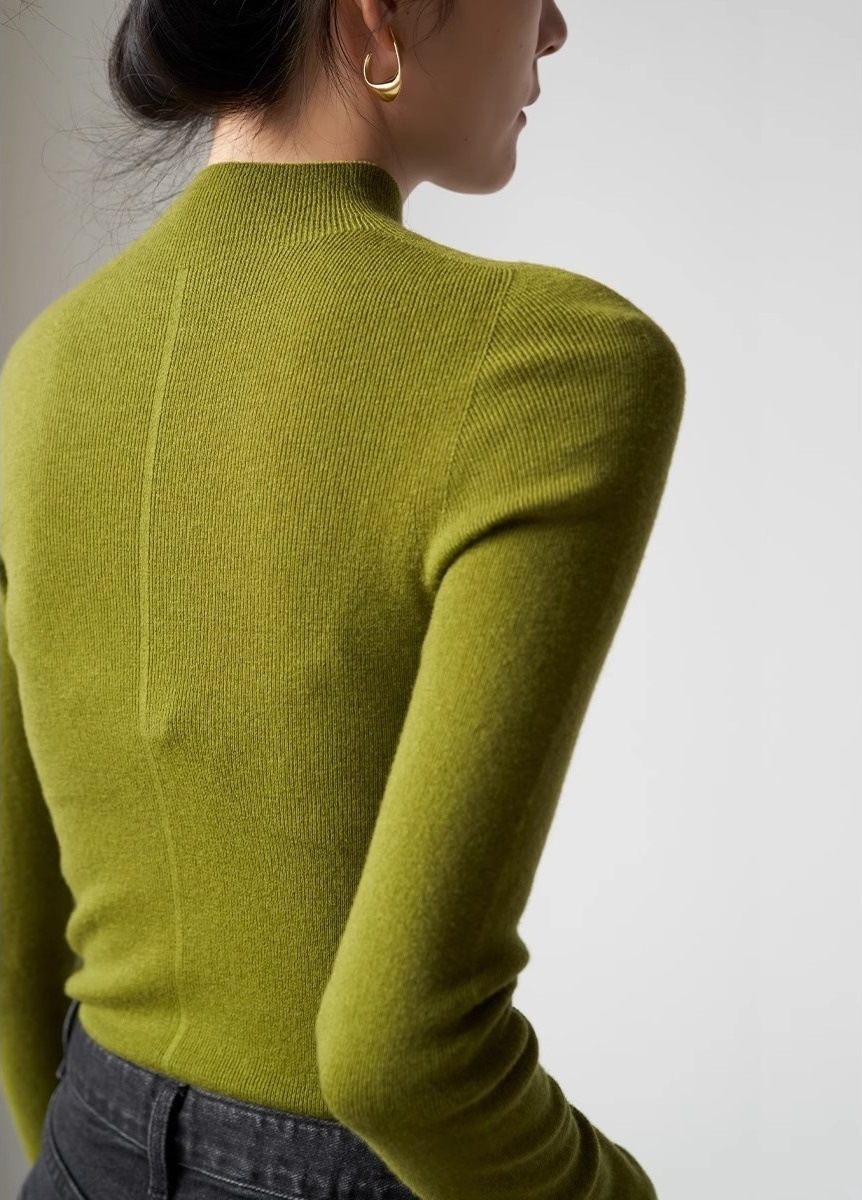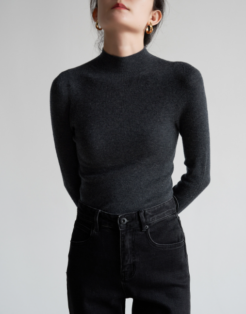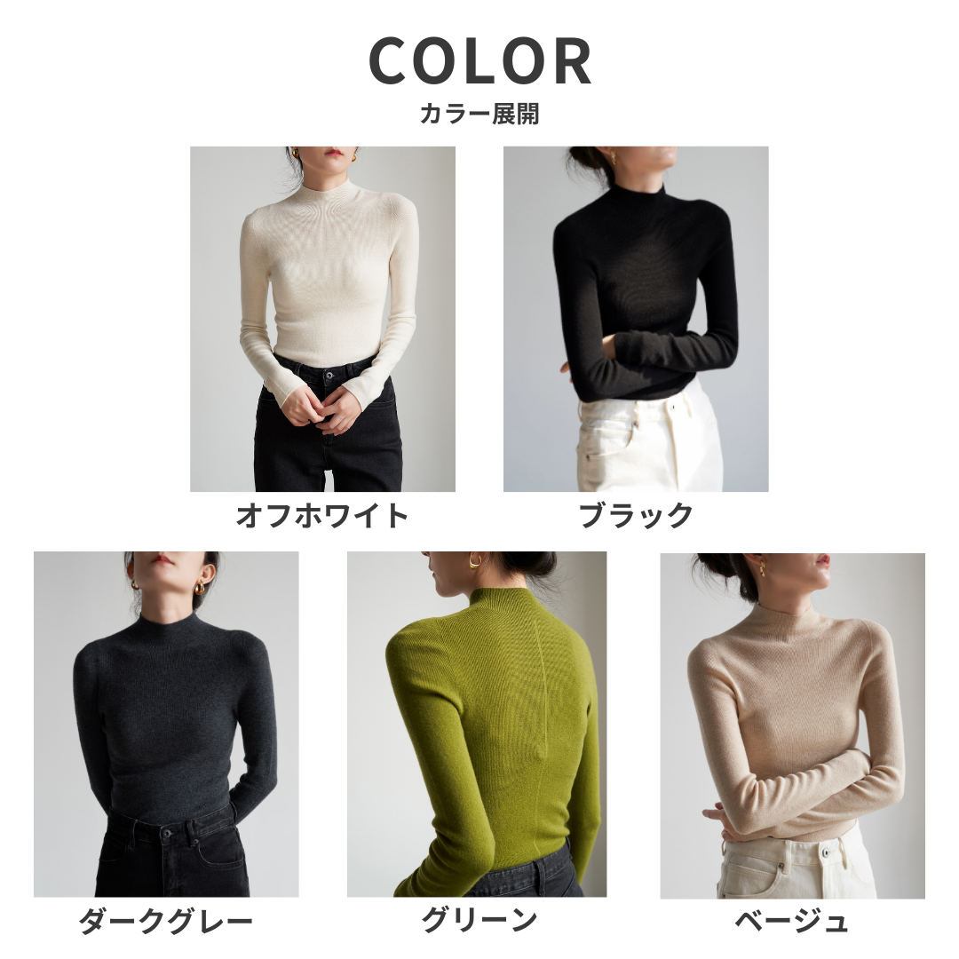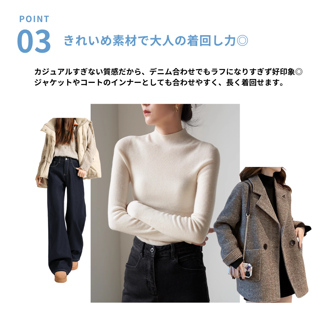 ミニマルなデザインが、上半身をすっきり見せ、きちんと感のある印象に導きます。ほどよくフィットするシルエットで着膨れしにくく、パンツ・スカート問わず好バランス。一枚着としても、ジャケットやアウターのインナーとしても使いやすく、オン・オフ兼用で活躍します。