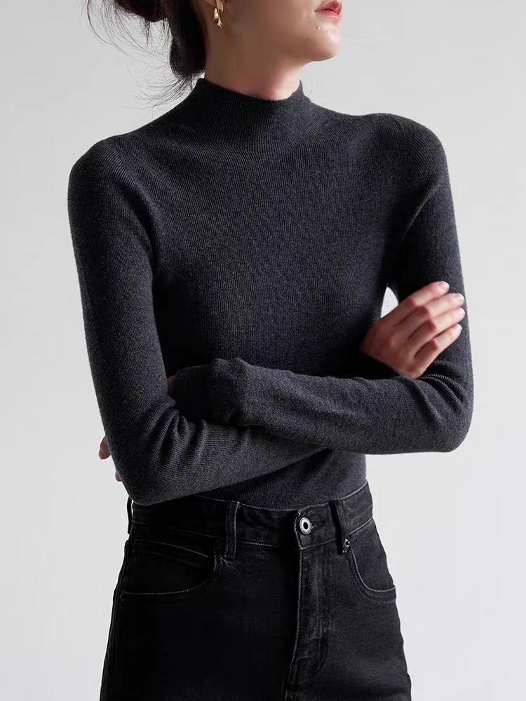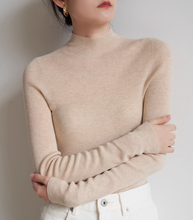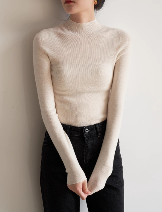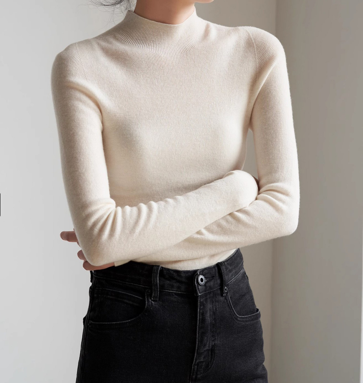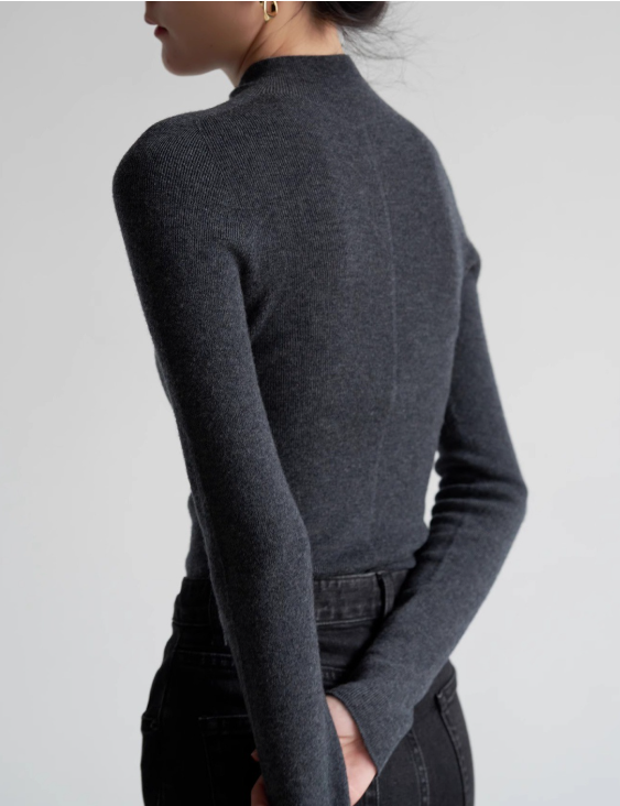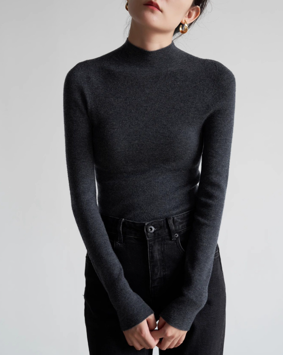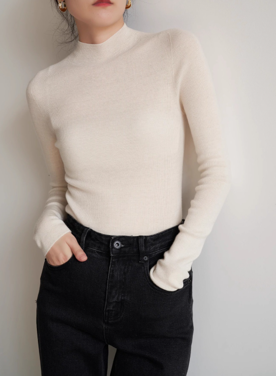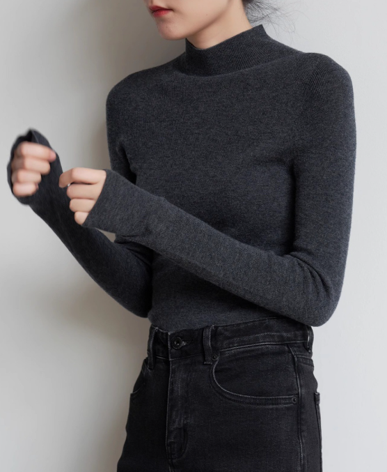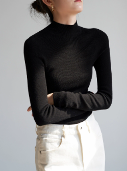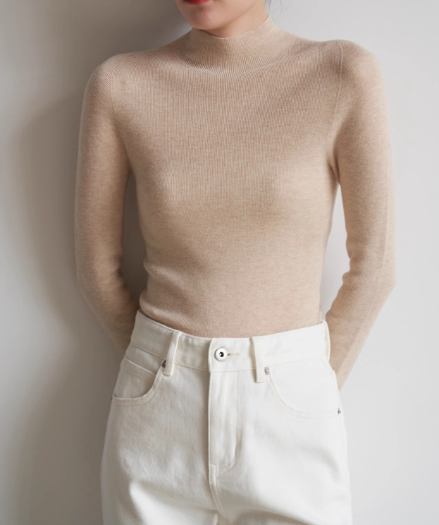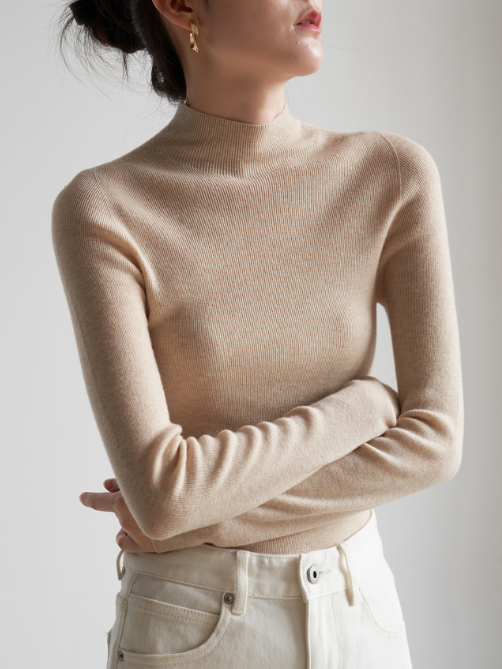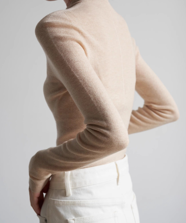 ミニマルなデザインが、上半身をすっきり見せ、きちんと感のある印象に導きます。ほどよくフィットするシルエットで着膨れしにくく、パンツ・スカート問わず好バランス。一枚着としても、ジャケットやアウターのインナーとしても使いやすく、オン・オフ兼用で活躍します。