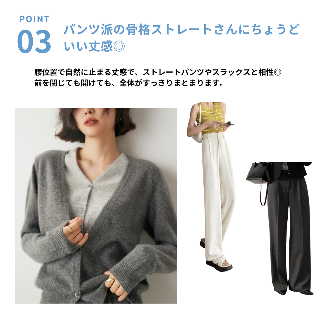 上半身にメリハリが出やすい骨格ストレートさんでも取り入れやすい、フェイクレイヤードデザインのカーディガン。