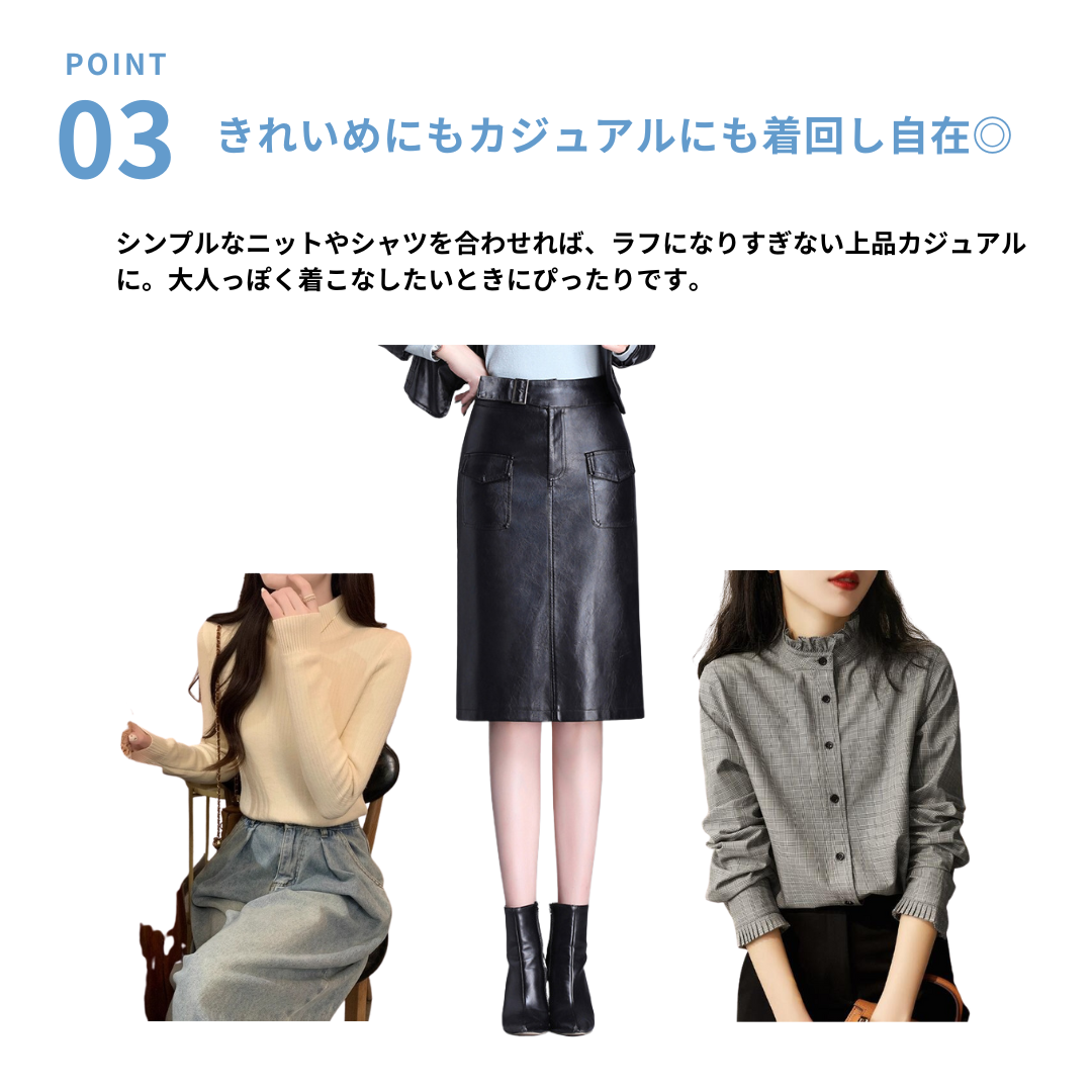 骨格ストレートさんが苦手としやすい「下半身のボリューム感」や「重心のブレ」を考え、縦ラインを意識したシルエットと、形を保ちやすい素材感にこだわったスカートです。腰まわりから裾にかけて広がりすぎないラインで、体の丸みを強調せず、全身をすっきりとした印象に。柔らかすぎない素材が下半身のラインを拾いにくく、トップスをインしてもアウトでも、「着ただけで整って見える」バランスを叶えます。
