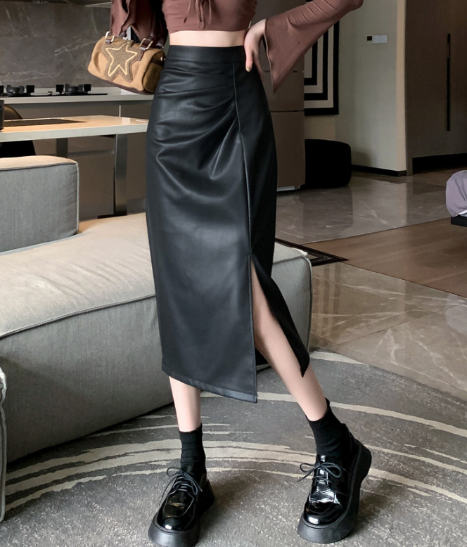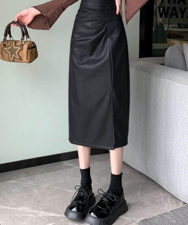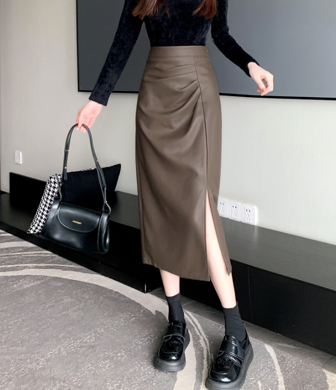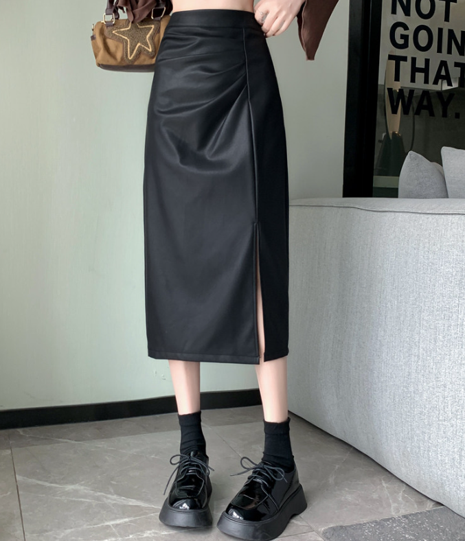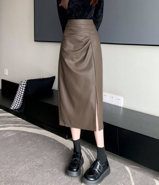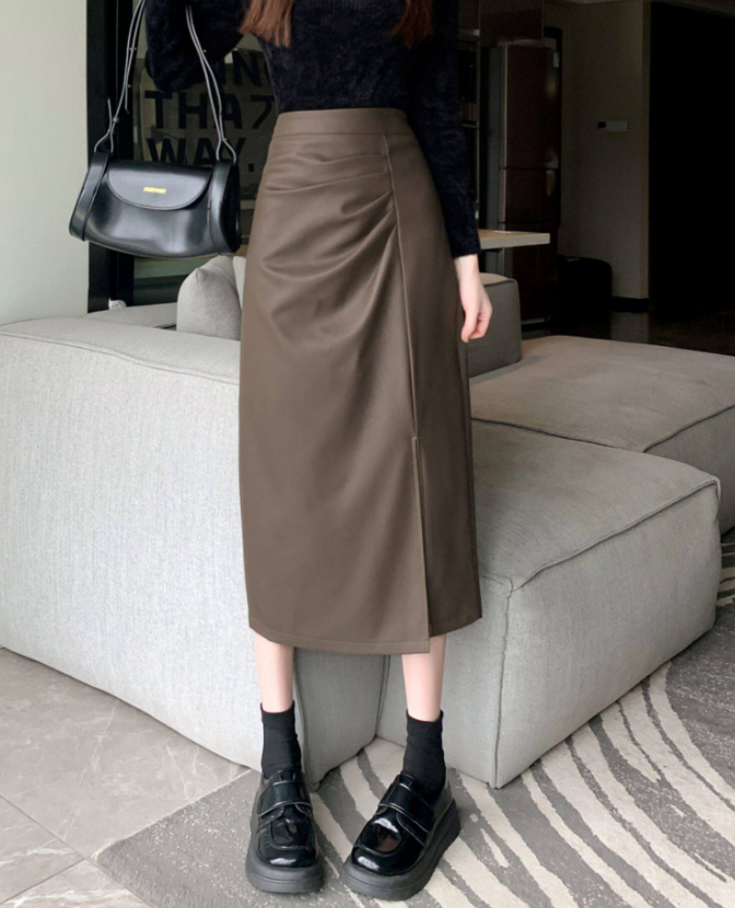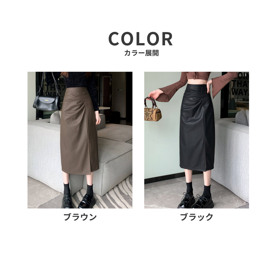 腰位置が高く、ヒップや太ももに立体感が出やすい骨格ストレートさんのために設計されたレザー調Iラインスカート。程よいハリ感のある素材が体の丸みを拾いすぎず、縦ラインを強調することで下半身をすっきり見せてくれます。ラップ風デザインとスリットが抜け感をプラスし、重たく見えがちなレザー素材でもシャープで洗練された印象に。きちんと感と今っぽさを両立し、オンオフ問わず活躍する一枚です。