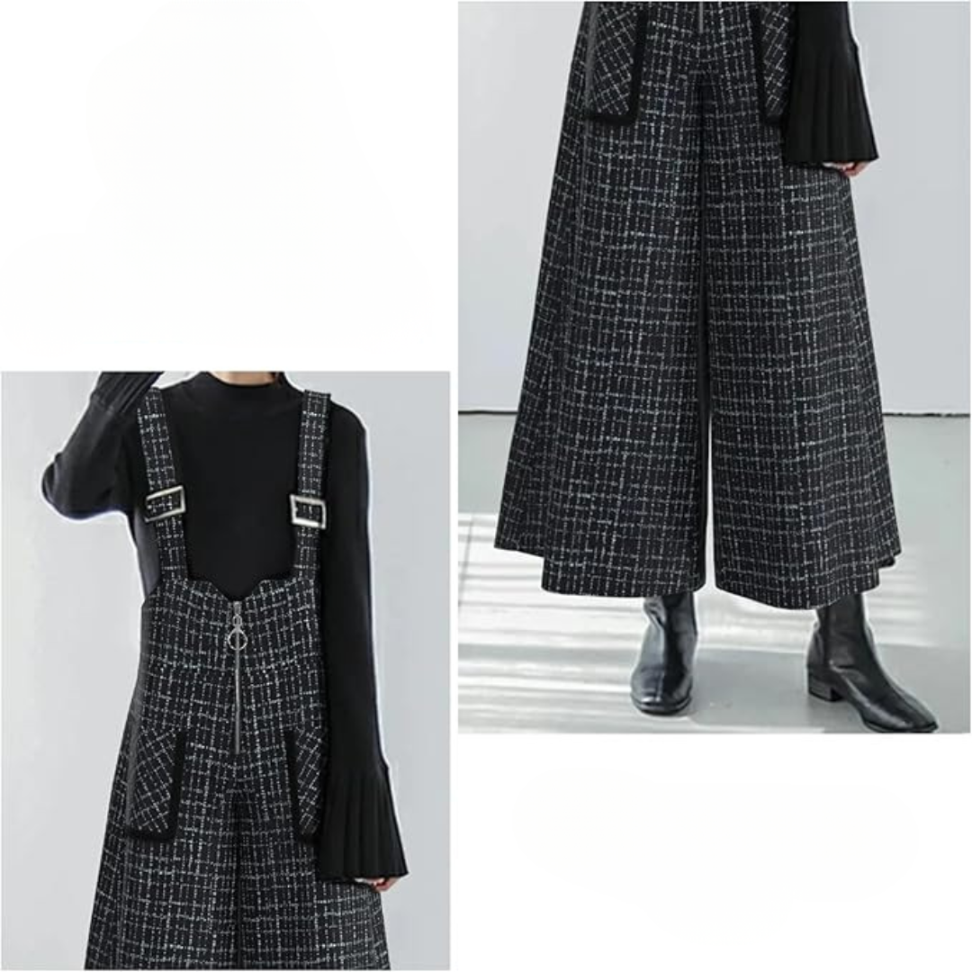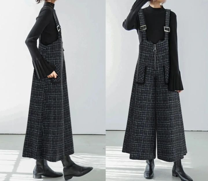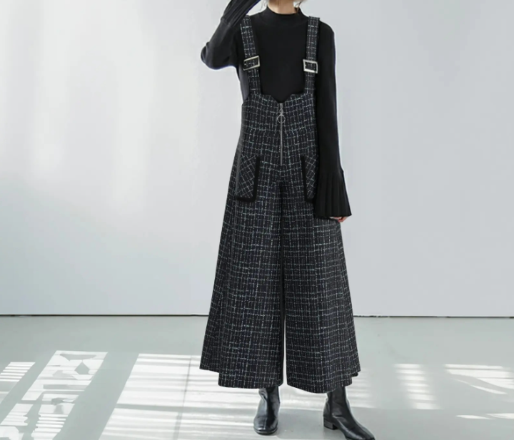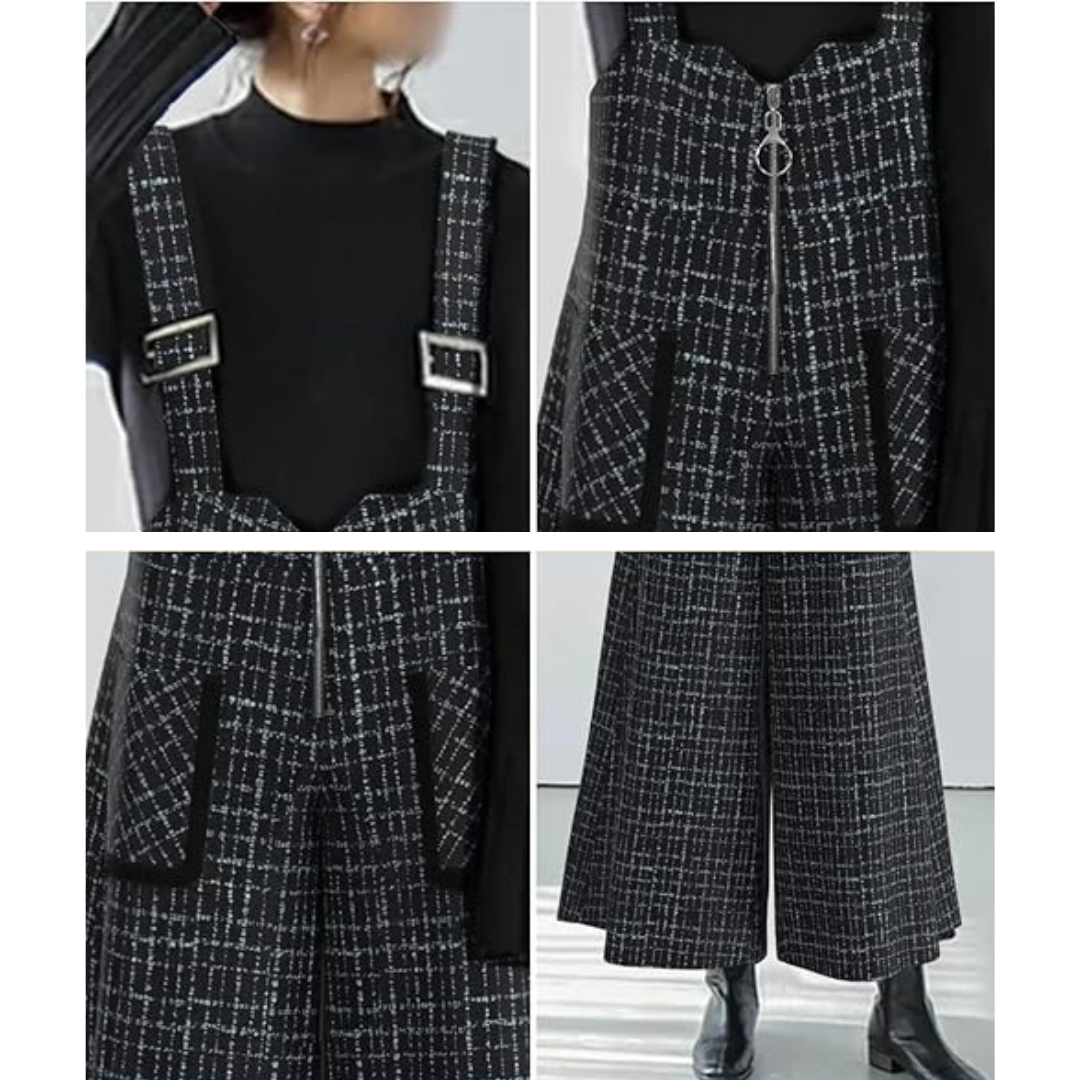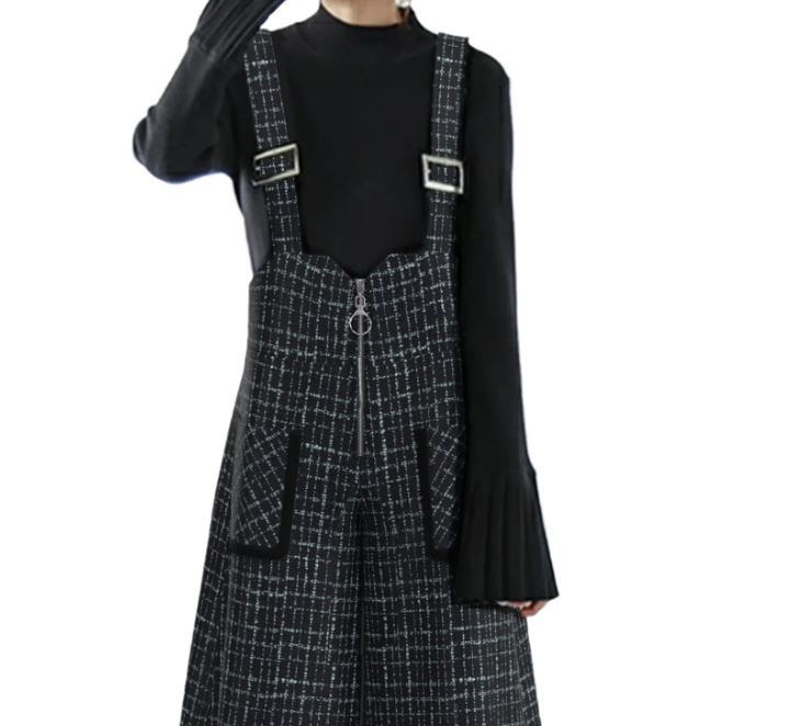 骨格ストレートさんが得意とする縦のライン・直線的なシルエット・落ち感のある素材感を活かせるジャンパースカート。広がりすぎないストレート寄りのワイドシルエットと、胸元から裾まで続く縦ラインデザインで重心が上に集まりやすい骨格ストレートさんでも全身をすっきり・バランス良く見せてくれる一着です。インナーをシンプルにまとめることで、カジュアルになりすぎず、大人っぽく着用できるのもポイント。