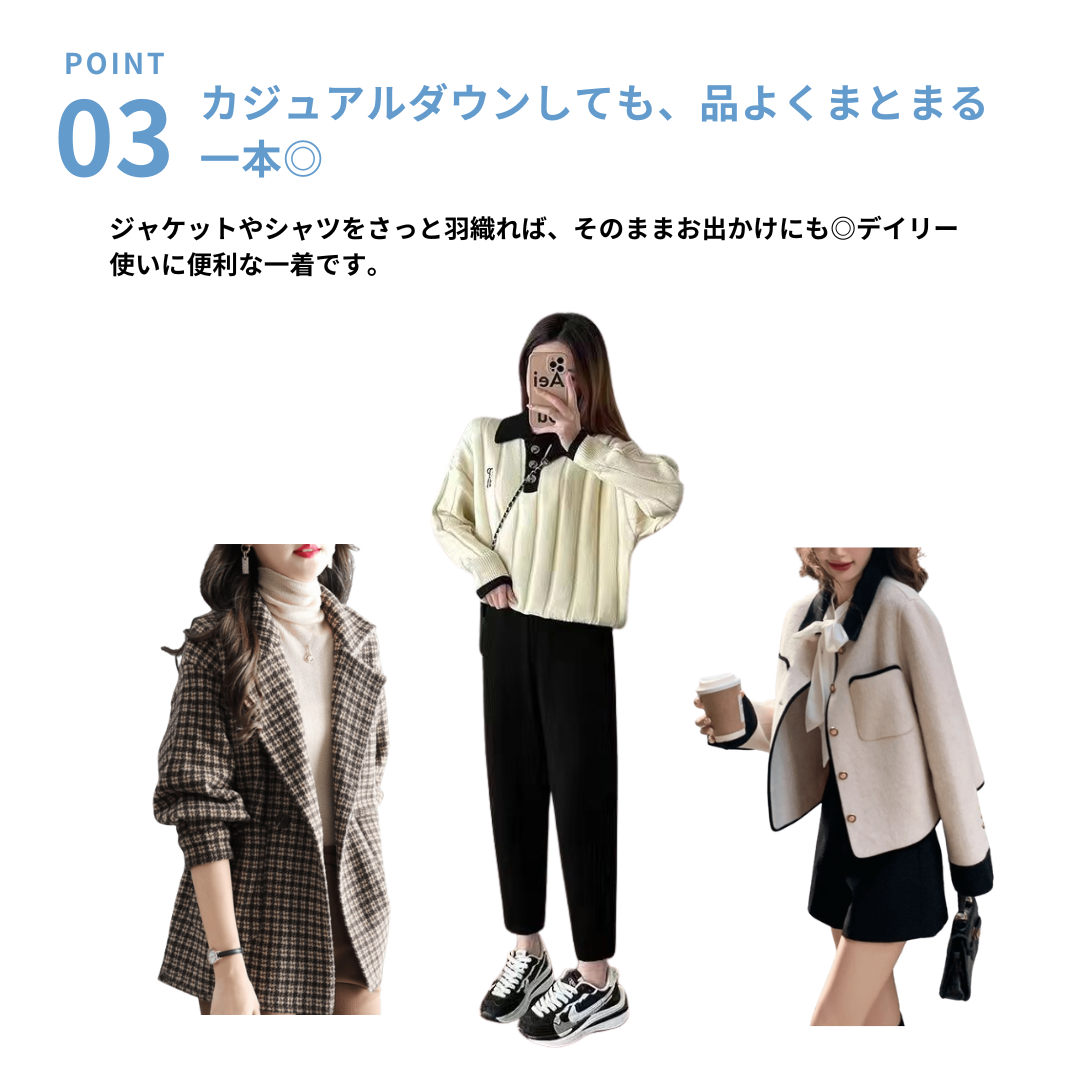 オススメスタイリングアイテム① 骨格ストレートリブニットタンクトップ&カーディガンセット オススメスタイリングアイテム② 骨格ストレートモダンブラックニットトップス