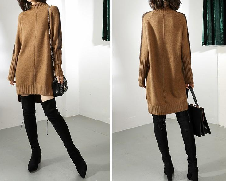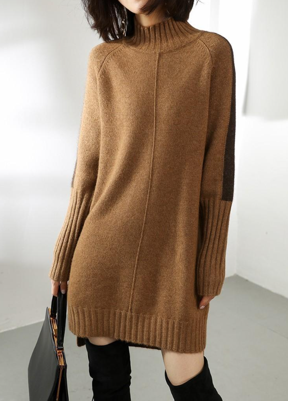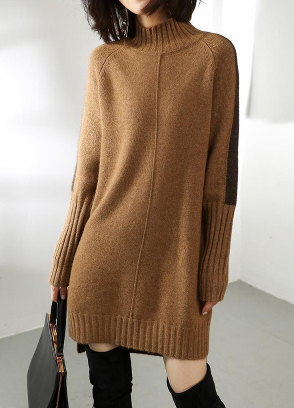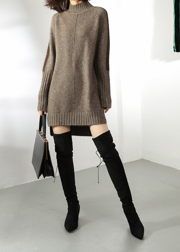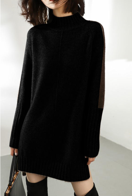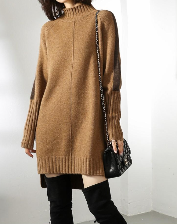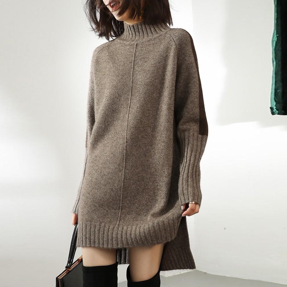 上半身に厚みがあり、シンプルで縦のラインが映える骨格ストレートさんにおすすめの一枚。身頃中央の切り替えと、袖に入った縦ラインで視線を下へ流し、体の立体感をすっきり整理して見せてくれます。程よくハリのあるニット素材で体のラインを拾いにくく、Iラインシルエットを自然にキープ。首元は詰まりすぎないハイネックで、上半身が間延びせず、落ち着いた大人の印象に仕上がります。