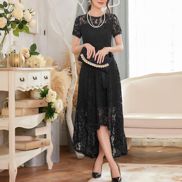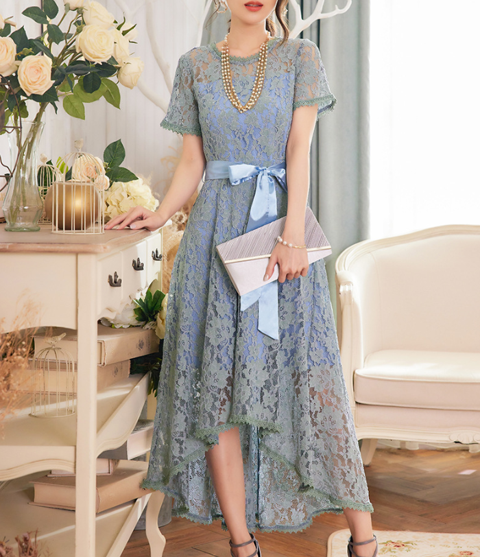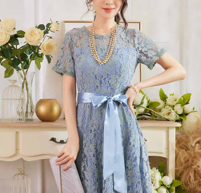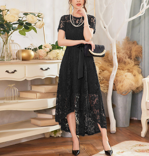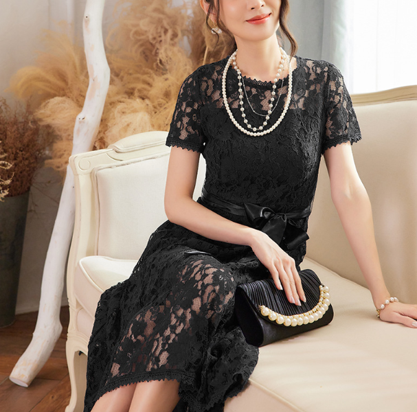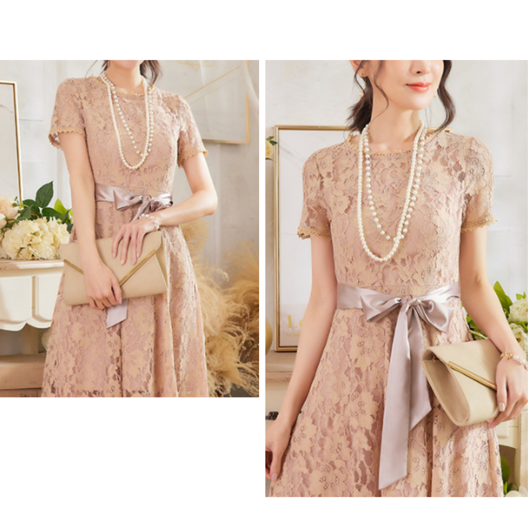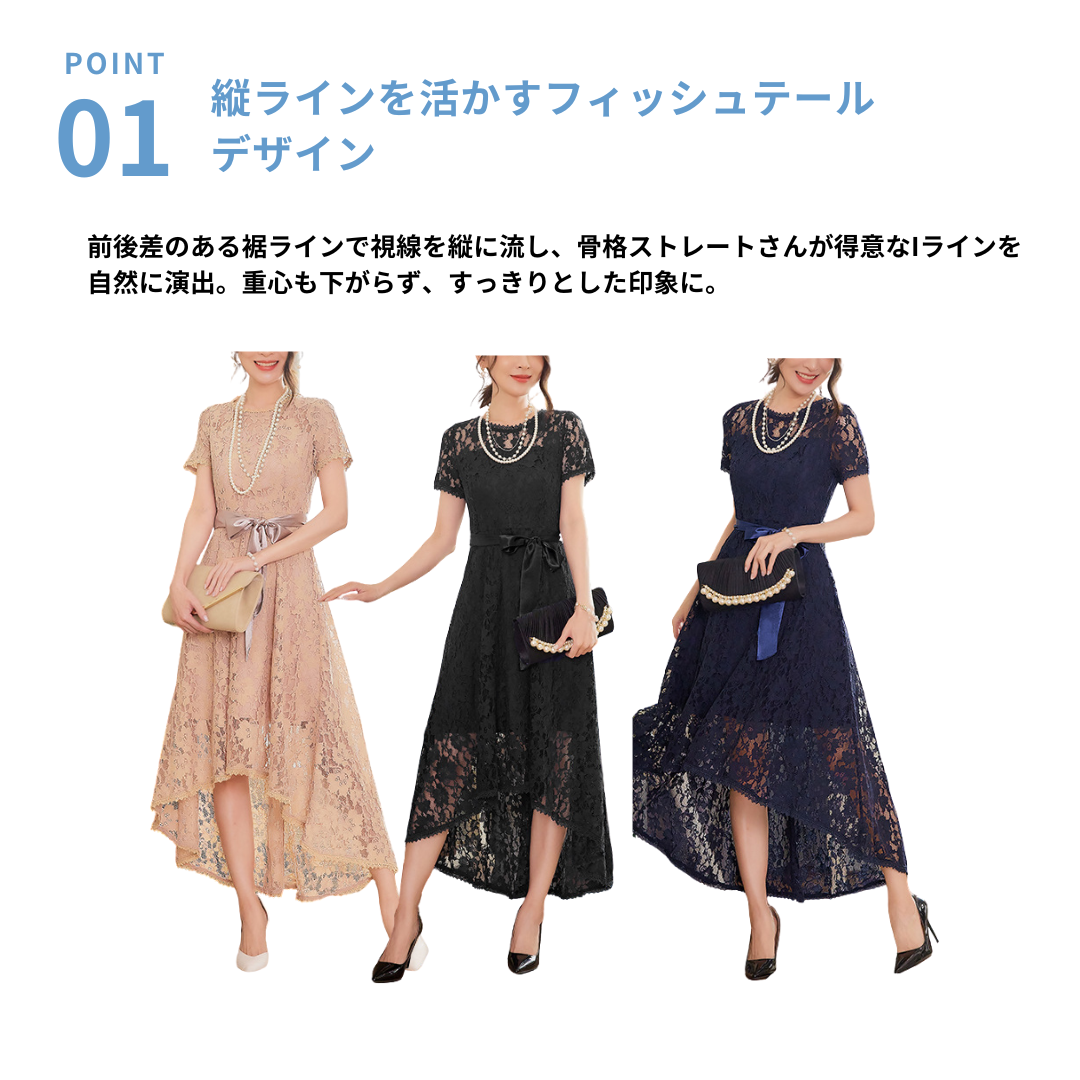 上半身に厚みが出やすく、甘さのあるデザインが着太りにつながりやすい骨格ストレートさんにおすすめのレースワンピース。繊細ながらも広がりすぎないシルエットで、身体のラインをなぞるように縦を強調。ウエスト位置を自然にマークするリボンがメリハリを生み、重心バランスを整えます。フィッシュテールの裾が動きを出しつつも、甘くなりすぎず上品な印象に。結婚式や食事会など、きちんと感が求められるシーンでも安心して着られる一着です。