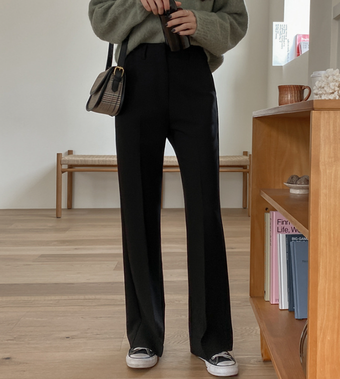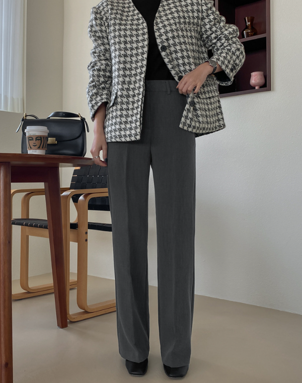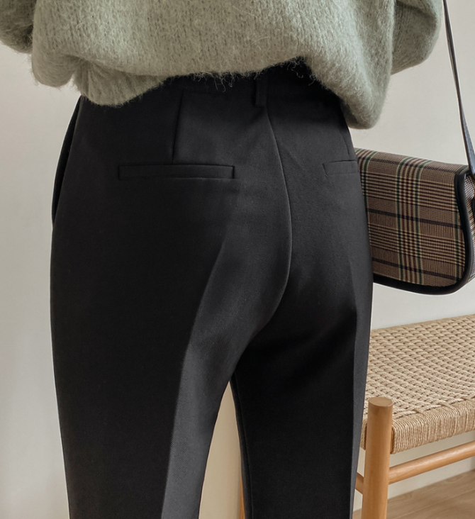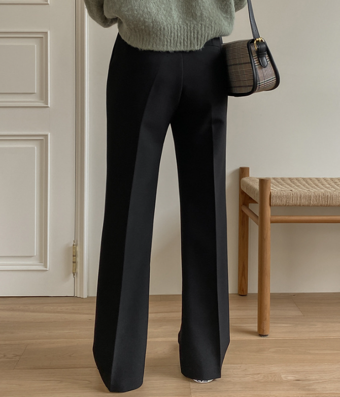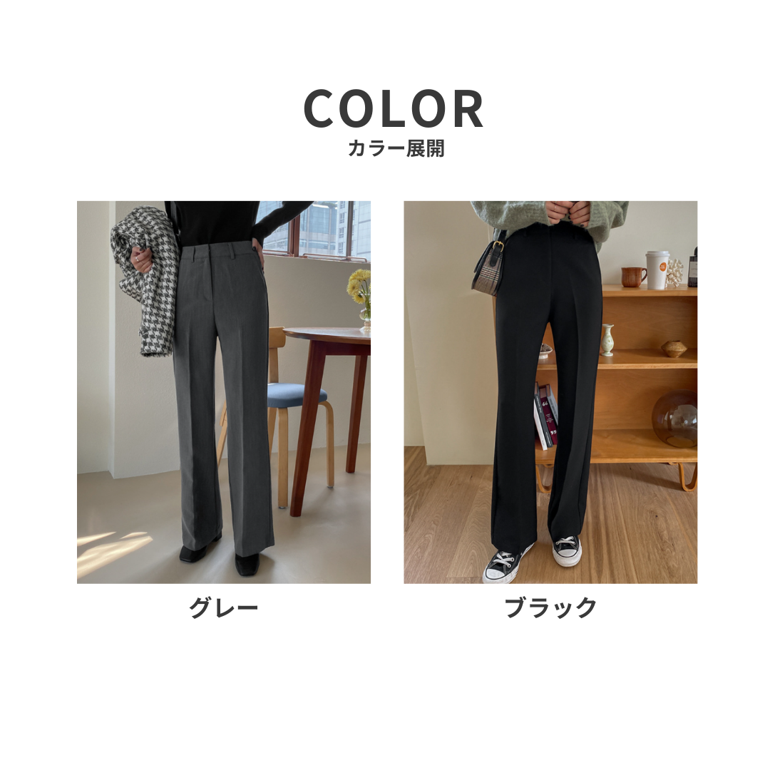 ハリ感のある素材とシンプルなストレートシルエットが、骨格ストレートさんの魅力を最大限に引き立てるパンツ。立体的な腰・太ももラインを自然にカバーしつつ、センタープレスが脚長効果をプラス。シンプルなデザインだから、ジャケット合わせできちんと感も演出。オンオフ問わず活躍する1本です。