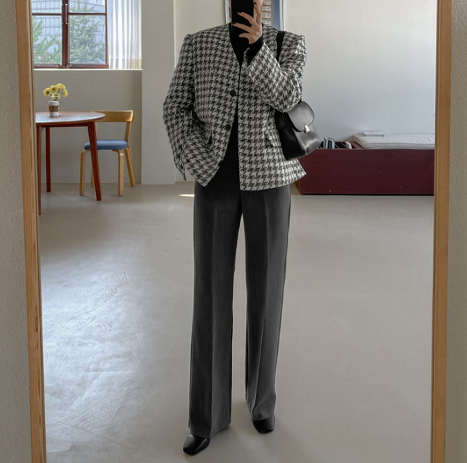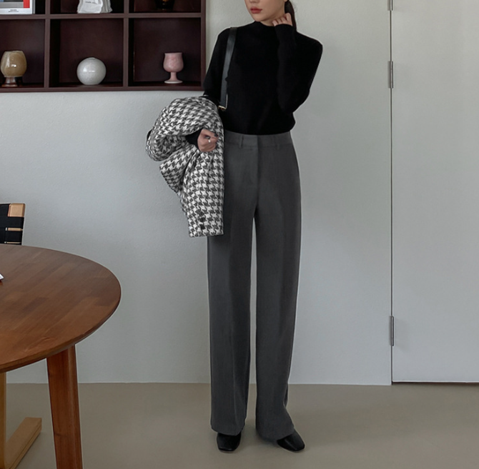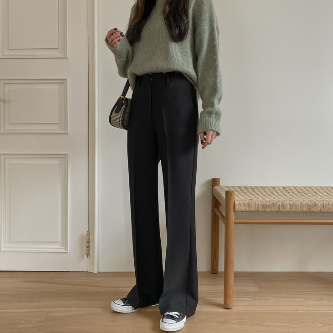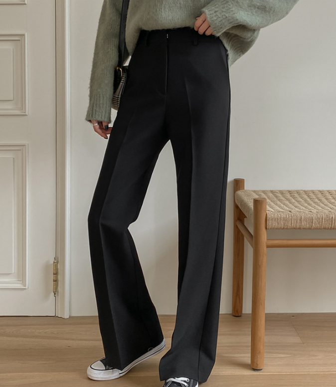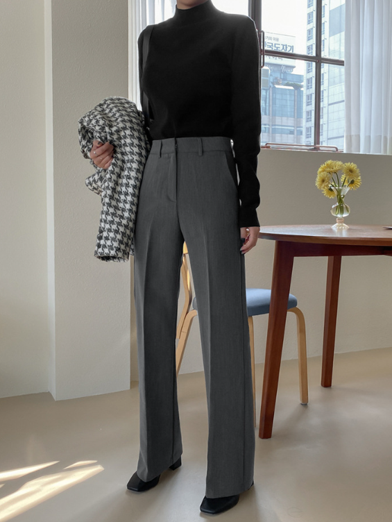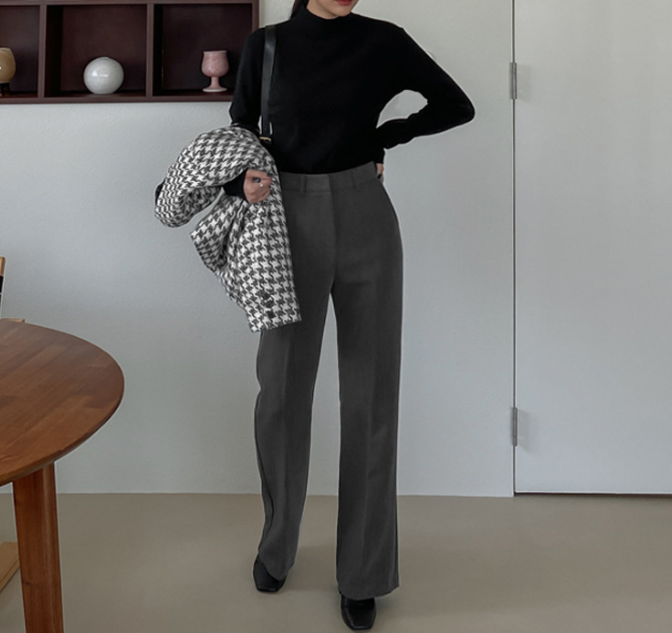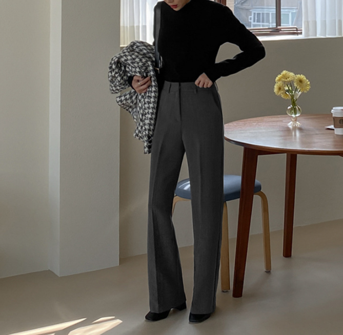 ハリ感のある素材とシンプルなストレートシルエットが、骨格ストレートさんの魅力を最大限に引き立てるパンツ。立体的な腰・太ももラインを自然にカバーしつつ、センタープレスが脚長効果をプラス。シンプルなデザインだから、ジャケット合わせできちんと感も演出。オンオフ問わず活躍する1本です。