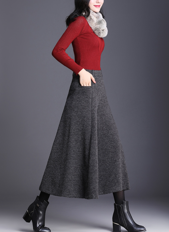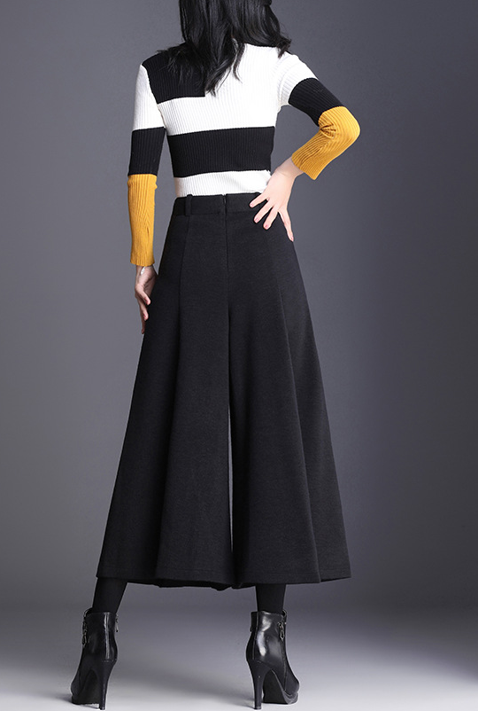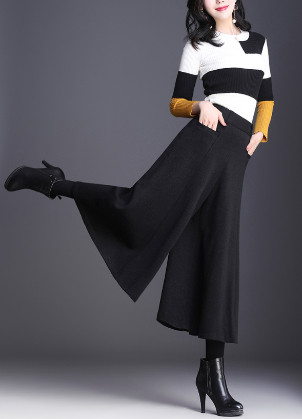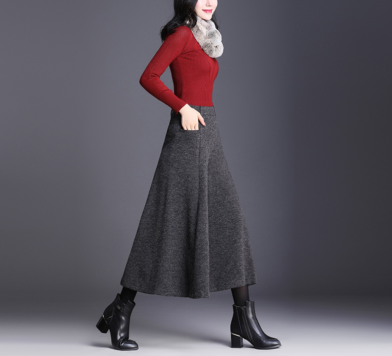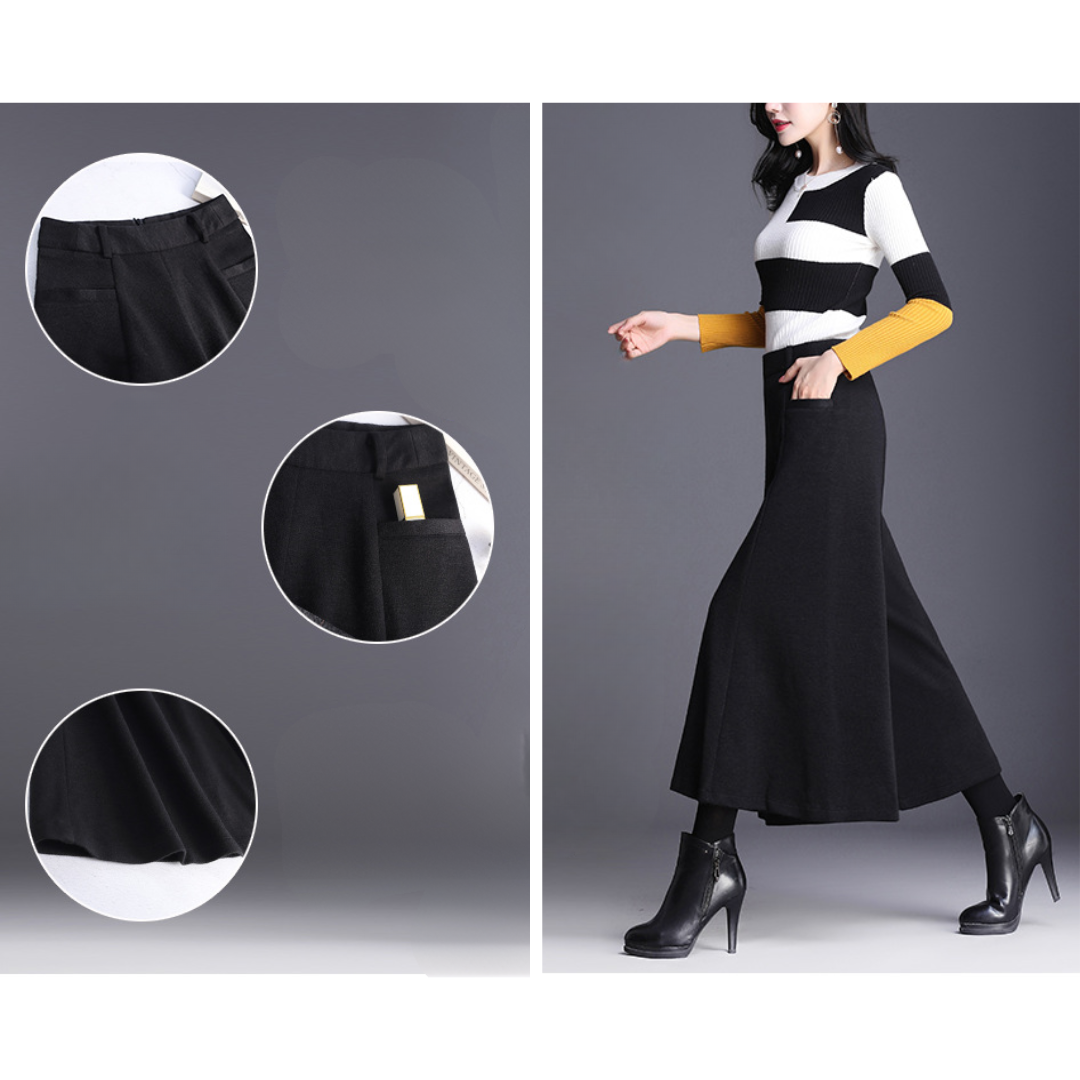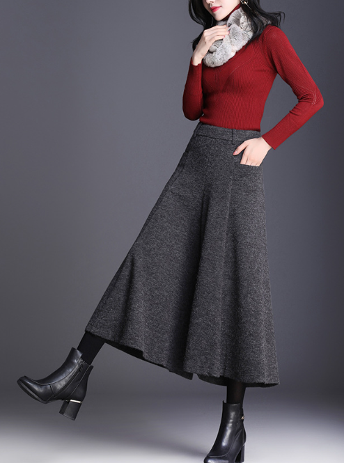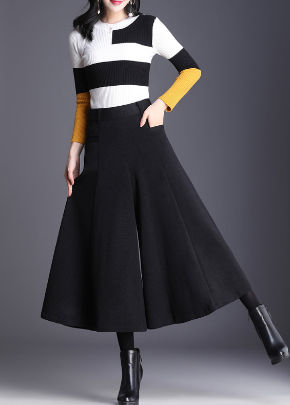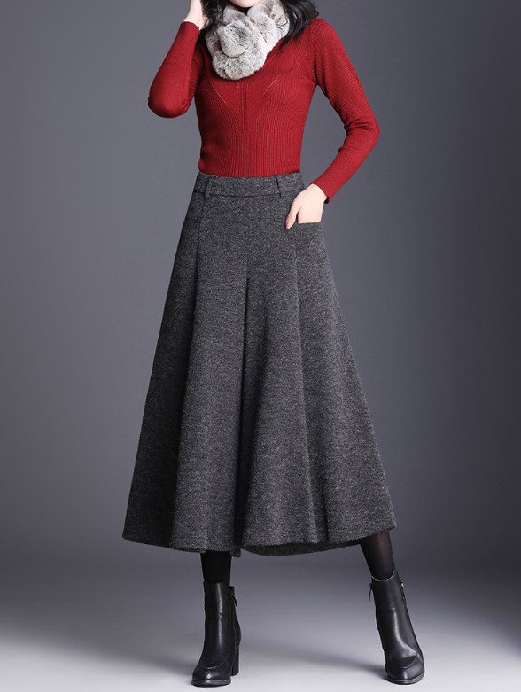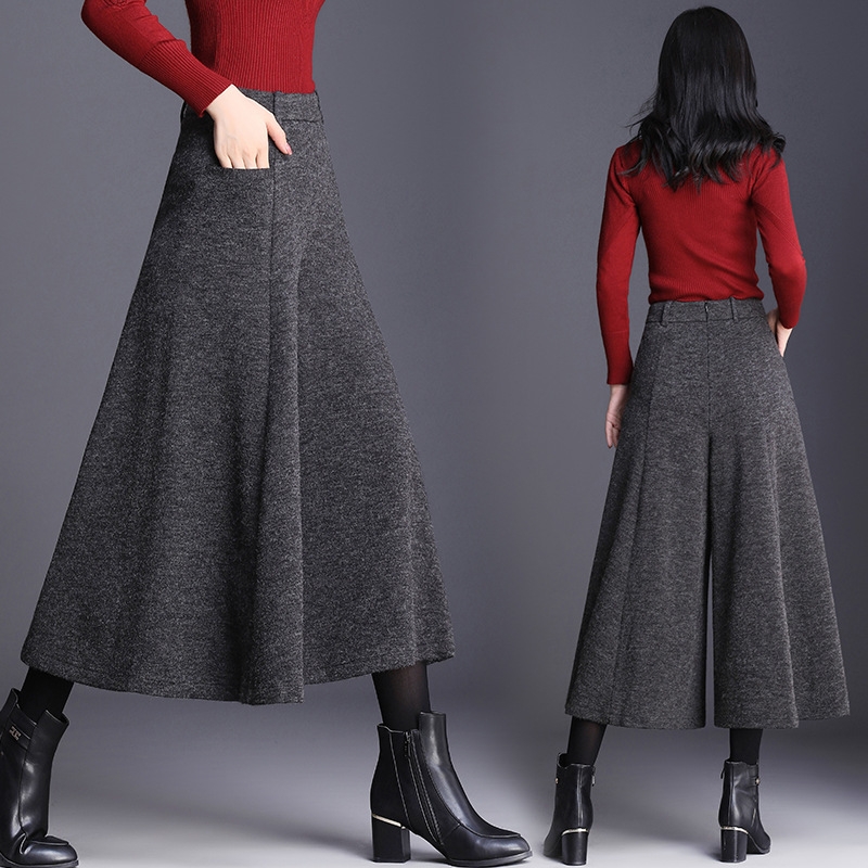 ハリのあるニット素材とミモレ丈のワイドなシルエットが、骨格ストレートさんの立体的な腰・太ももラインを自然にカバー。重心を下げすぎないデザインで、スッキリ見えと脚長効果を両立。トップスはフィット感あるニットなど、コンパクトなアイテムを合わせるのがおすすめです。
