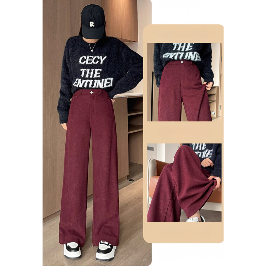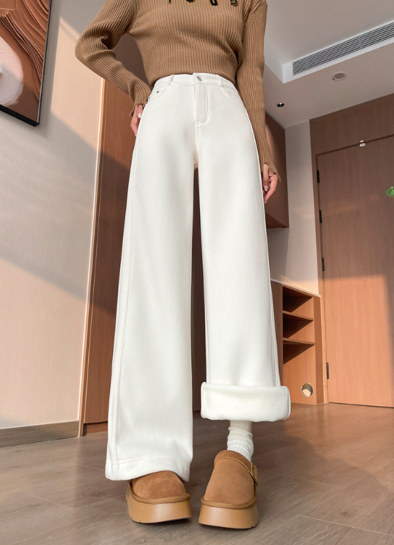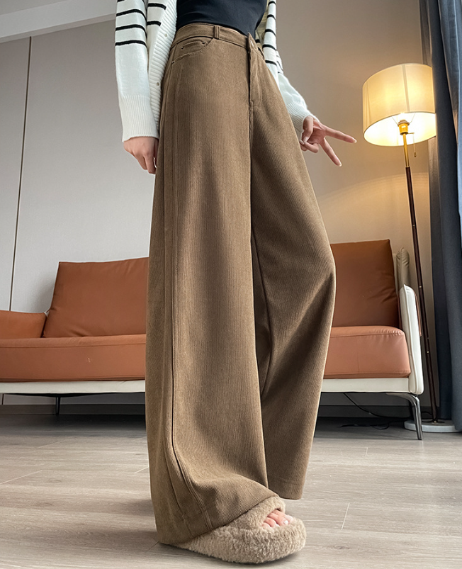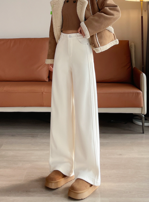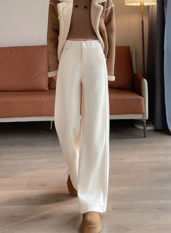 直線的なラインを活かしたい骨格ストレートさんにおすすめの一本。体の厚みを拾いにくいワイドレッグデザインと、重さを感じさせない裏起毛素材が、冬のおしゃれを快適にサポート。腰まわりのフィット感はキープしつつ、脚にかけて落ち感のある美シルエットが魅力です。