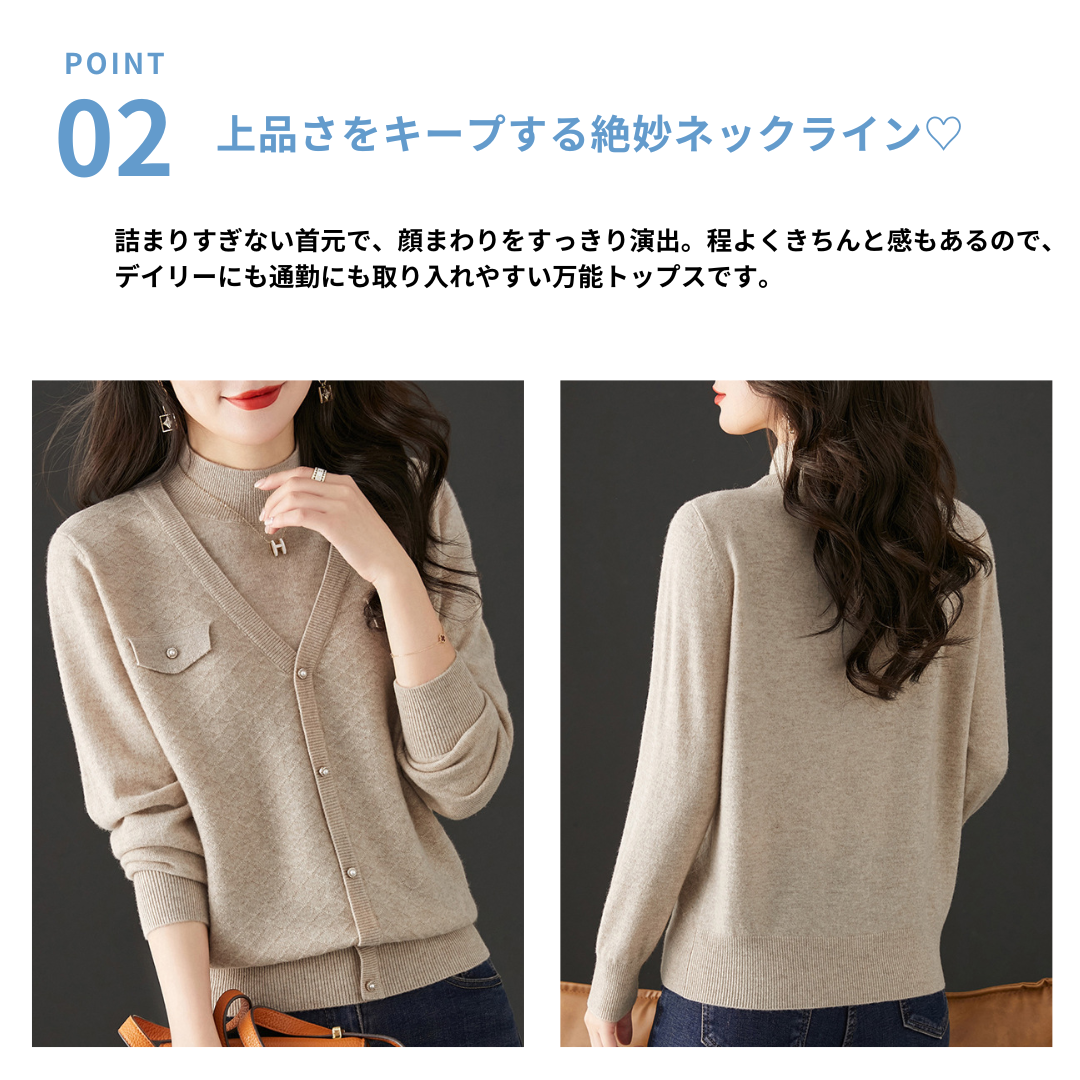 上半身に厚みが出やすく、着ぶくれが気になる骨格ストレートさんにぴったりな、すっきり見えニットトップス。程よく開いたVネックと縦長シルエットが、デコルテ〜上半身の立体感をカバー。首元はきちんと感を演出しつつ、のっぺり感を回避。上品な質感とコンパクト丈で、ボトムとのバランスも取りやすい1枚です。