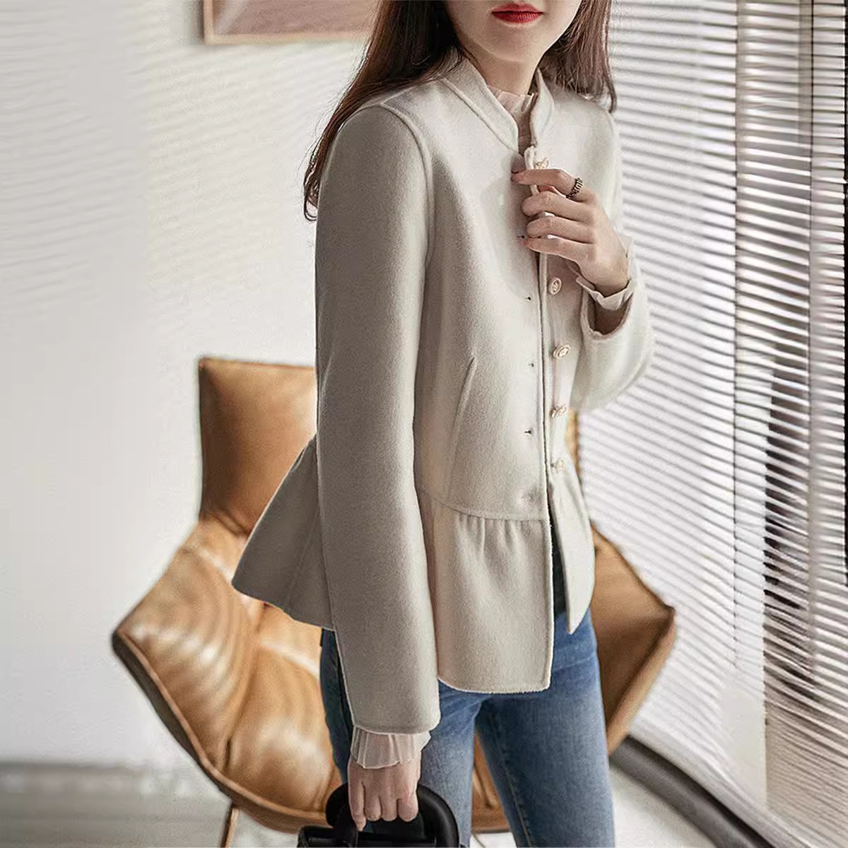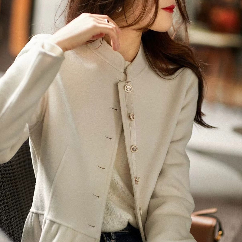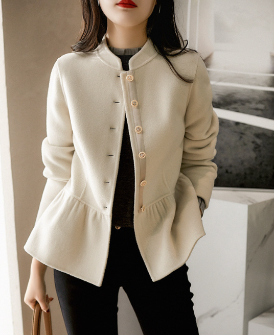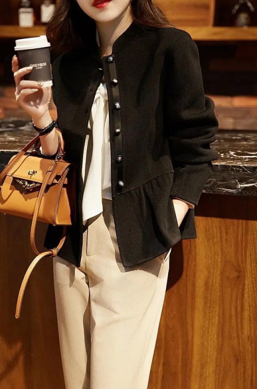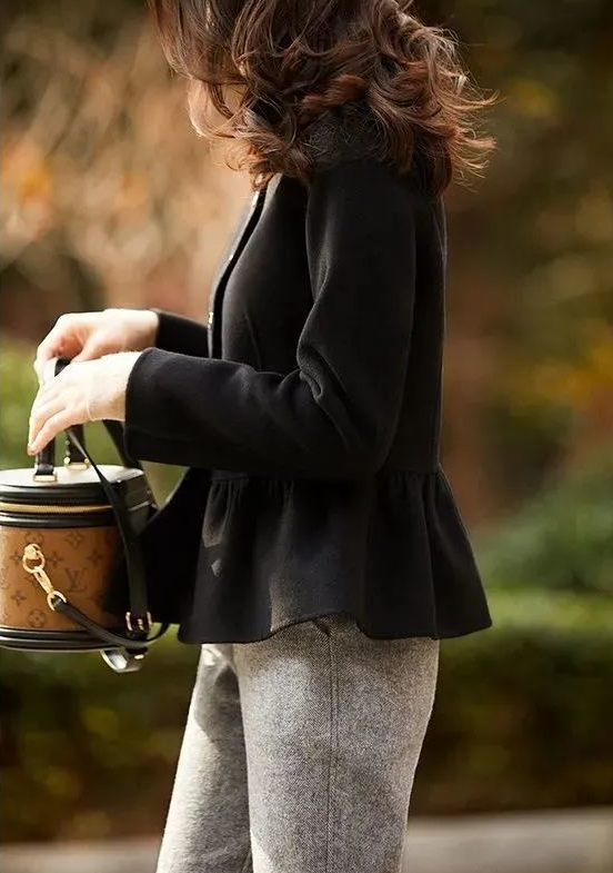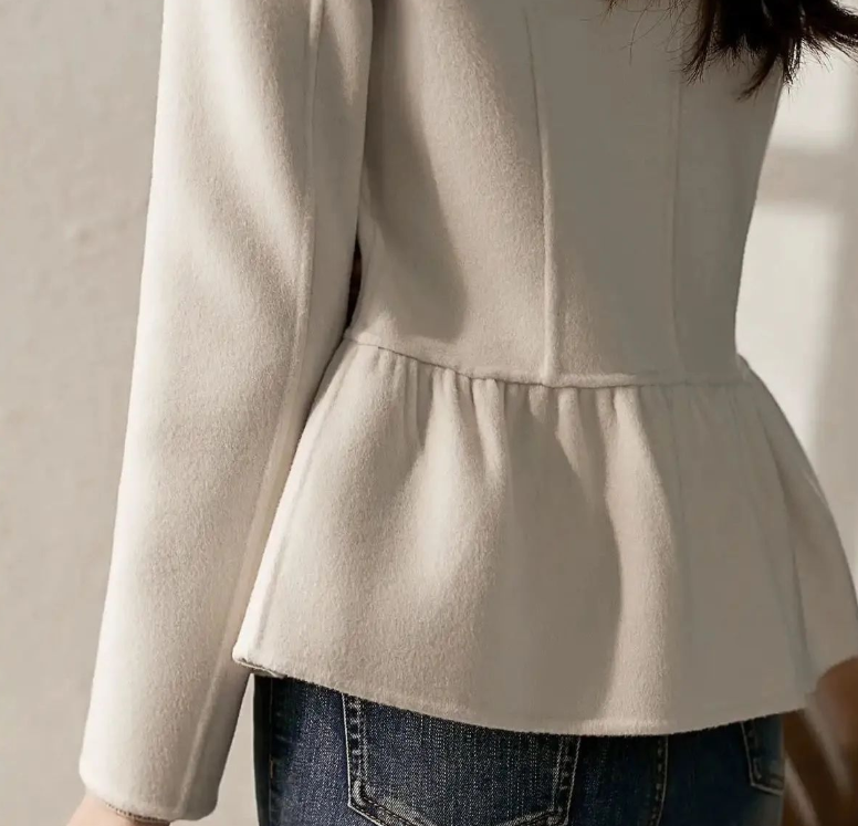 上半身に立体感が出やすいストレートさんを、すっきり端正に見せるスタンドカラーペプラムジャケット。直線的な肩ラインと程よくハリのある素材が、体の厚みを拾いにくくきれいなシルエットをキープ。広がりも控えめなペプラムでウエストまわりを自然に整えつつ、甘さを抑えた大人バランスに仕上がります。パンツ合わせでももたつかず、通勤からきれいめシーンまで活躍する一着です。