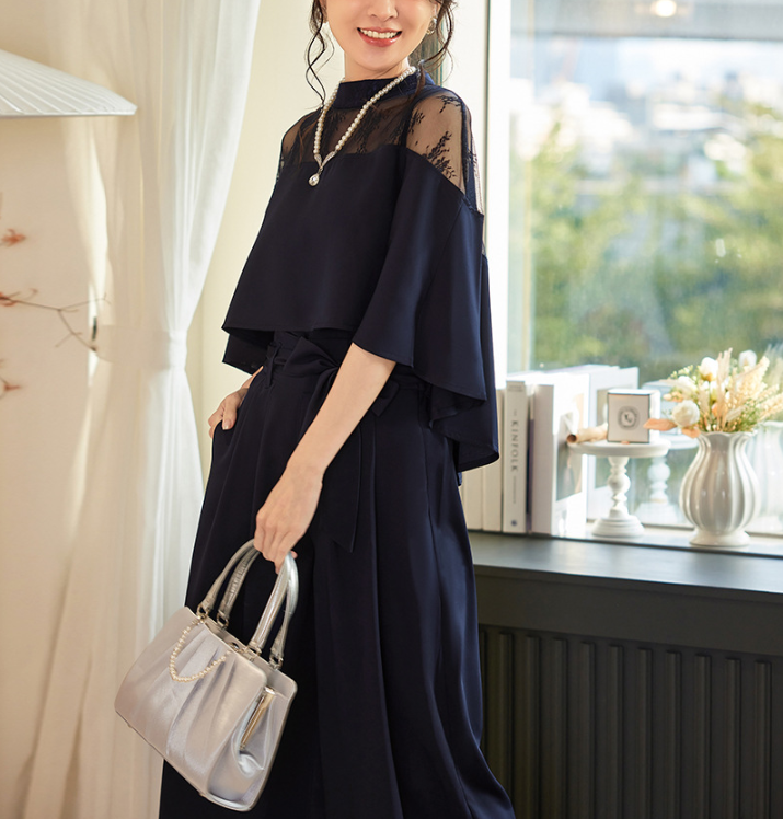 シンプルなデザインが映える、骨格ストレートさんにぴったりの上品フォーマルセットアップ。凹凸のない生地感と直線的なシルエットが、上半身の立体感をすっきり見せ、全体をスマートに引き締めてくれます。過度な装飾がなく、洗練された大人の魅力を引き立てる一着は、結婚式やセレモニーにもぴったりです。
