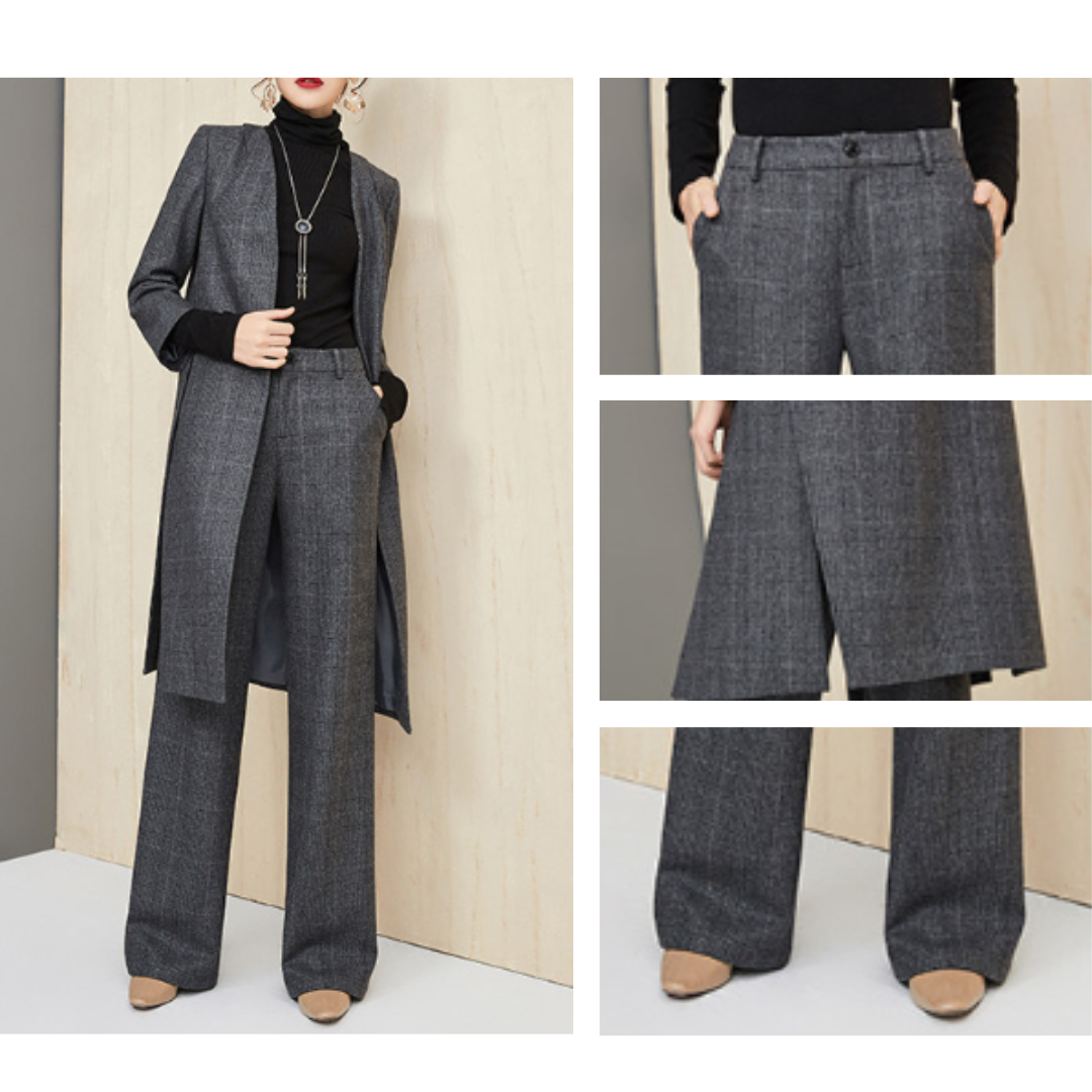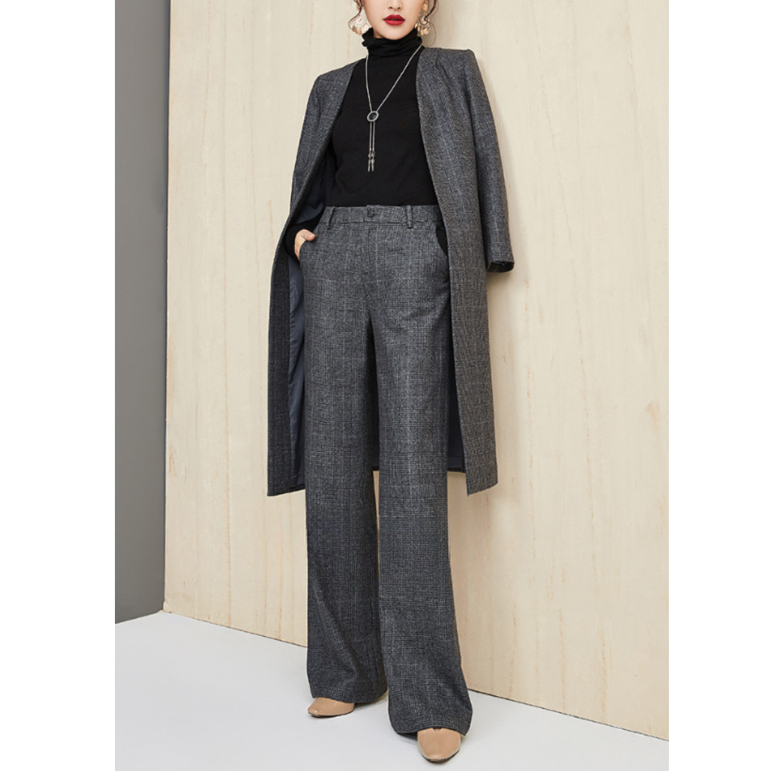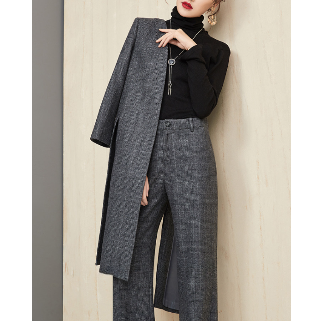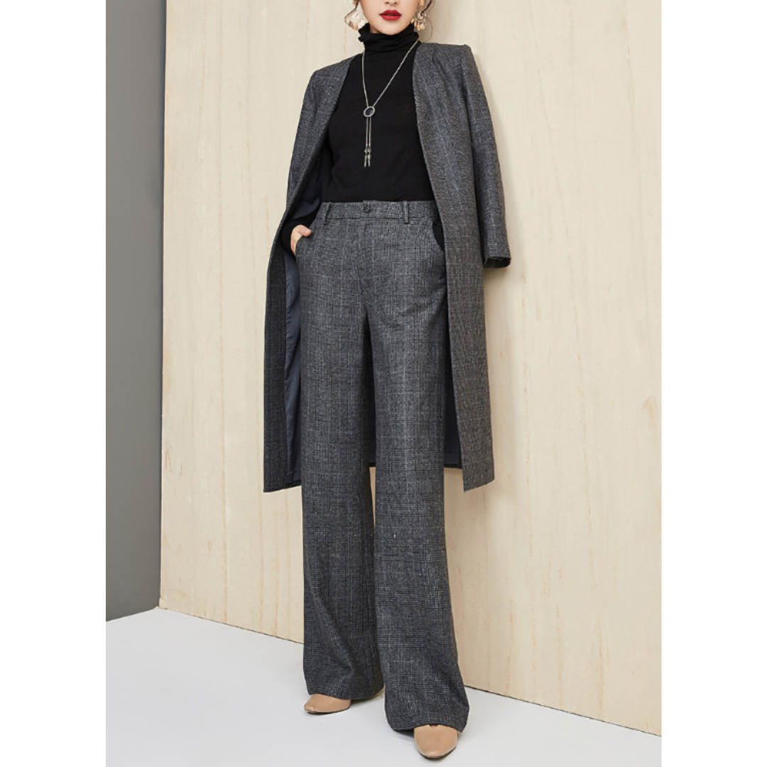 ハリ感のある上質素材と、シンプルな直線シルエットが魅力のセットアップ。骨格ストレートさんのしっかりした上半身をスマートに見せるジャケットと、脚のラインをまっすぐに整えるストレートパンツの組み合わせで、洗練された大人の雰囲気に。無駄のないミニマルなデザインで、ビジネスやフォーマルにも対応する万能アイテムです。
