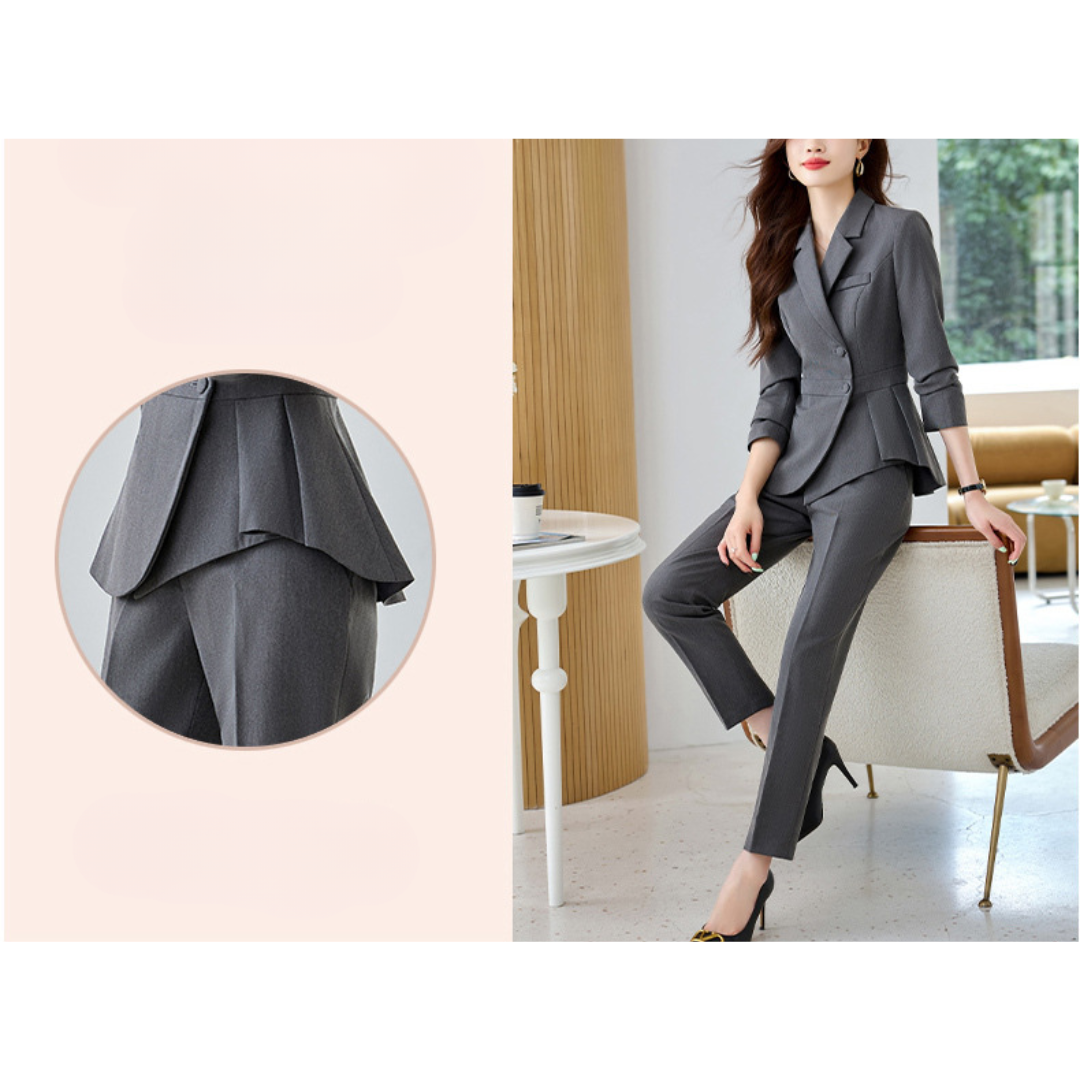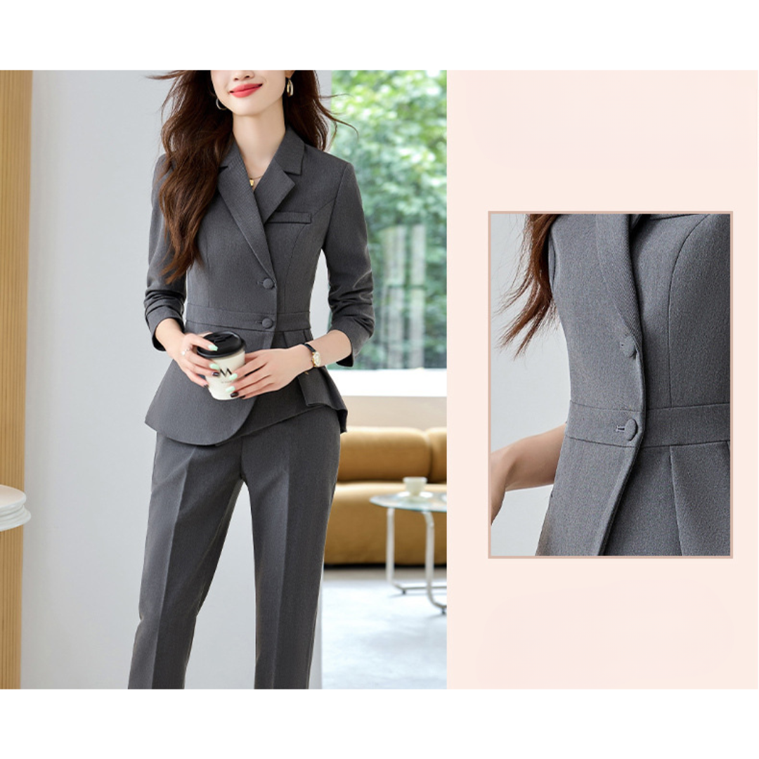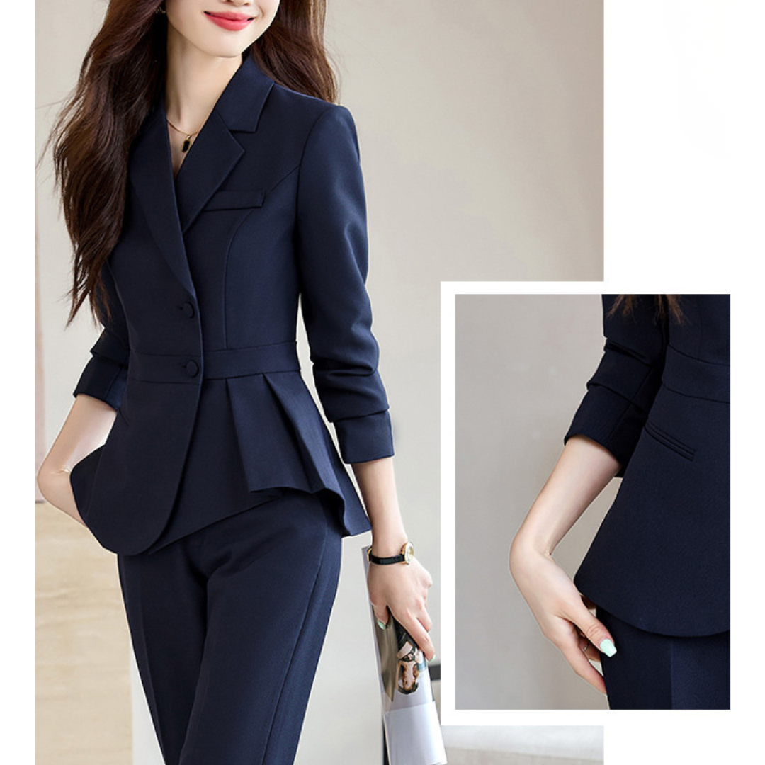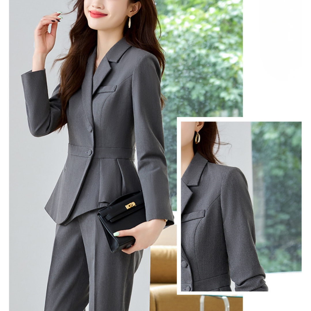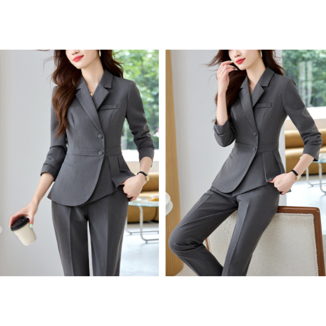 ウエストの切り替えと程よいフィット感が、骨格ストレートさんの魅力を最大限に引き立てるセットアップ。かっちりとしたテーラードジャケットに、すっきりとしたテーパードパンツを合わせることで、スタイルアップ効果も抜群。ハリのある素材感が上質さを演出し、ビジネスからフォーマルまで幅広く活躍します。