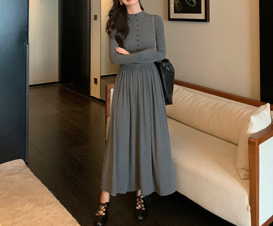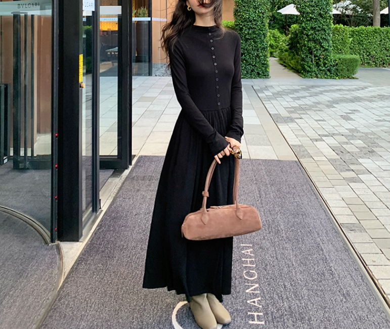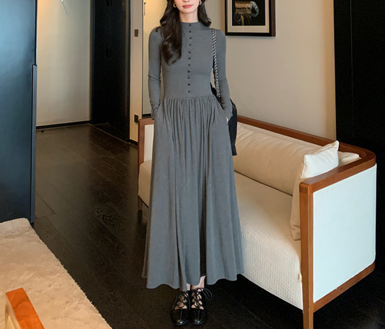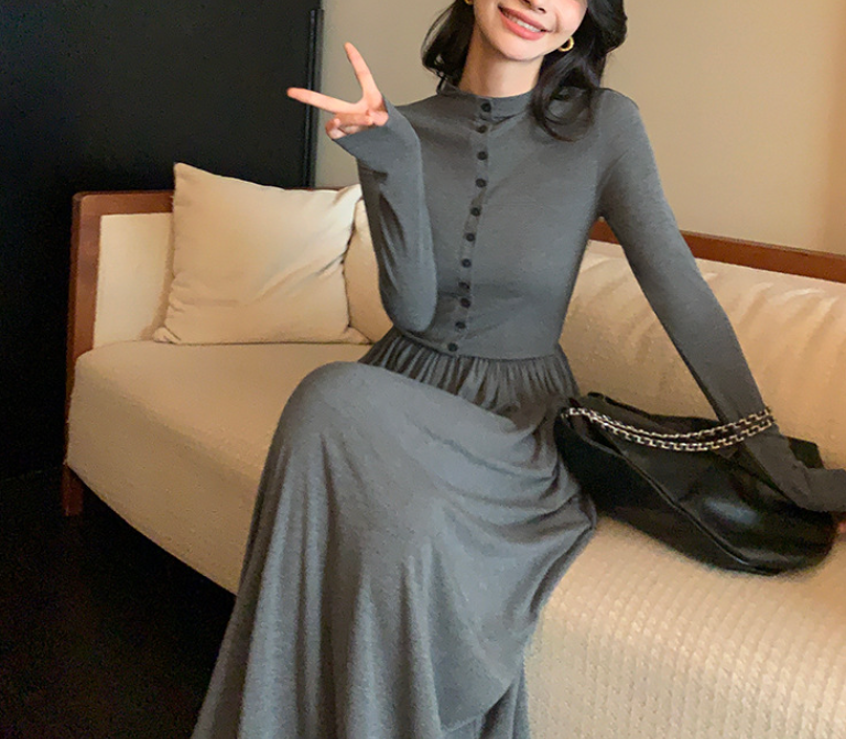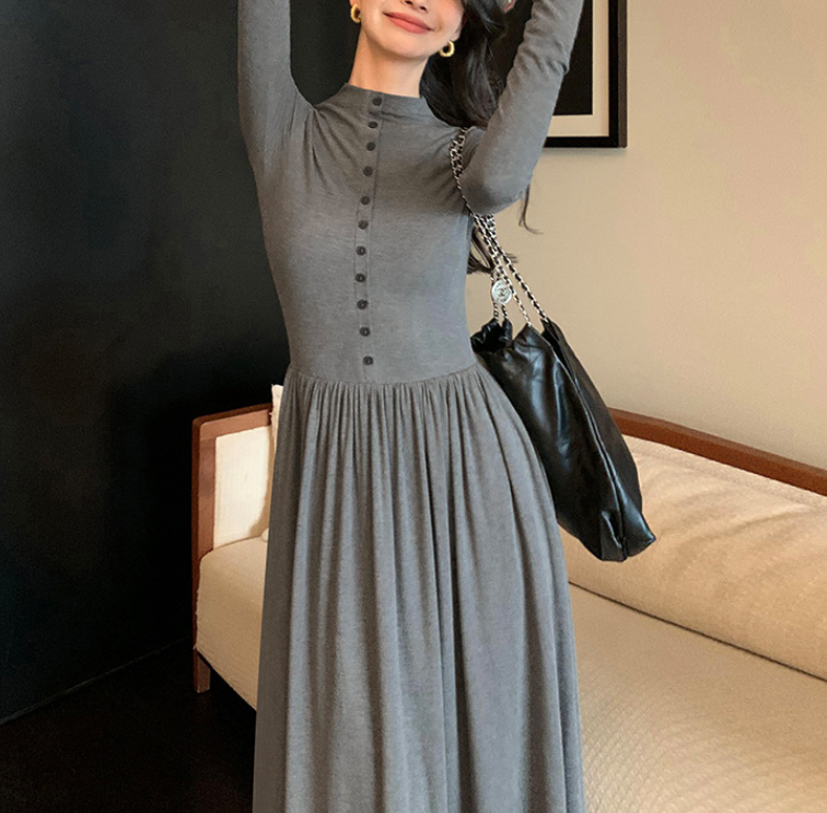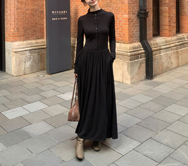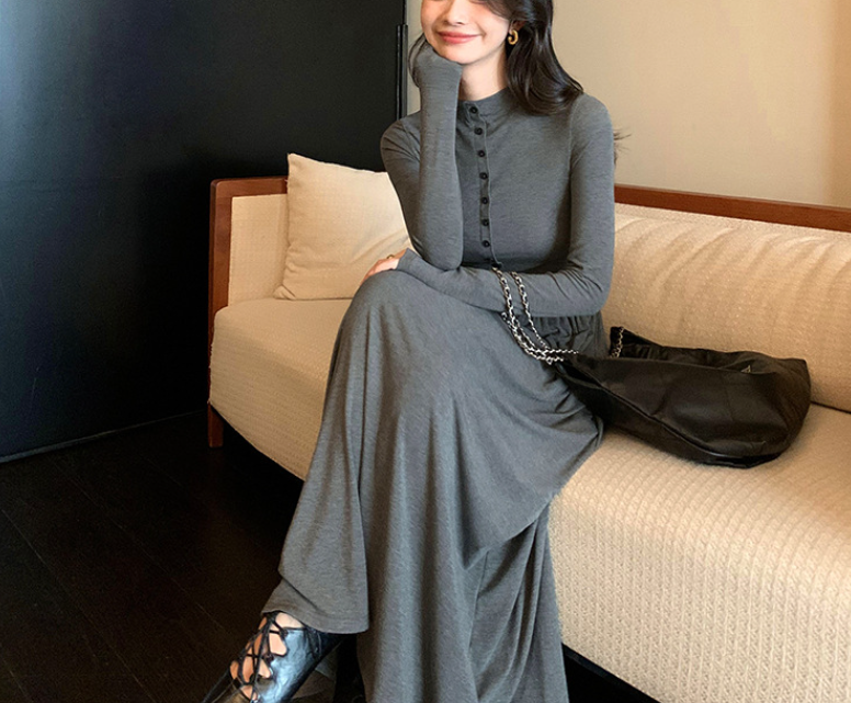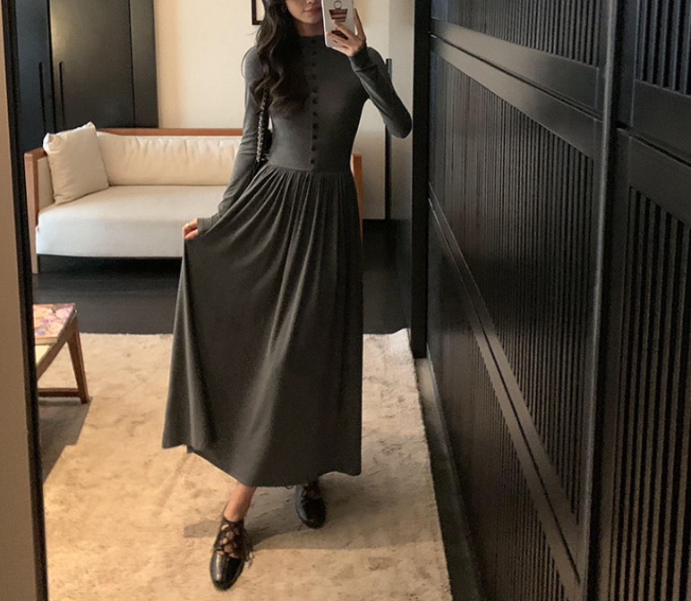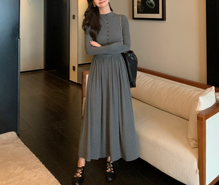 上半身の厚みや全体のボリューム感が気になりやすい骨格ストレートさんに向けた、縦ラインを意識したロングワンピース。すっきりとした身頃とフロントボタンが視線を縦に導き、全身をスマートな印象に整えます。程よい厚みと落ち感のある素材が体のラインを拾いにくく、広がりすぎない上品なシルエットに。通勤からお出かけまで、一枚で大人のきれいめスタイルが完成します。