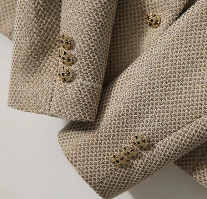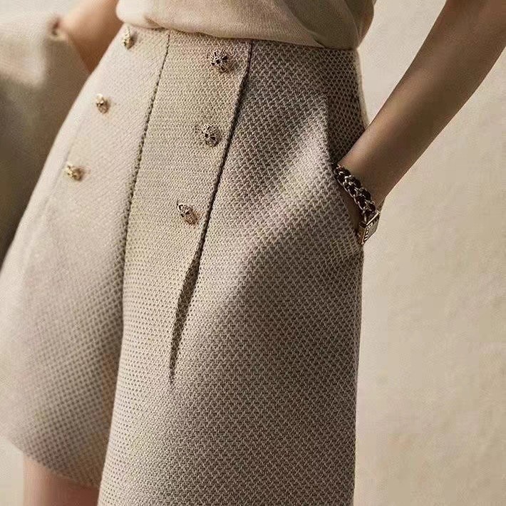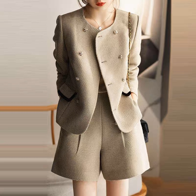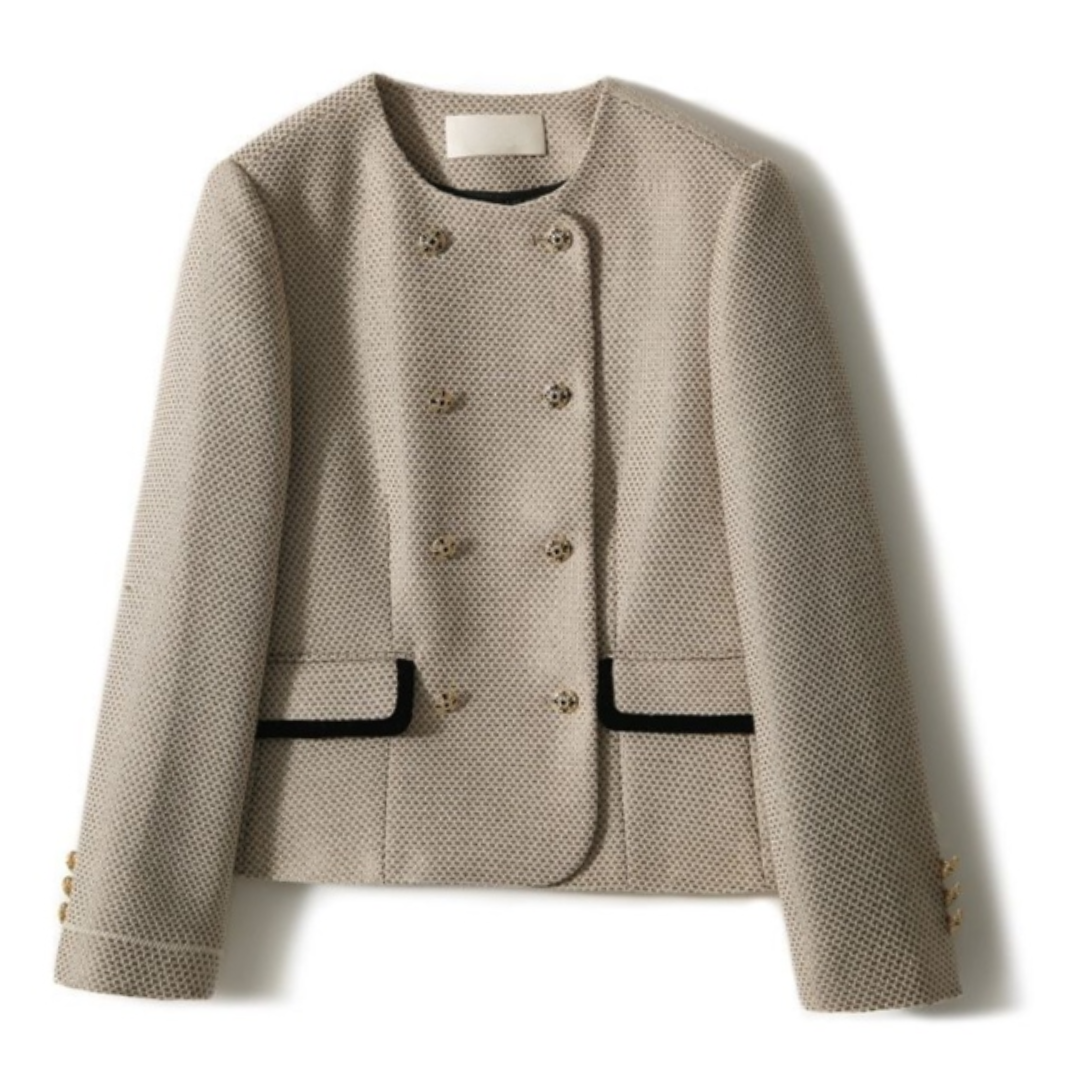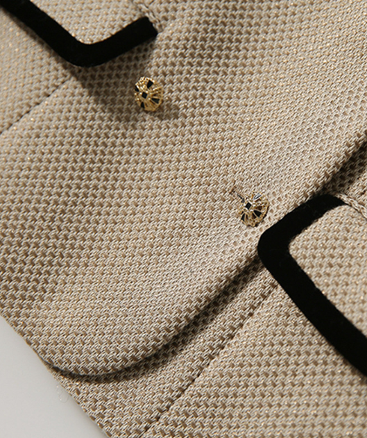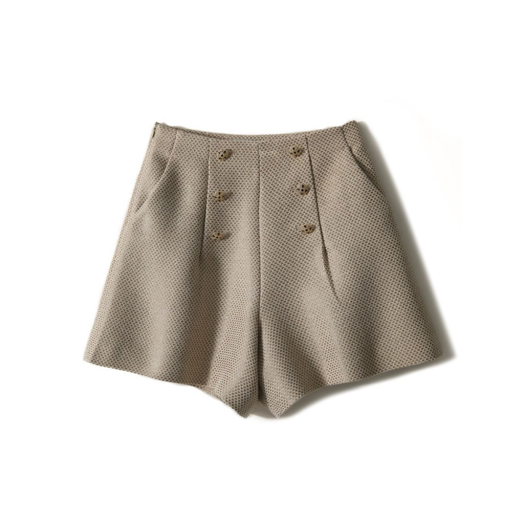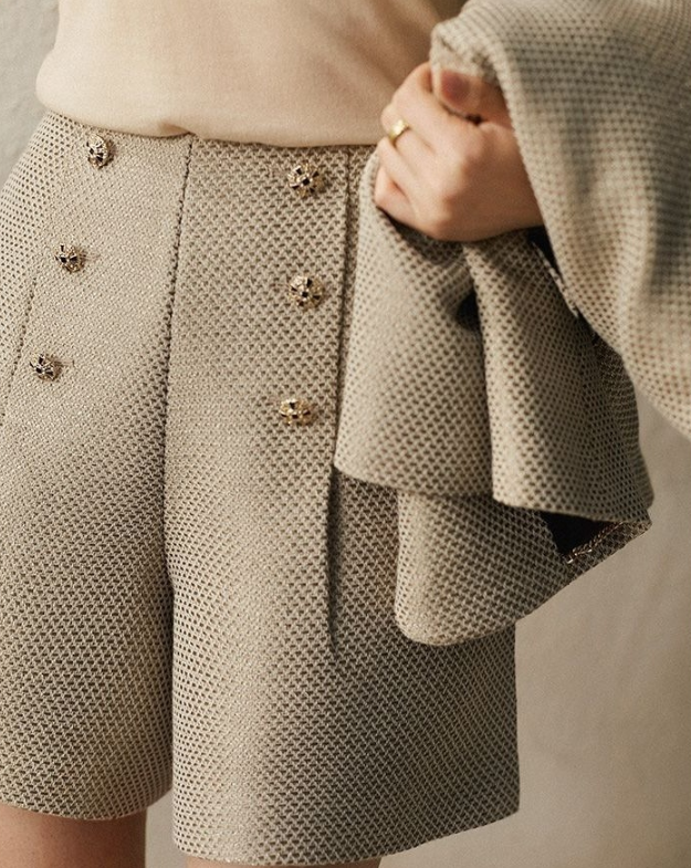上半身の厚みや全体のボリューム感が出やすい骨格ストレートさんに向けた、立体感をすっきり整えるツィード風セットアップ。程よいハリと厚みのある素材が体のラインをきれいに支え、着膨れを防ぎながら上品な印象に導きます。ノーカラージャケットのすっきりとしたデザインがデコルテまわりを軽やかに見せ、ショートパンツが脚のラインをすっきりと見せるバランスに。きちんと感と抜け感を両立し、セレモニーからお出かけまで幅広く活躍する大人のセットアップです。
