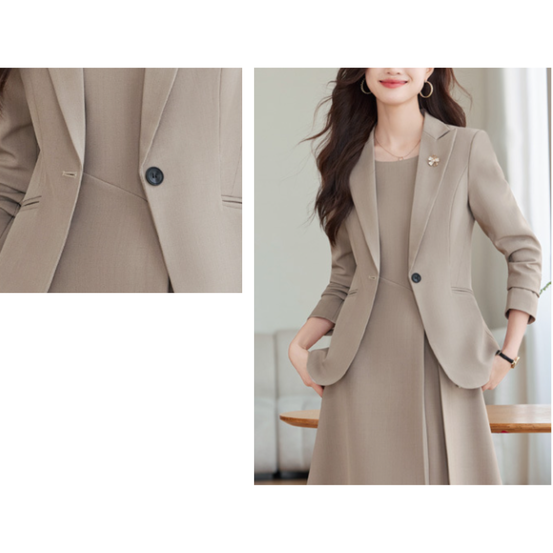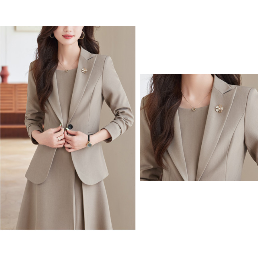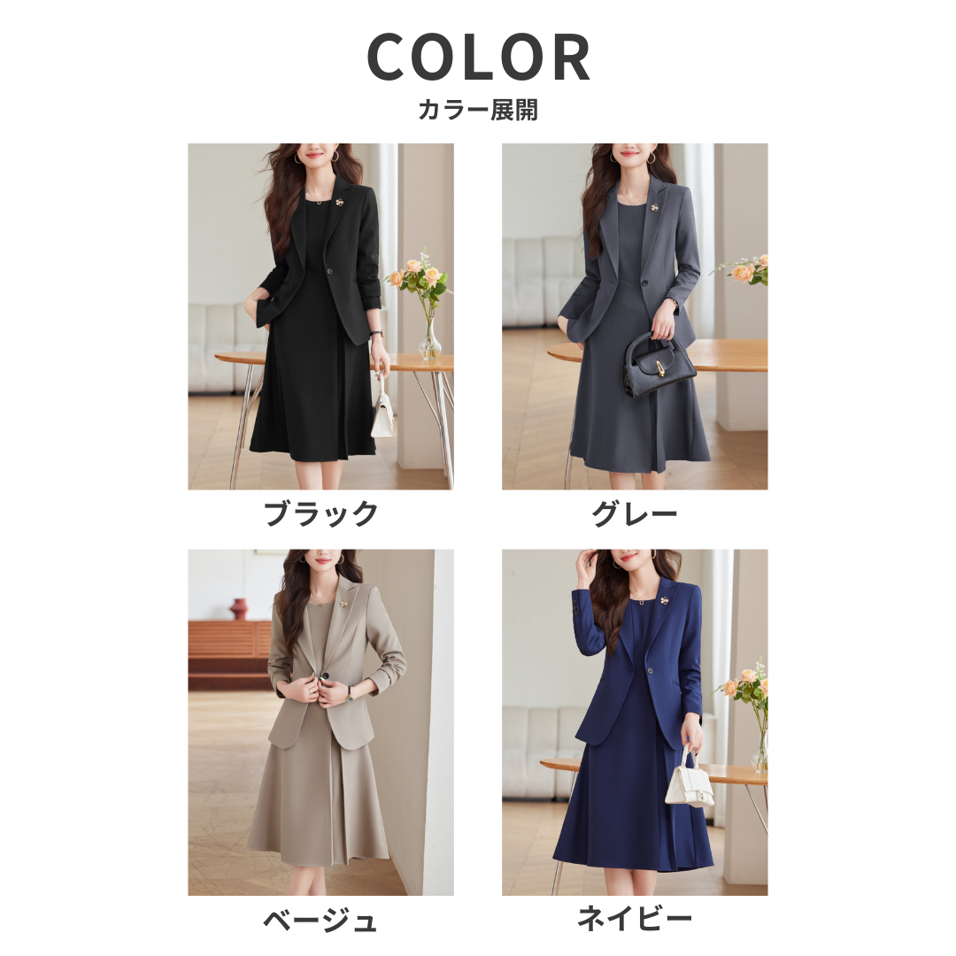 上半身の厚みや体の立体感が気になりやすいストレートさんも、すっきりとした印象で着こなせるセレモニーセットアップ。程よいハリのある生地が体のラインを整え、膨張感を抑えながらきちんとした雰囲気に導きます。コンパクトなテーラードジャケットと、広がりすぎないワンピースが縦ラインを強調し、全身をスマートなバランスに。シンプルで上品なデザインが、入学式や卒業式などのフォーマルシーンにもなじみ、大人のきれいめスタイルを落ち着いた印象でまとめてくれる一着です。