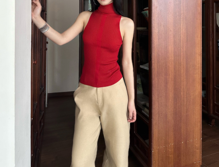 オススメスタイリングアイテム② 骨格ストレートアクセントネックカラーポロニットトップス