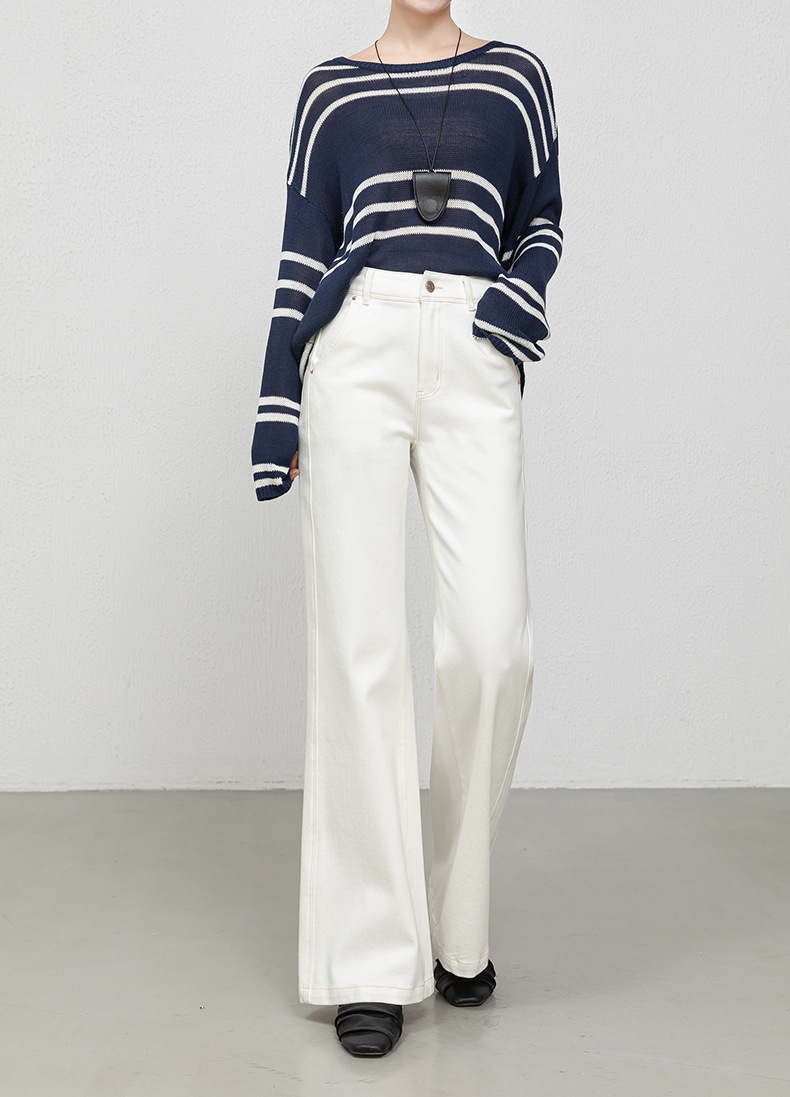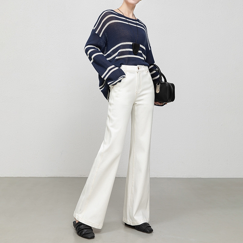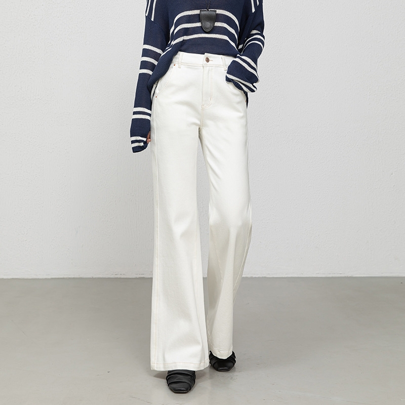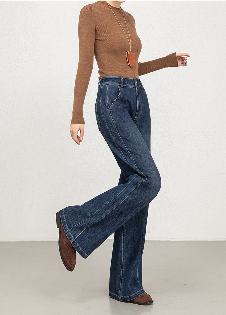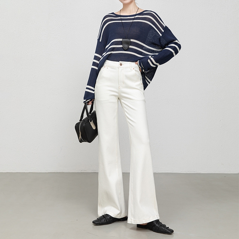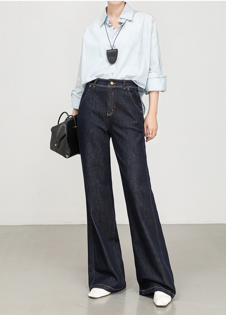 脚のラインをまっすぐ美しく見せながら、下半身のボリューム感をすっきり整えるストレッチフレアデニム。太ももまでは程よくフィットし、膝下から自然に広がるシルエットが縦ラインを強調し、スタイルアップした印象に導きます。適度なハリと厚みのあるデニム素材が、体のラインを拾いすぎず、骨格ストレートの立体的なボディをきれいに引き立てます。ストレッチ性があり動きやすく、きちんと感と快適さを両立。カジュアルにもきれいめにも着回せる、大人のための美脚デニムです。