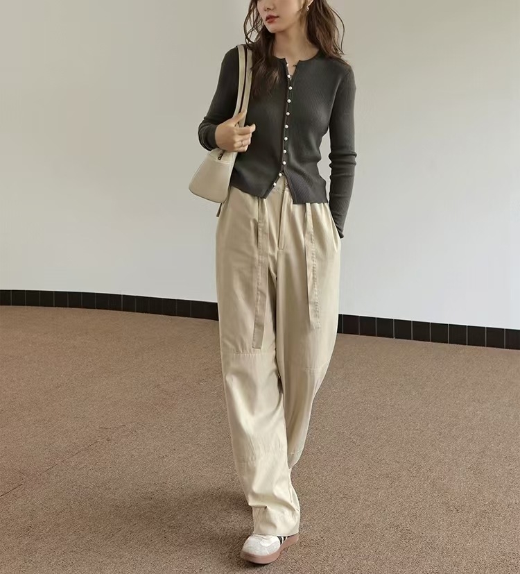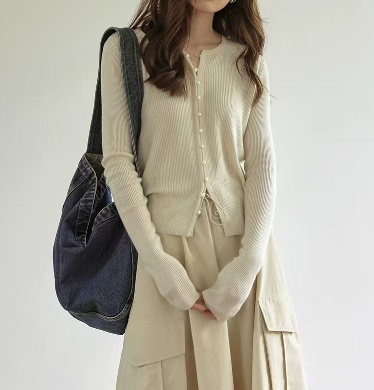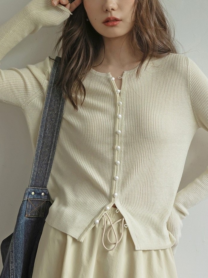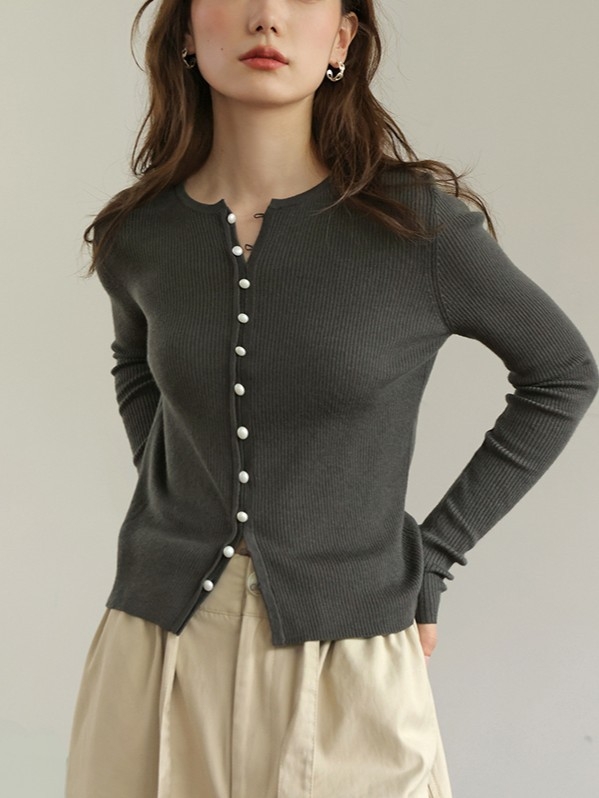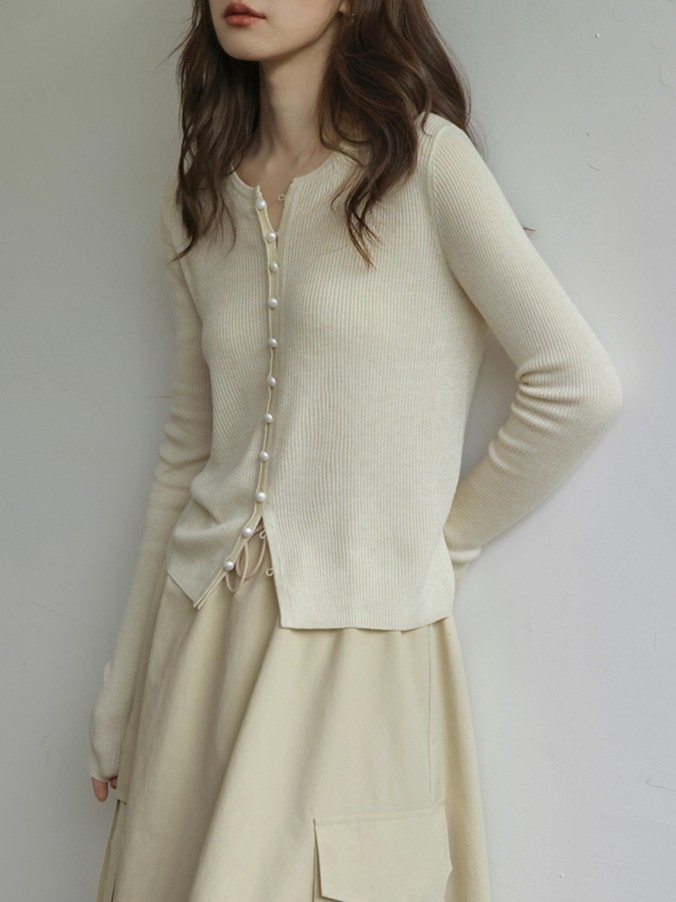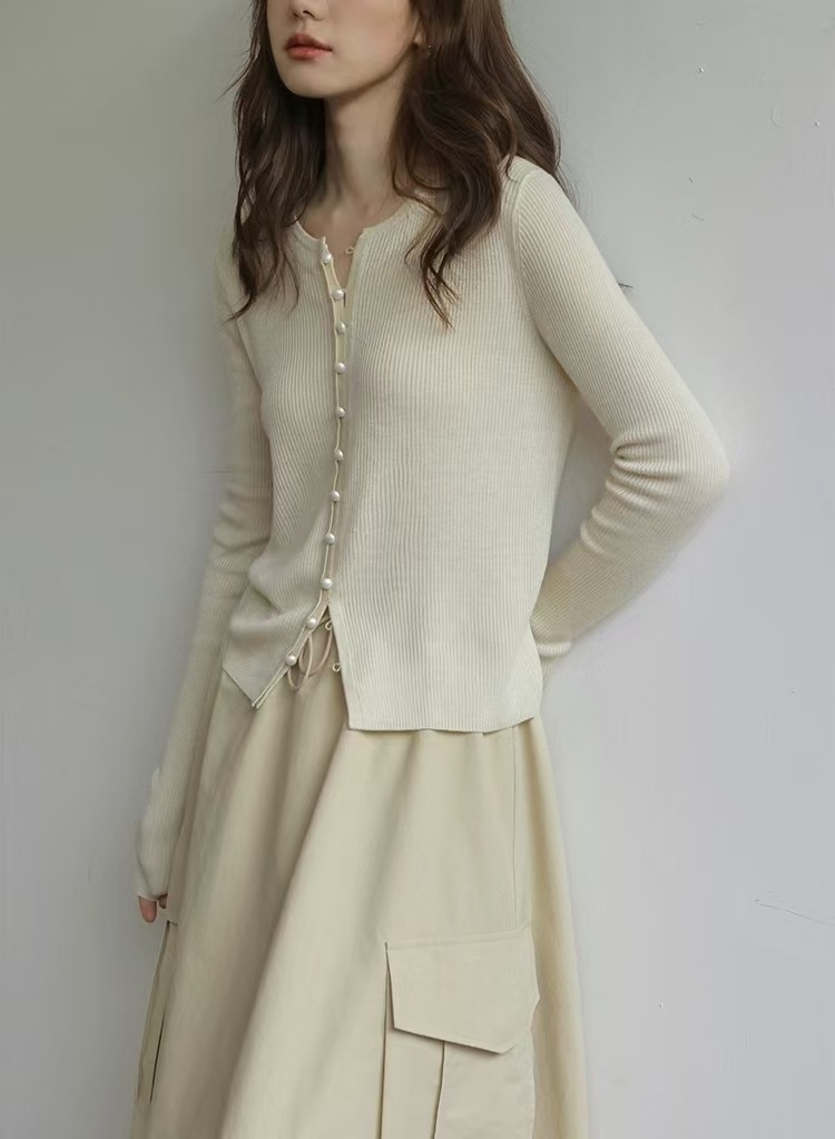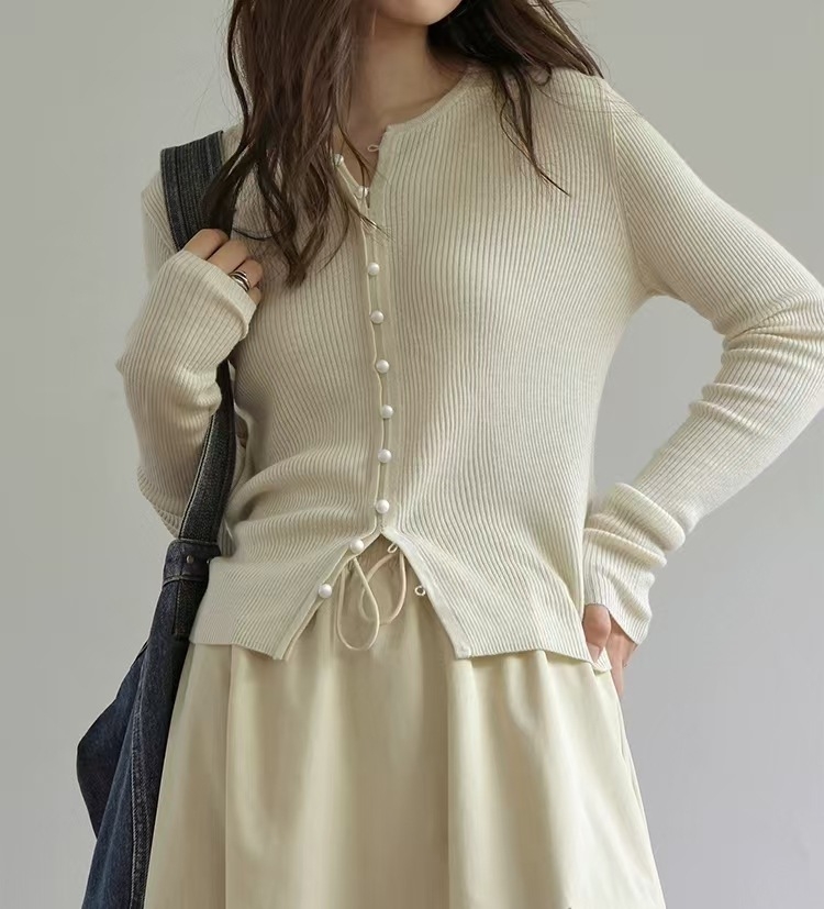 上半身に厚みが出やすい骨格ストレートさんのバランスを整え、すっきりとした印象に見せるリブニットカーディガン。体のラインを自然に整える縦リブと、装飾を控えたシンプルなシルエットが、上半身をコンパクトにまとめながら上品な雰囲気を演出します。フロントのパールボタンがさりげない華やかさを添え、1枚でも羽織りでも活躍。きれいめからカジュアルまで幅広く着回せる大人のデイリーアイテムです。
