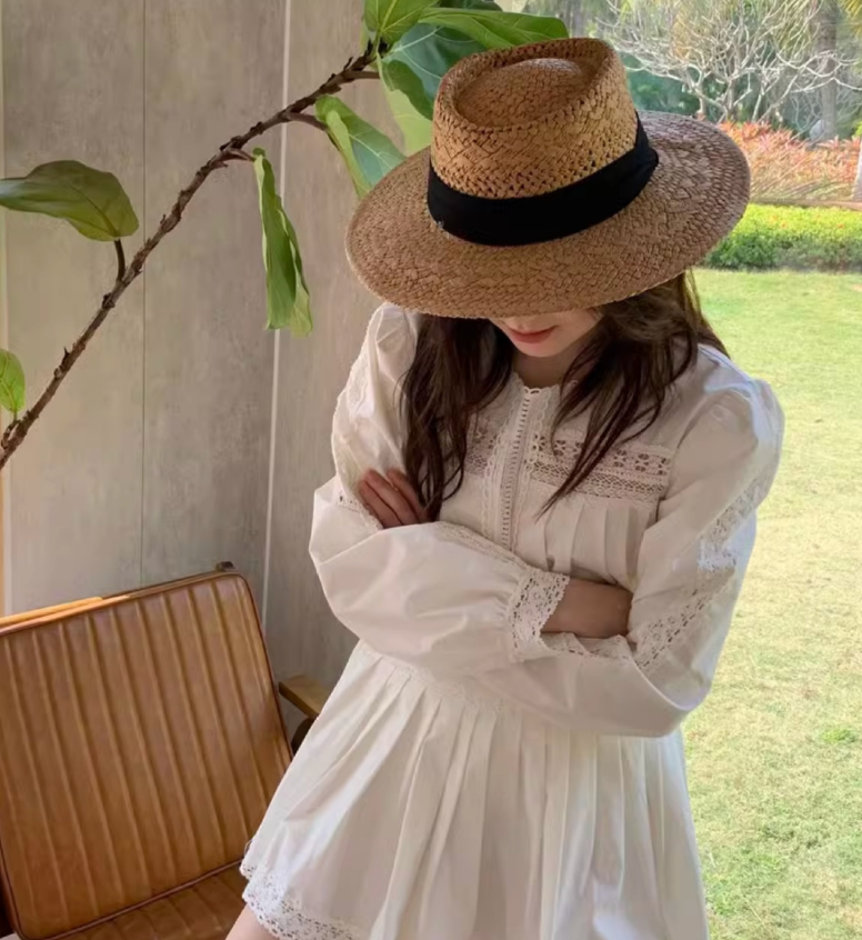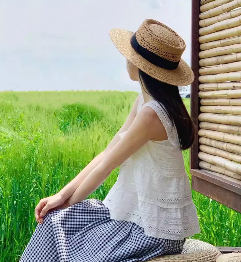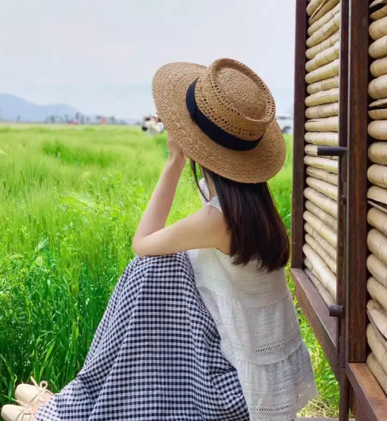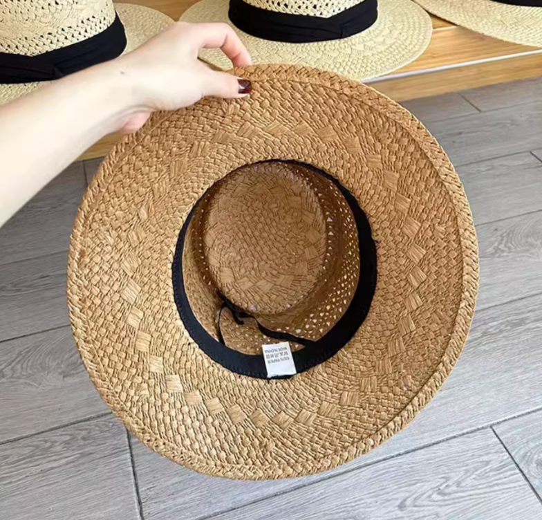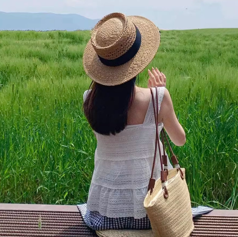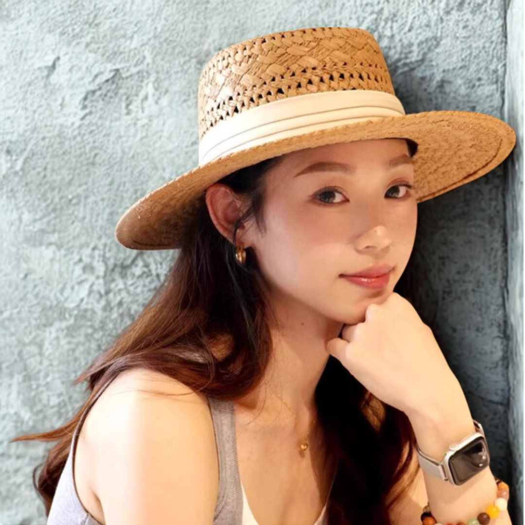 直線的なフォルムが印象的なカンカン帽は、シンプルで端正なスタイルと相性のよい夏の定番アイテム。フラットなクラウンと水平なブリムが、すっきりとした印象をつくり、甘さを抑えた大人の雰囲気に仕上げます。装飾を控えたブラックリボンがほどよいアクセントとなり、きれいめカジュアルからリゾートスタイルまで幅広く活躍します。