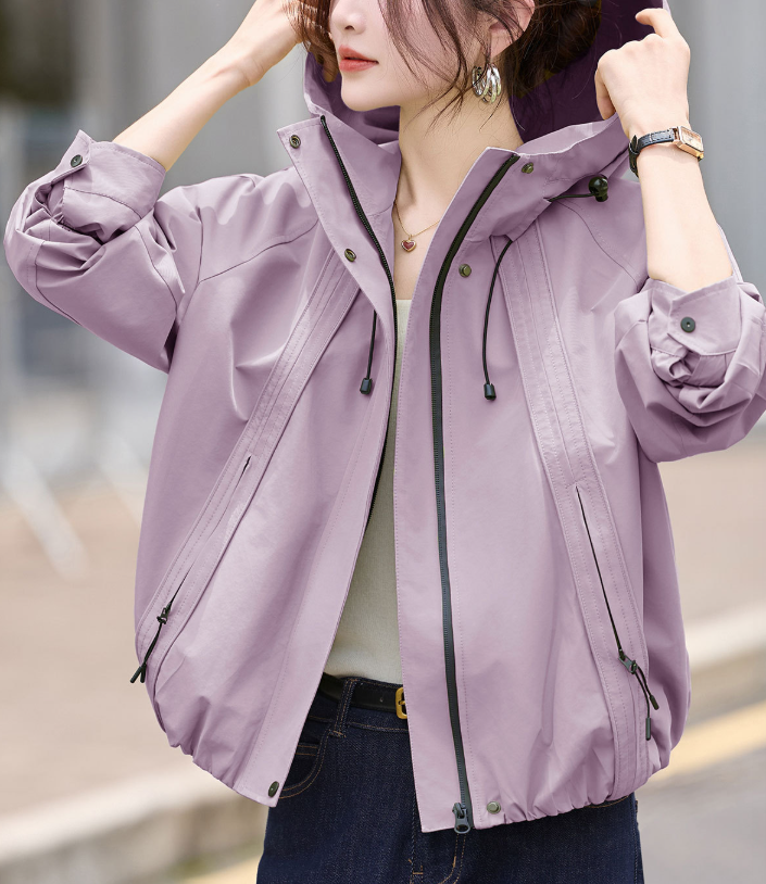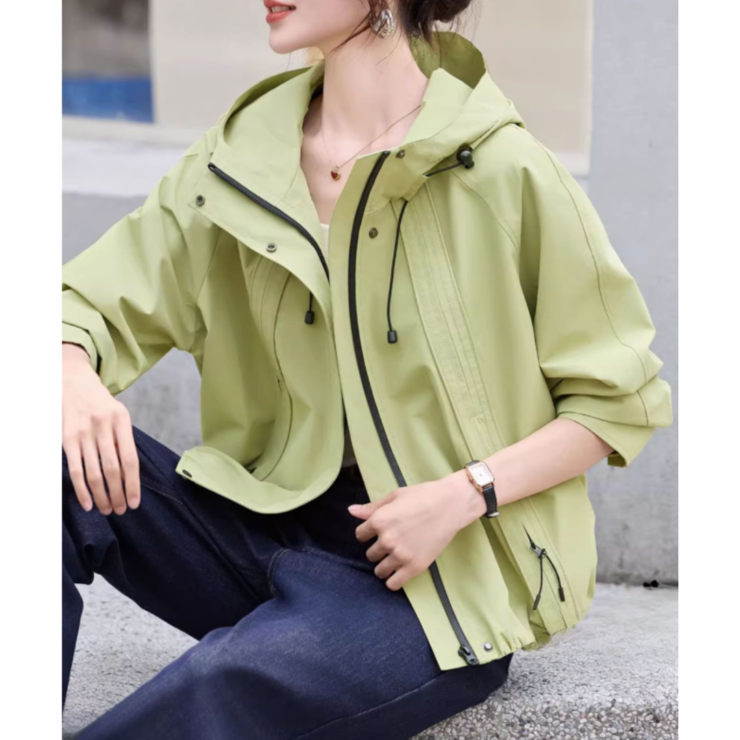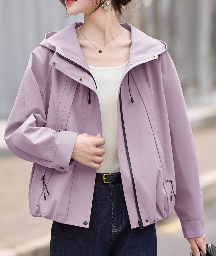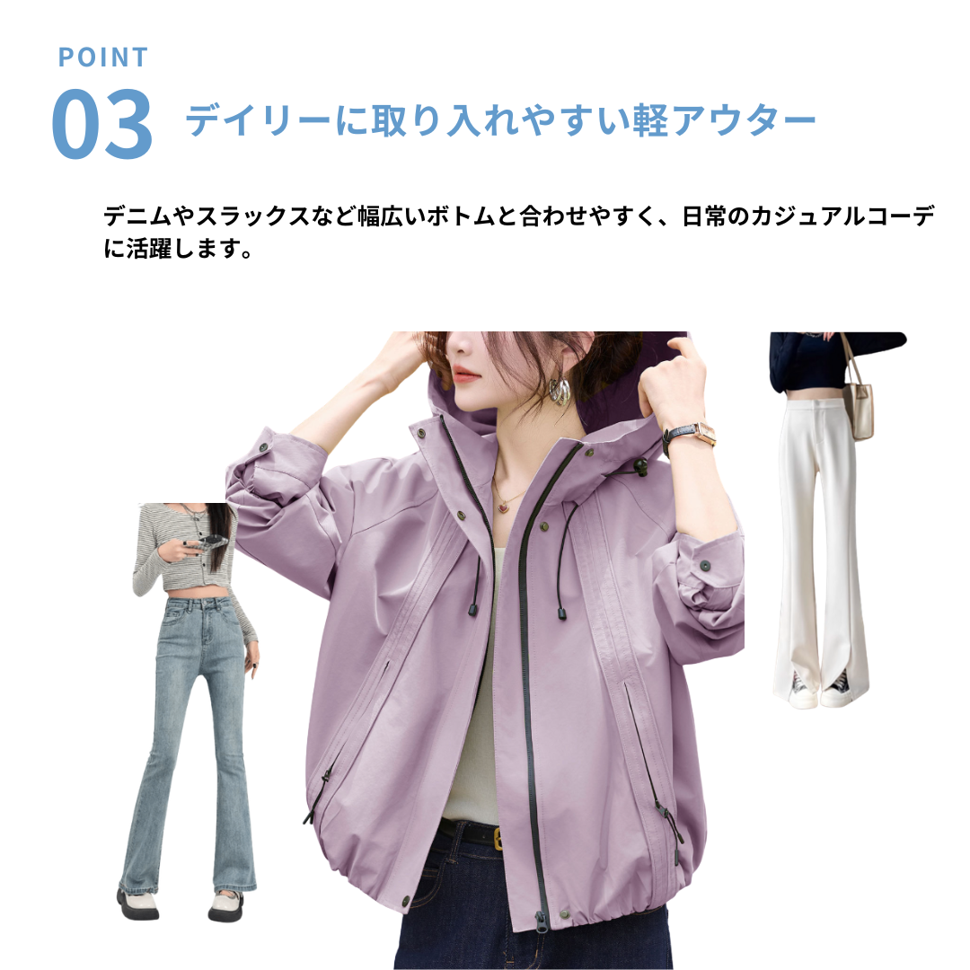 骨格ストレートさんの上半身をすっきり見せながら、カジュアルコーデに取り入れやすいフード付きウインドブレーカー。装飾を抑えたシンプルなデザインと軽やかな素材が、コーディネートの印象を整えた大人のスタイルにまとまります。ほどよい丈感でパンツスタイルともバランスよく、デイリーコーデにも取り入れやすい一枚。季節の変わり目にも活躍する軽やかなアウターです。