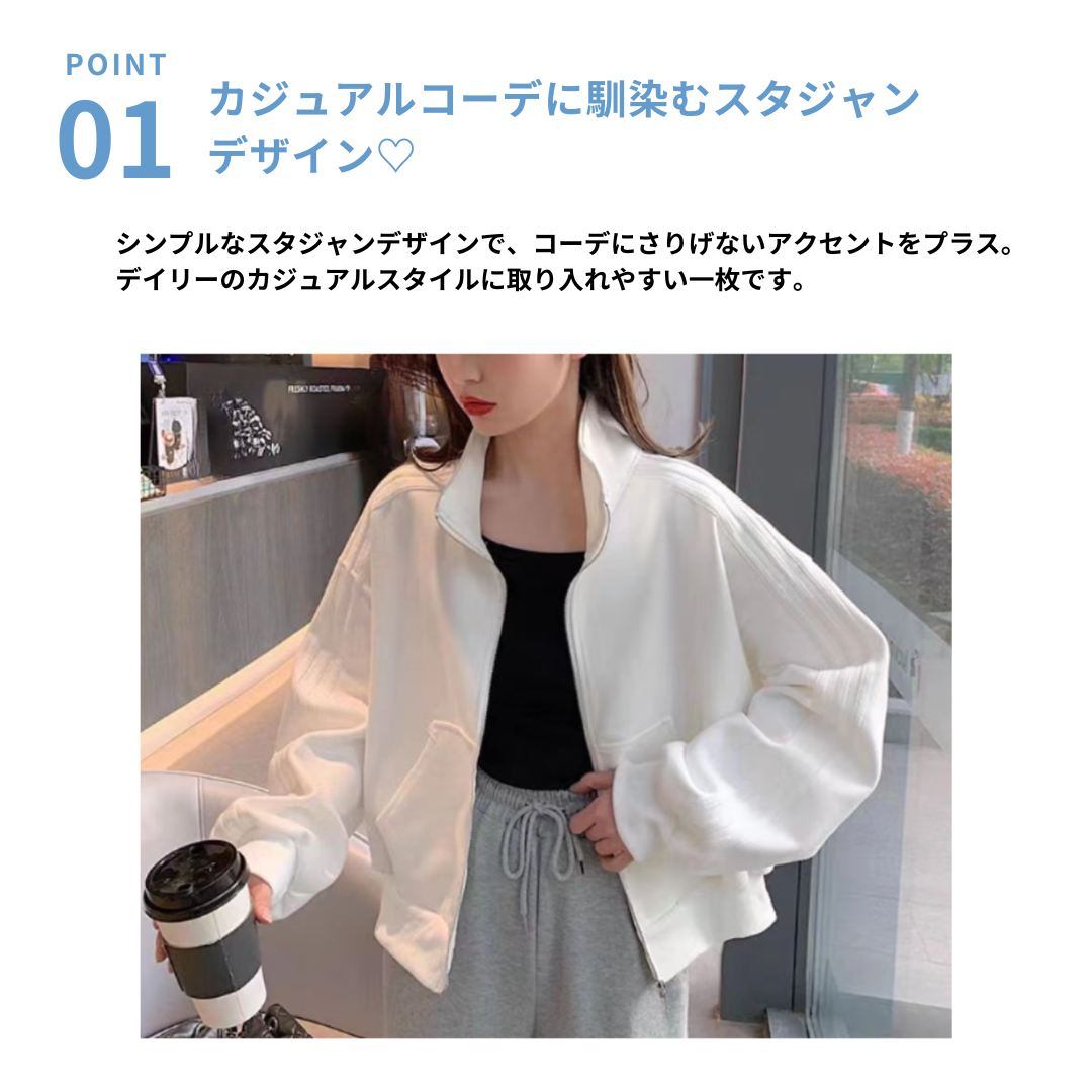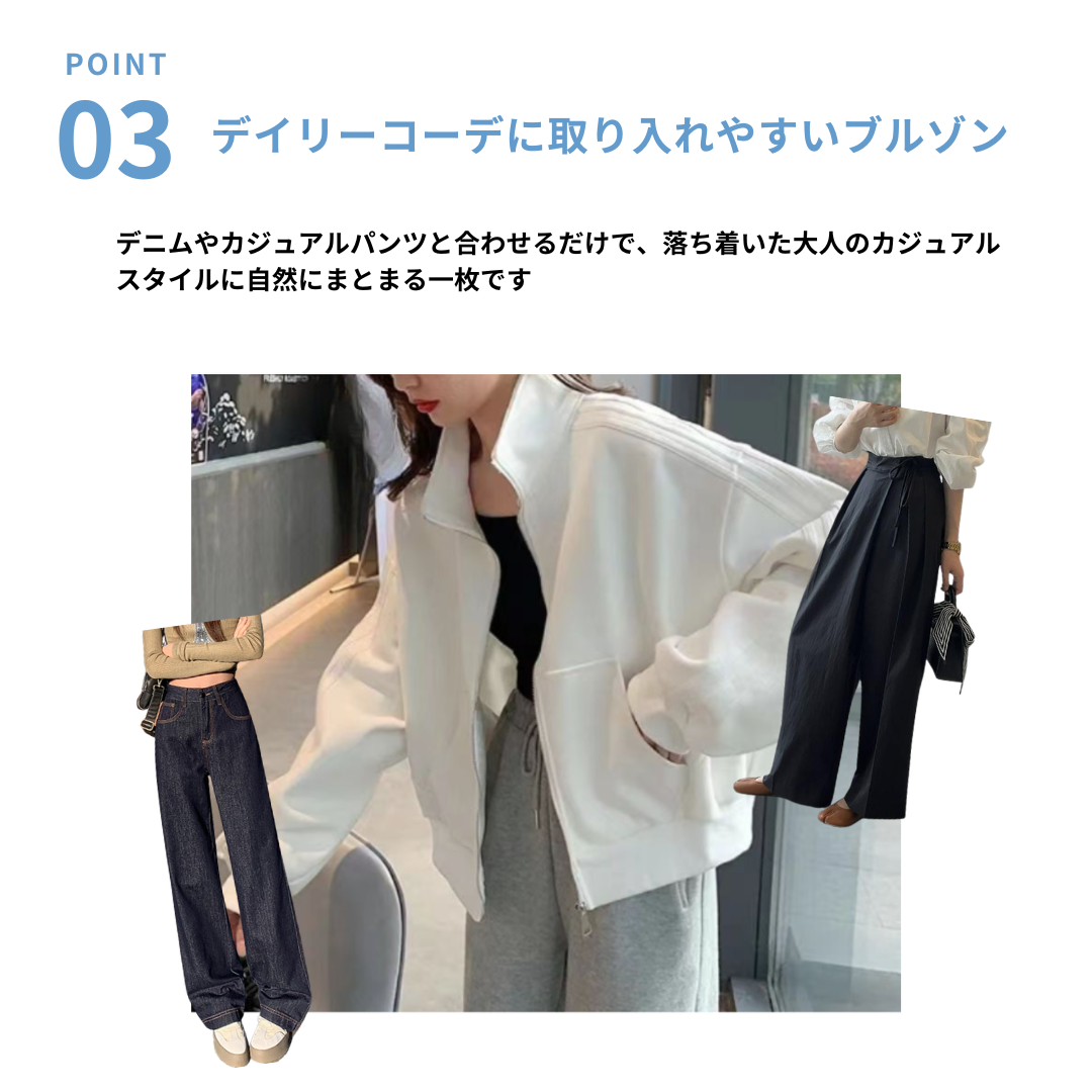 骨格ストレートさんのカジュアルコーデに取り入れやすいスタジャンブルゾン。シンプルなスタジャンデザインがコーディネートに程よいアクセントを添え、デニムやパンツスタイルとも合わせやすい一枚です。軽やかな着心地で日常コーデにも活躍し、シンプルなスタイルに羽織るだけでまとまりのあるカジュアルスタイルが完成します。