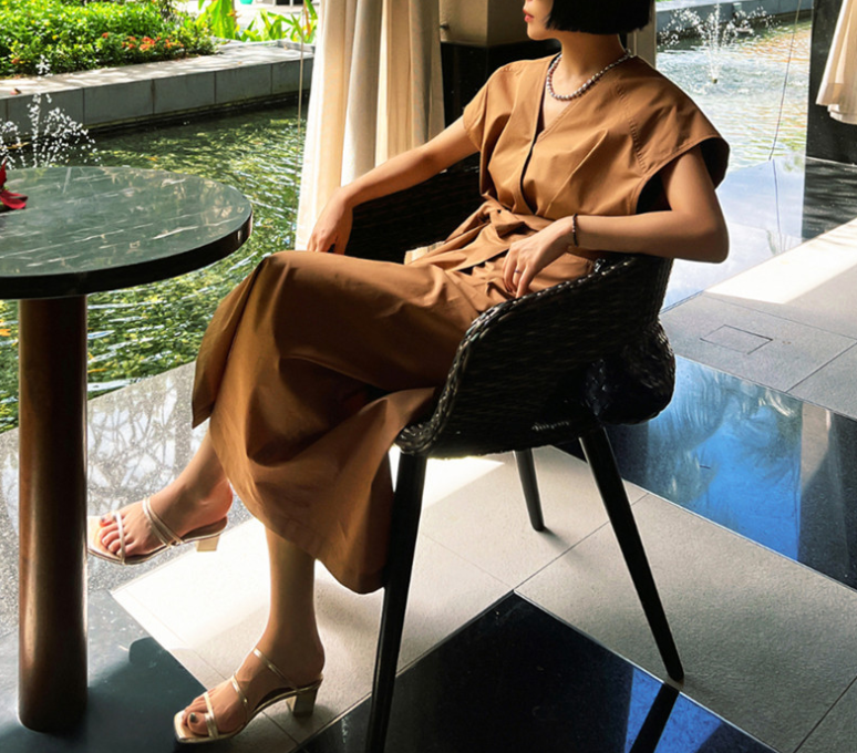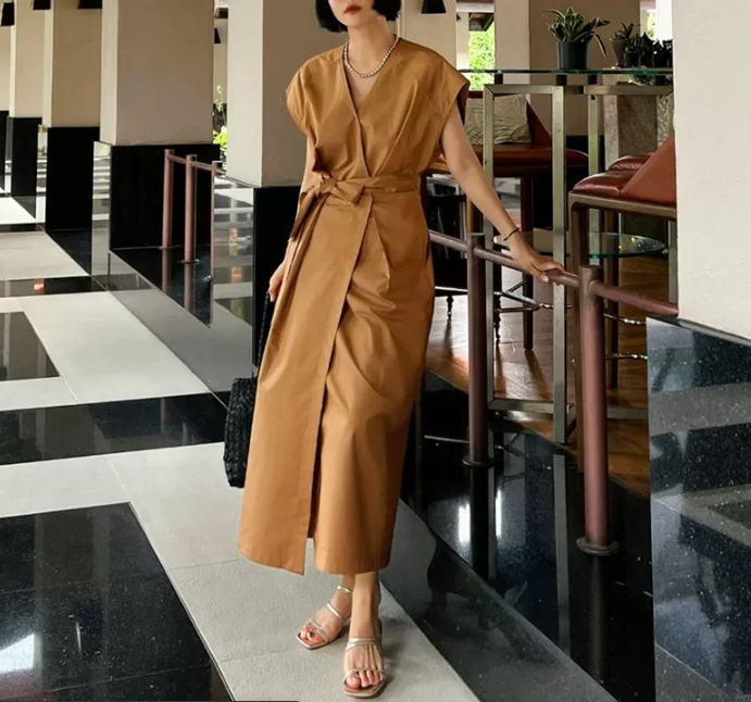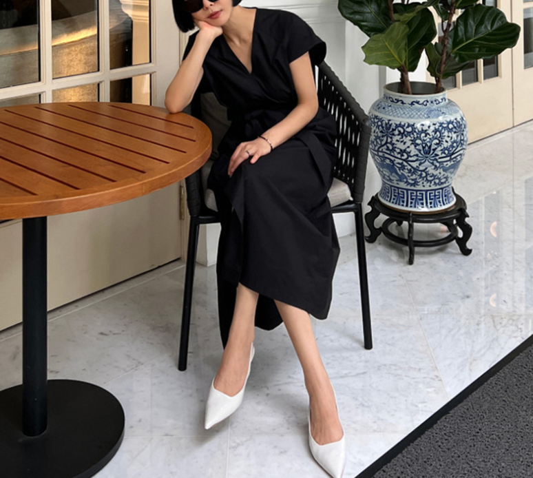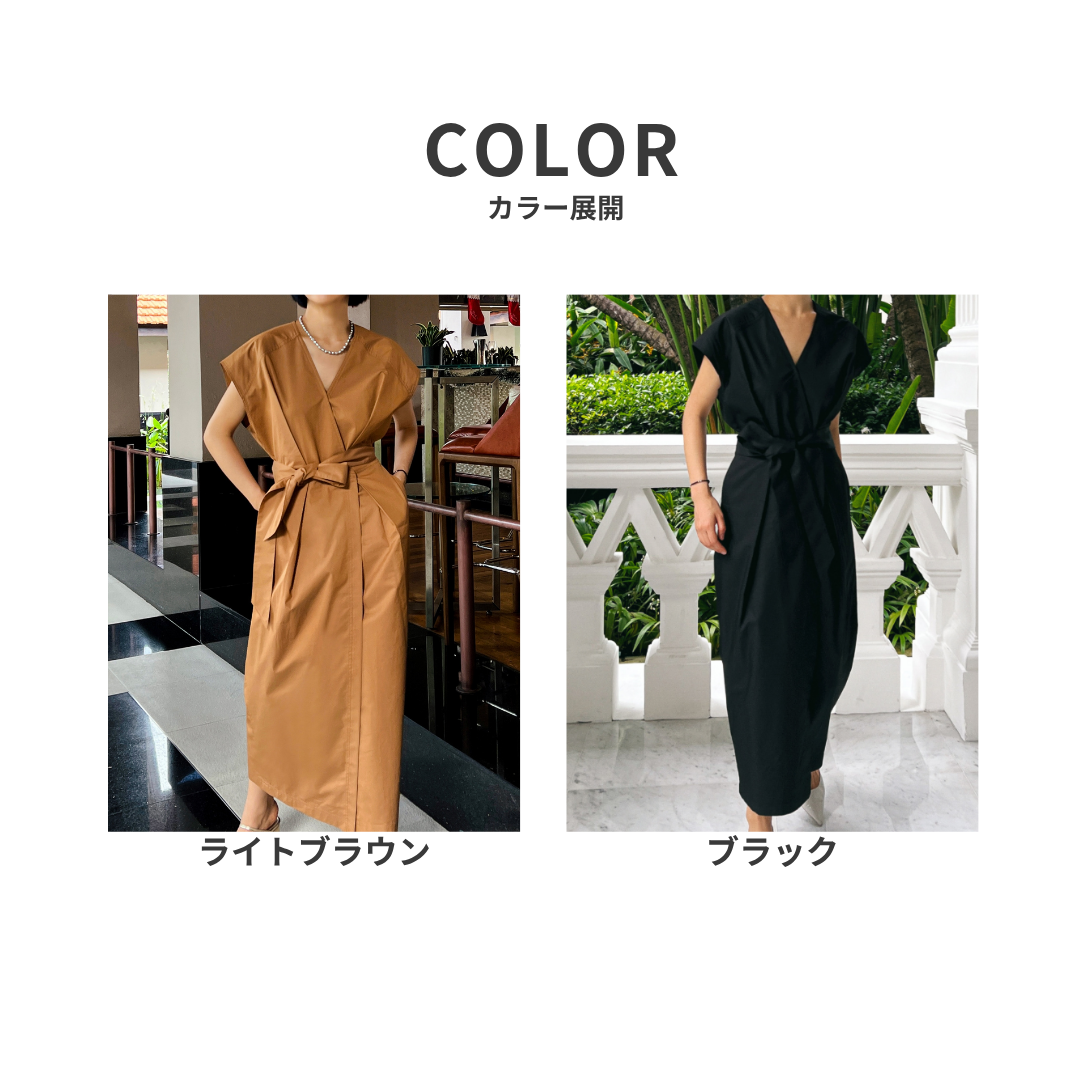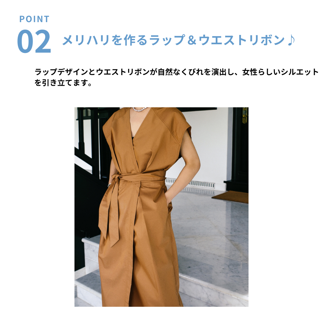 すっきりとしたVネックとラップデザインが上品な印象を与えるワンピース。縦のラインを意識したシルエットが骨格ストレートさんの立体的な体型をバランスよく整え、自然なスタイルアップを叶えます。ウエストリボンでメリハリを作りながら、落ち感のあるシルエットで大人っぽく洗練された印象に。シンプルながら一枚でコーデが完成する、きれいめにもカジュアルにも活躍するワンピースです。