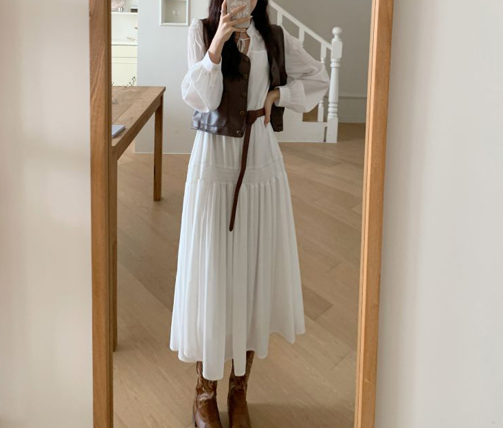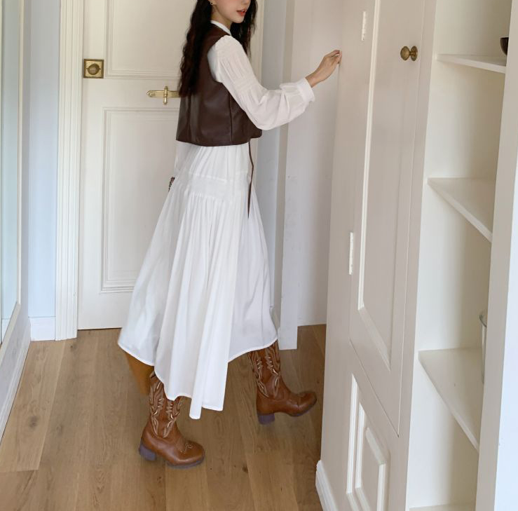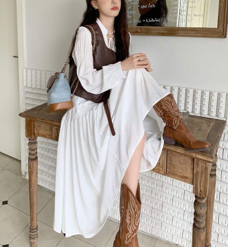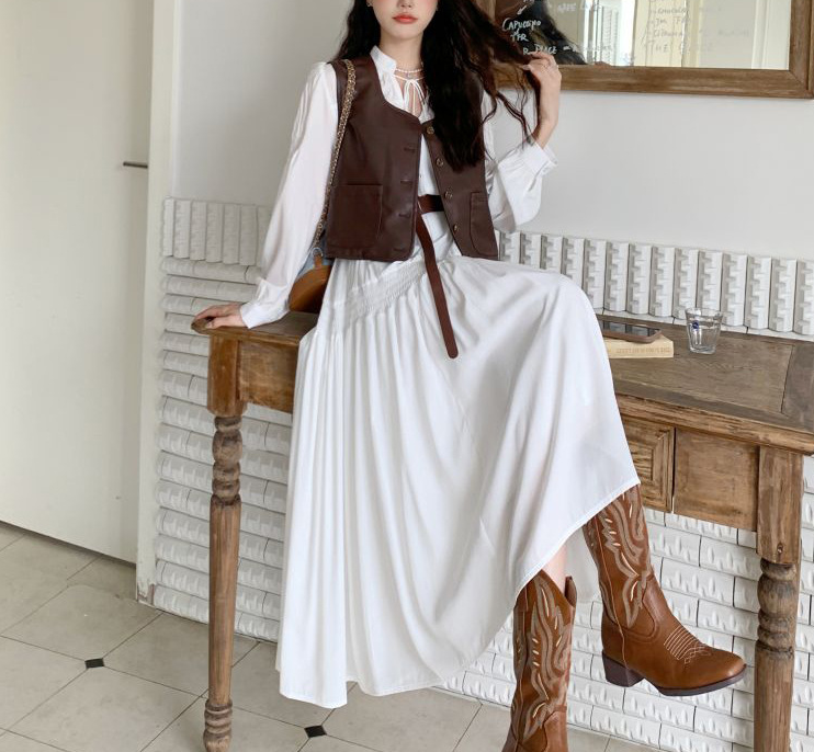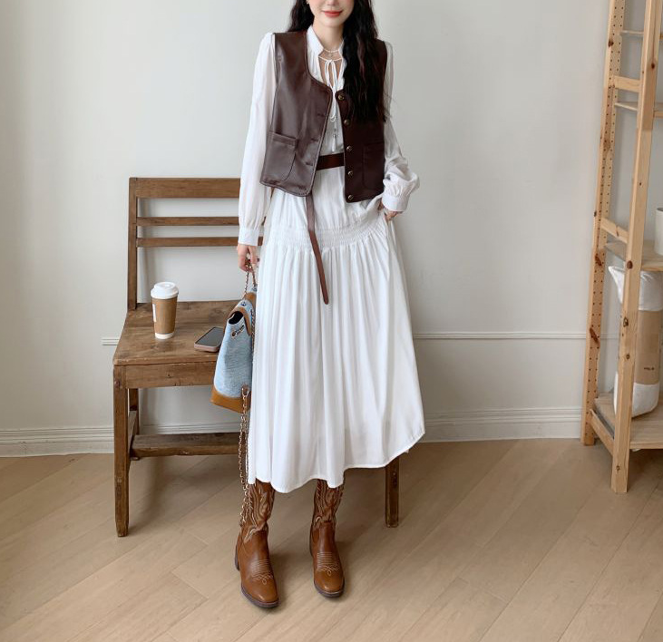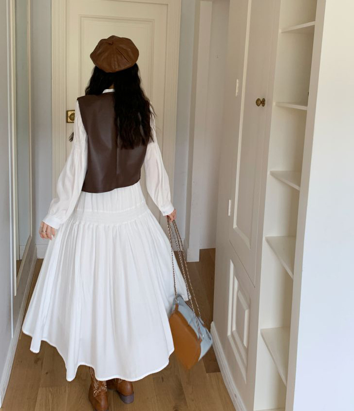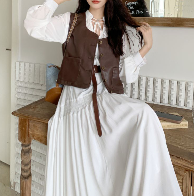 上品なロングワンピースにPUレザーベストを合わせた、大人カジュアルなセットアイテム。Vラインを作るベストデザインが骨格ストレートさんの上半身をすっきり見せ、全体のバランスを整えます。落ち感のあるロングワンピースが縦のラインを強調し、自然なスタイルアップも◎。セットで着るだけでこなれたレイヤードコーデが完成し、それぞれ単品でも着回しが楽しめる万能セットです。