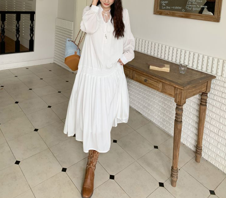透け感:ややあり(ワンピース) 裏地:なし 伸縮性:なし 厚み:やや薄手