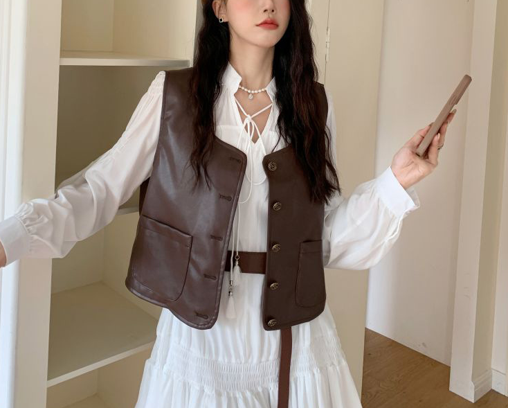 ワンピース 綿 ポリエステル ベスト PUレザー