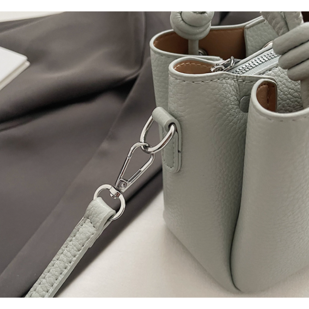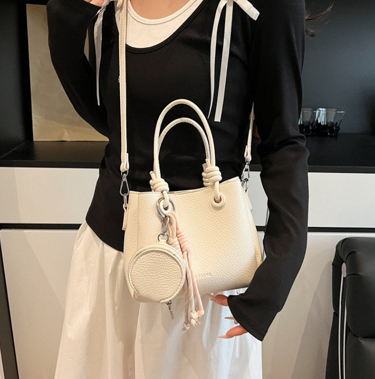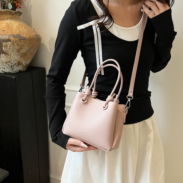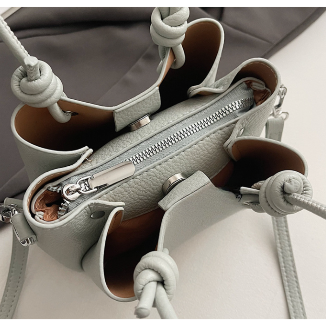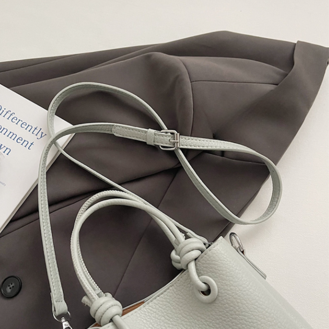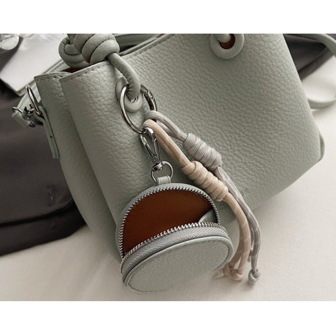ころんとしたフォルムが可愛い、コードストラップデザインのハンドバッグ。上品なシボ感のある素材とシンプルなシルエットで、骨格ストレートさんのきれいめスタイルにも馴染みやすいデザインです。結び目デザインのハンドルがアクセントになり、コーデに程よいこなれ感をプラス。丸型ポーチ付きで小物の整理もしやすく、デイリーからお出かけまで活躍する大人のミニバッグです。