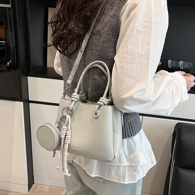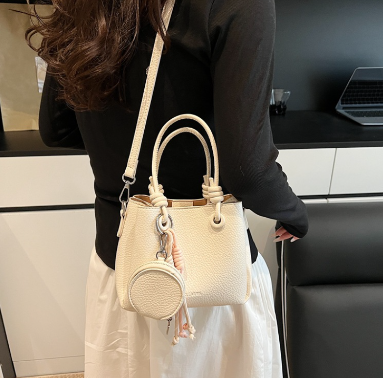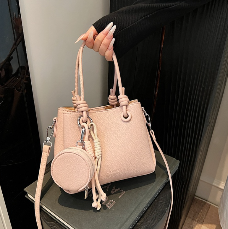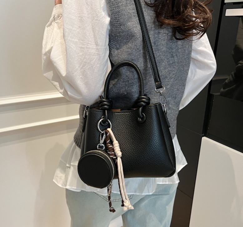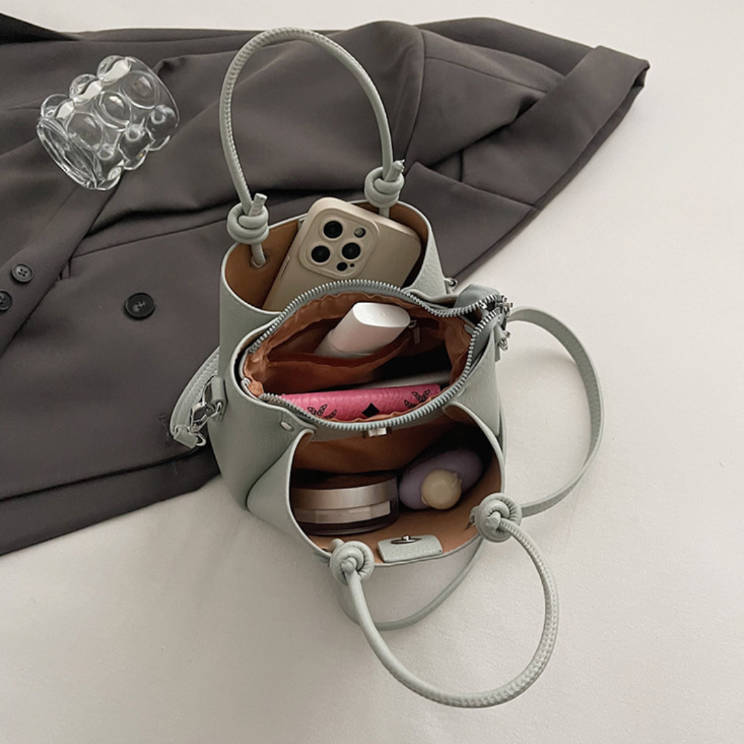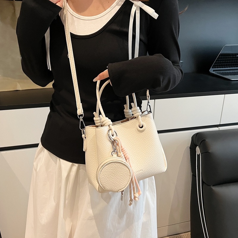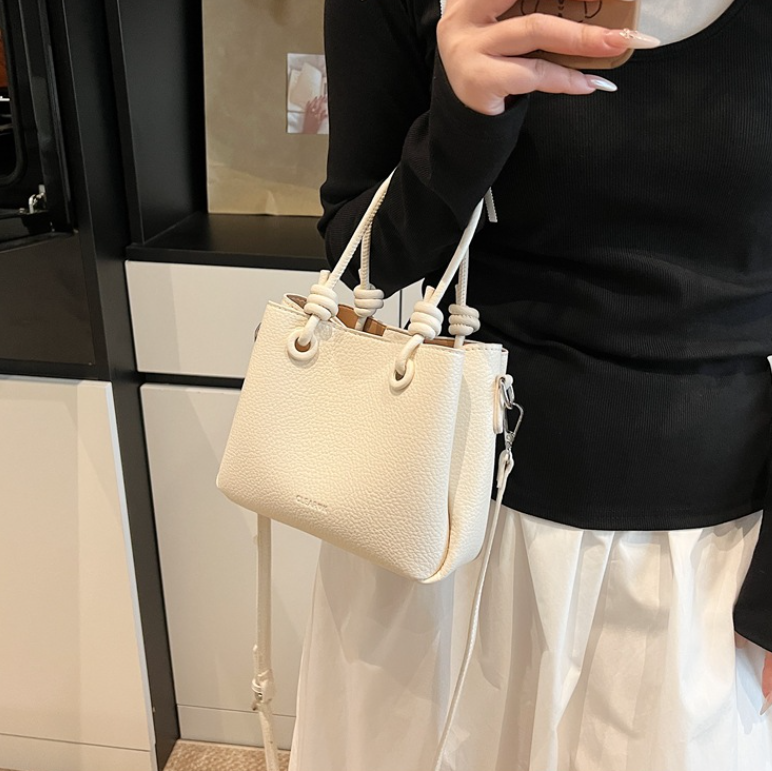 ころんとしたフォルムが可愛い、コードストラップデザインのハンドバッグ。上品なシボ感のある素材とシンプルなシルエットで、骨格ストレートさんのきれいめスタイルにも馴染みやすいデザインです。結び目デザインのハンドルがアクセントになり、コーデに程よいこなれ感をプラス。丸型ポーチ付きで小物の整理もしやすく、デイリーからお出かけまで活躍する大人のミニバッグです。