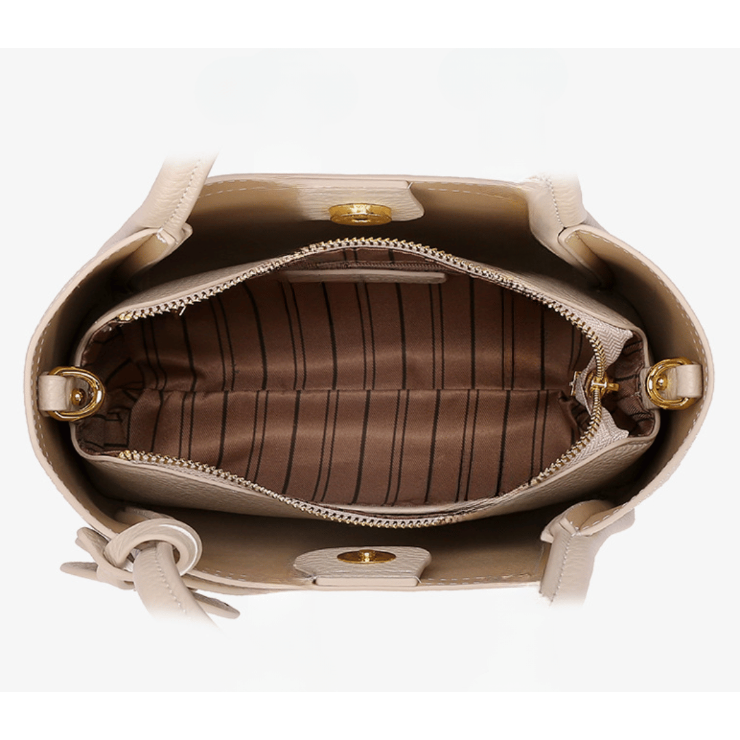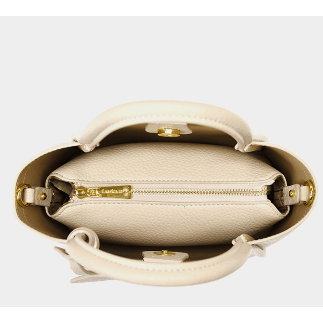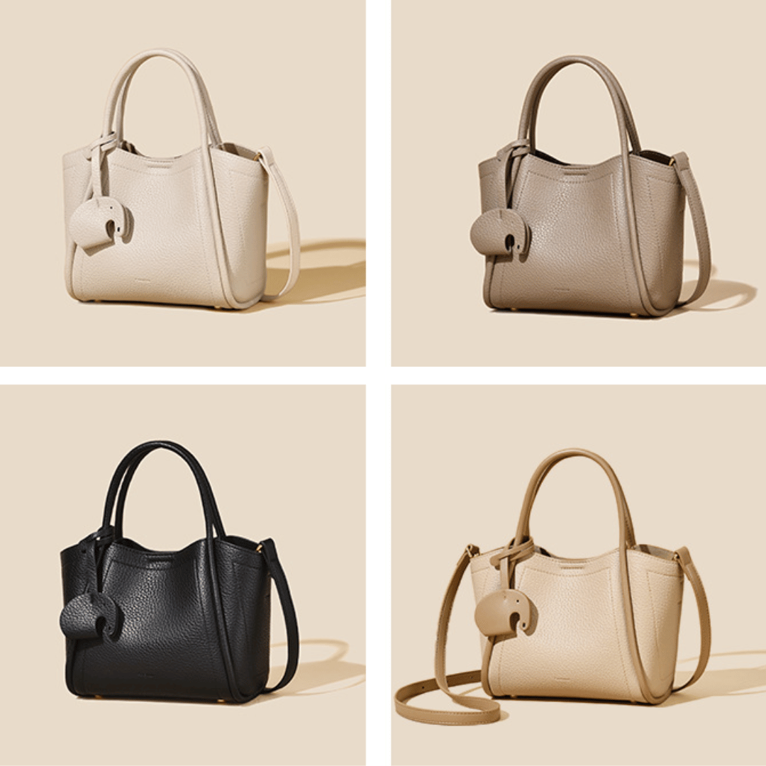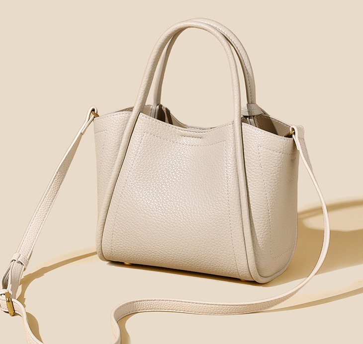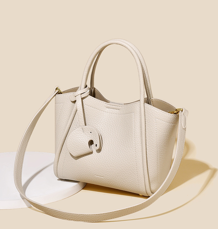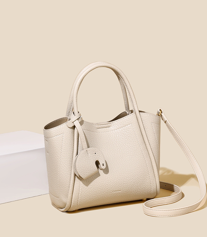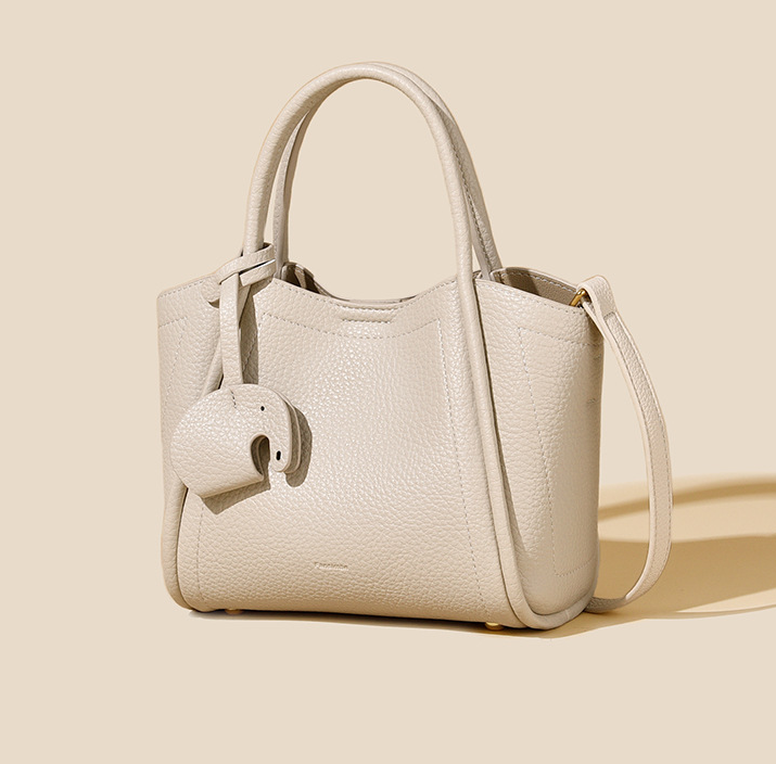 コンパクトながら上品な存在感を放つミニトートショルダーバッグ。シンプルで洗練されたフォルムが、骨格ストレートさんのきれいめスタイルにも自然に馴染みます。上品なシボ感素材と柔らかなカラーが大人のコーデに程よいアクセントをプラス。ハンドバッグとしてもショルダーバッグとしても使える2WAY仕様で、デイリーからお出かけまで幅広く活躍する万能バッグです。 ※チャームは付属しておりません。