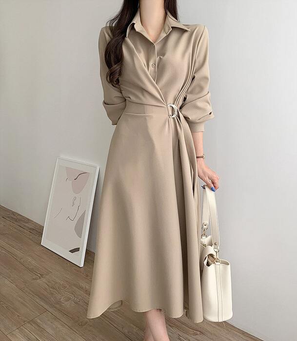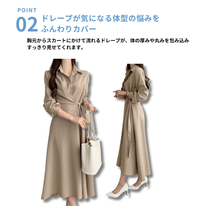 ウエストの切り替えとサイドベルトででスタイルアップの叶う1着。サイドのベルトにより自然なドレープが、胸元からスカートの裾先にまだ続き、立体感が生まれスタイルアップ見えする一着です♡現代的で都会的な洗練された雰囲気のストレートさんにふさわしいワンピースです♪