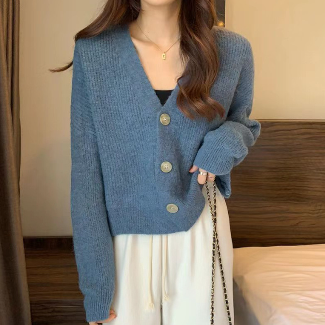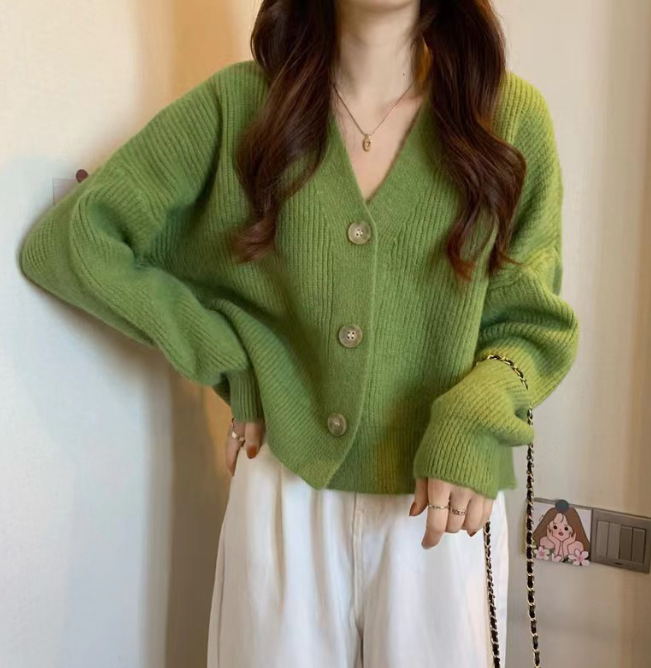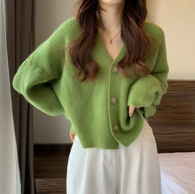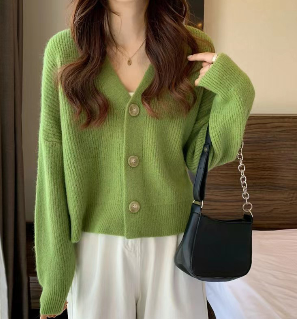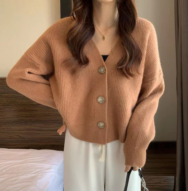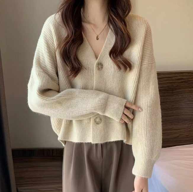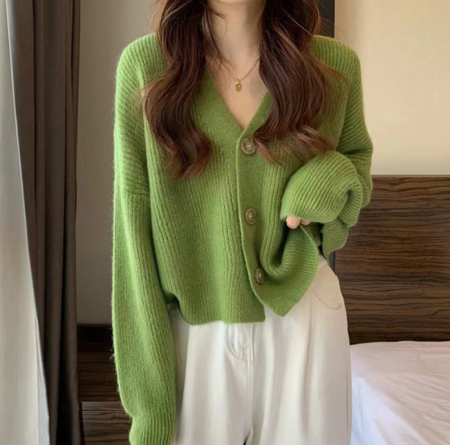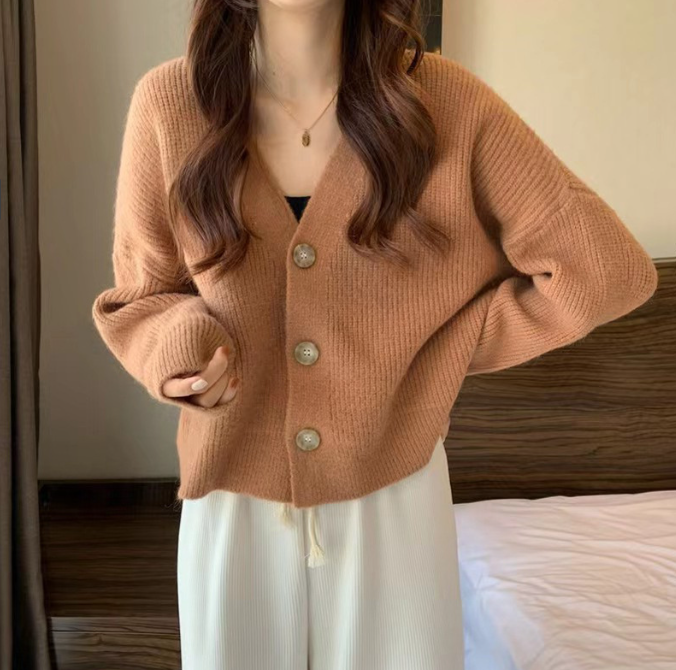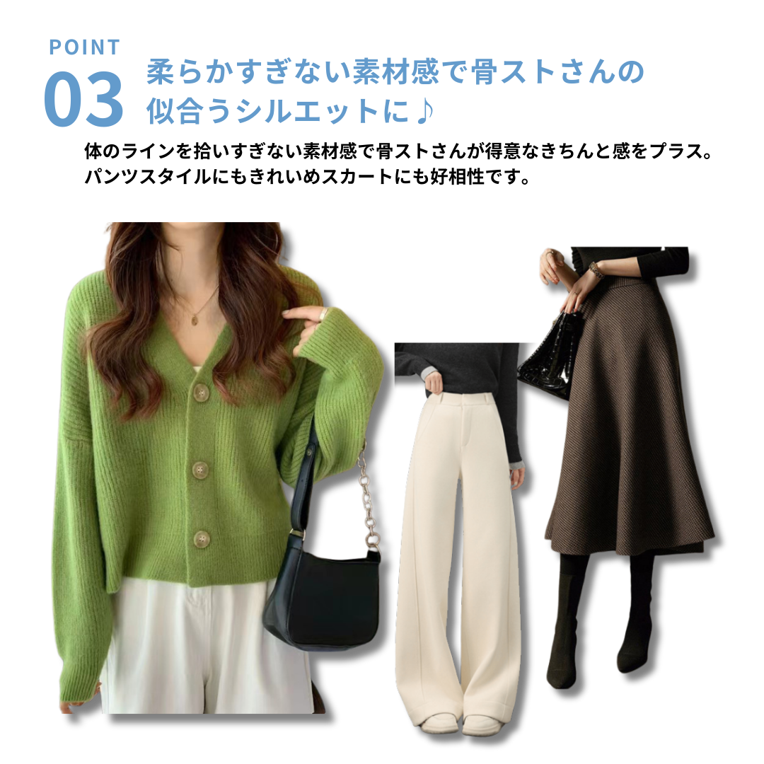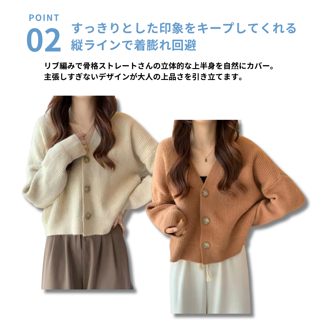 Vネックデザインがエレガントなカラーニットカーディガンです。骨格ストレートさんのシルエットを美しく見せるカットで、デコルテを綺麗に演出します♡体のラインを拾わない素材感とフィット感が抜群で、デイリーからオフィスまで幅広く使えるアイテムです◎どんなトップスとも相性が良く、スタイリングの幅が広がります。