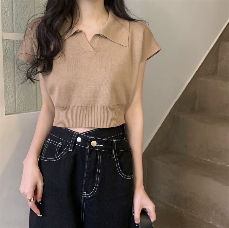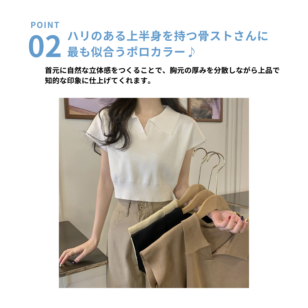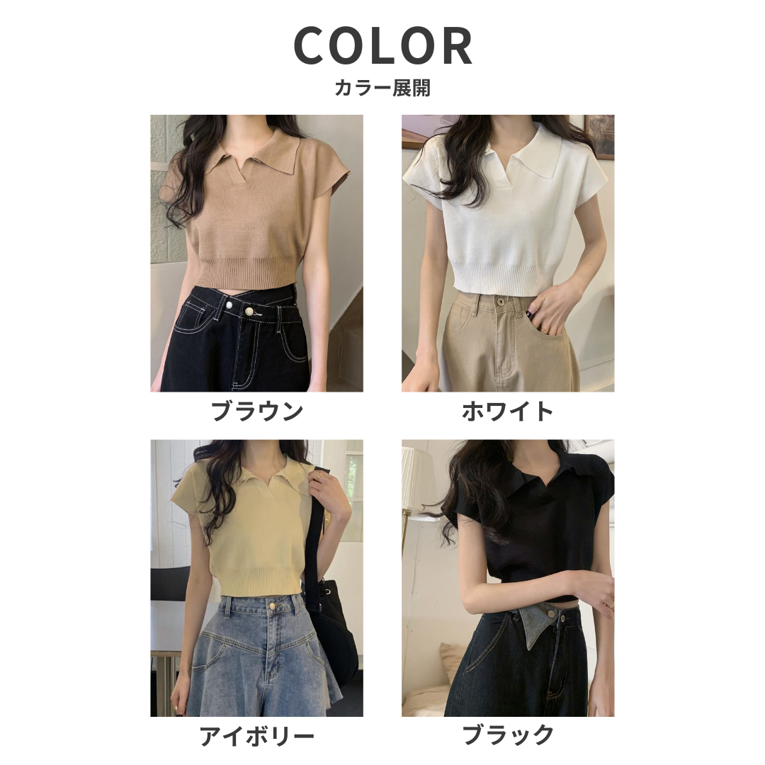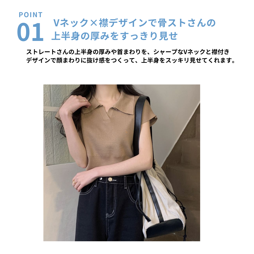 ショート丈がトレンド感を引き立てるVネックニットトップス♪骨格ストレートさんのウエストラインを美しく見せ、シンプルなデザインでどんなボトムスとも相性抜群。デイリーに使いやすい一枚です♡