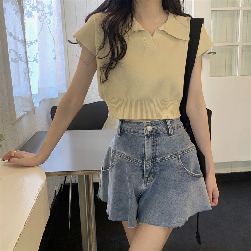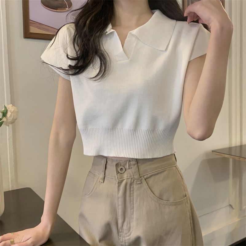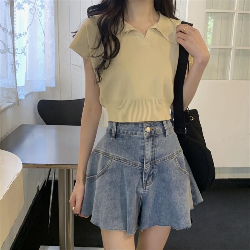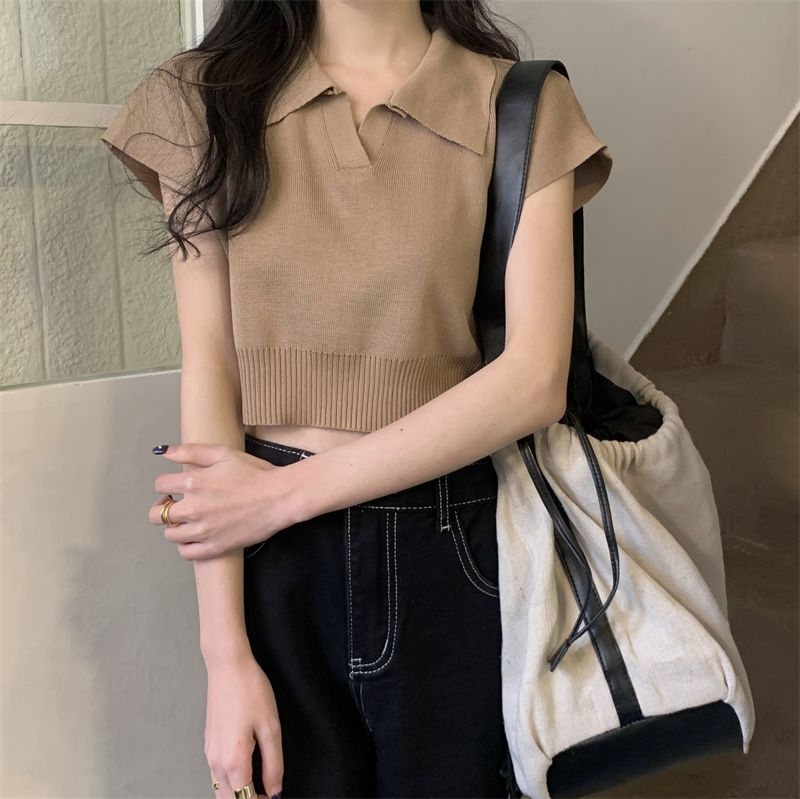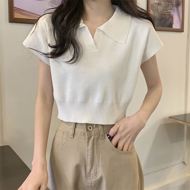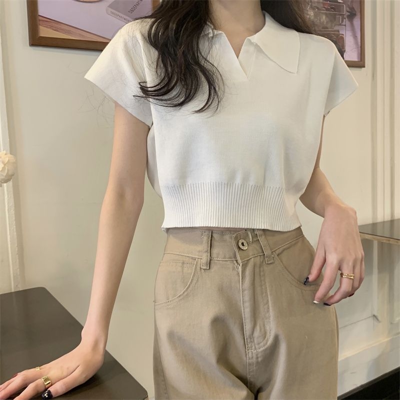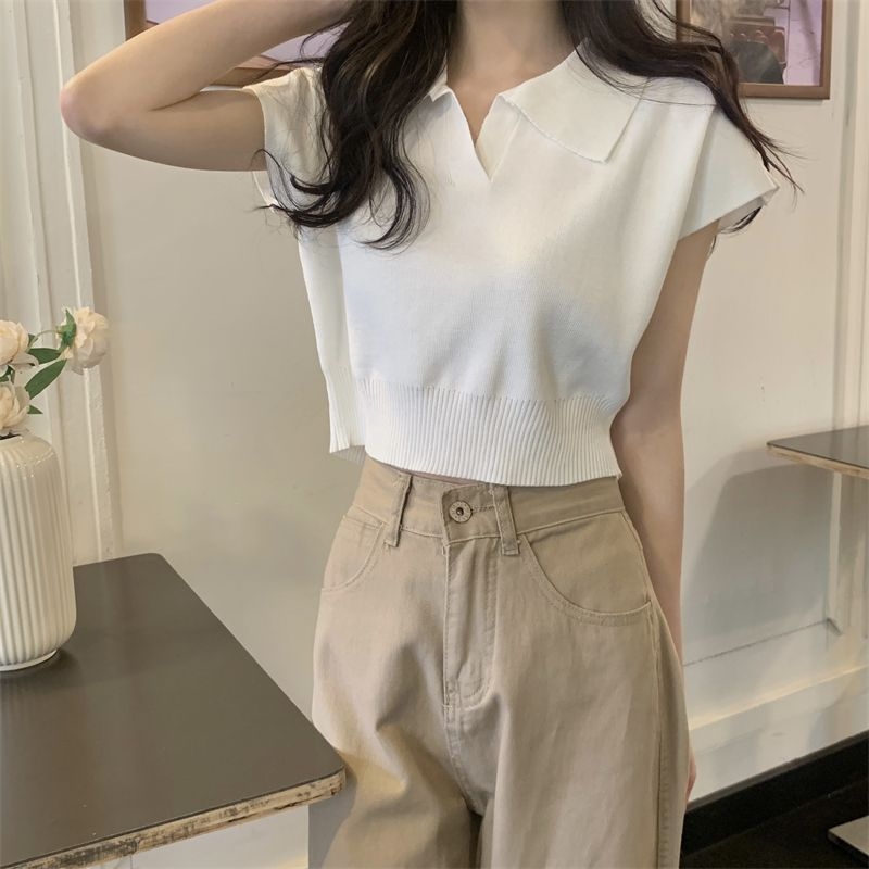 ショート丈がトレンド感を引き立てるVネックニットトップス♪骨格ストレートさんのウエストラインを美しく見せ、シンプルなデザインでどんなボトムスとも相性抜群。デイリーに使いやすい一枚です♡