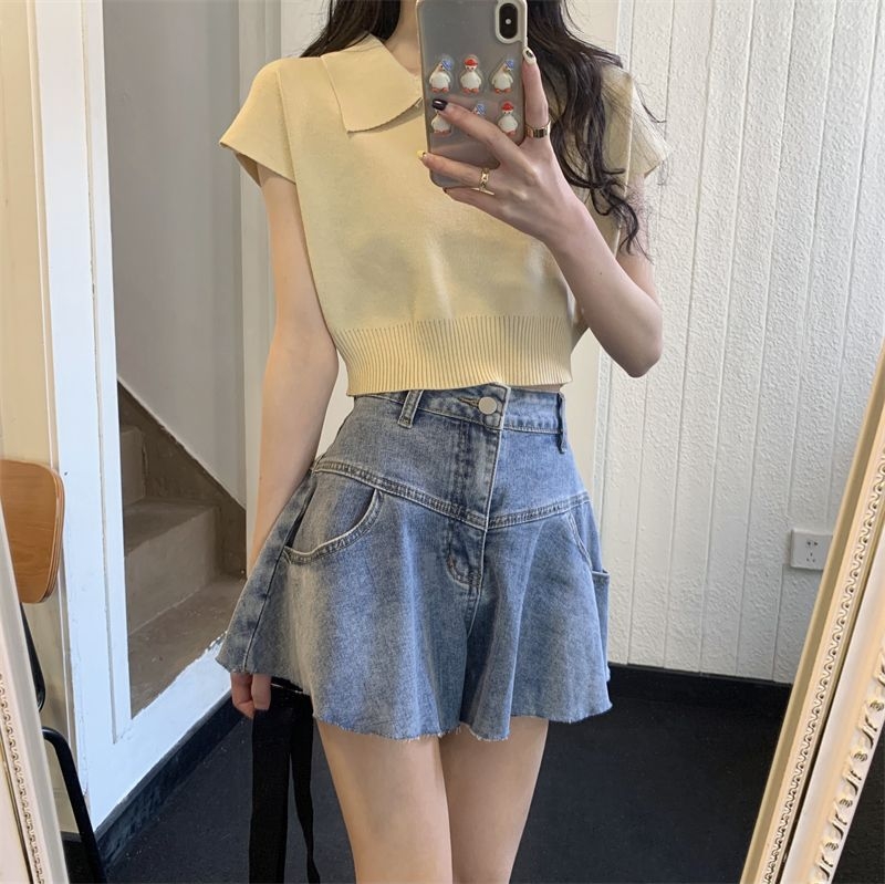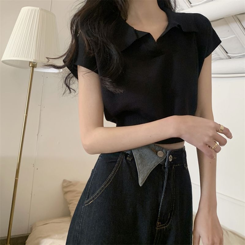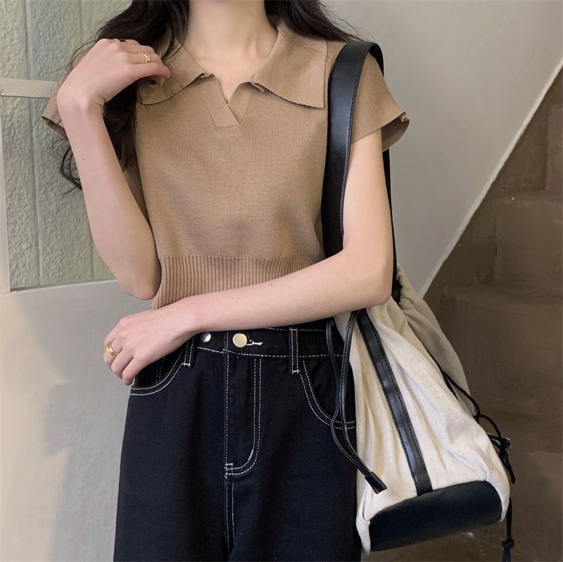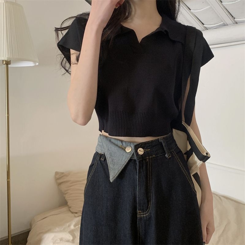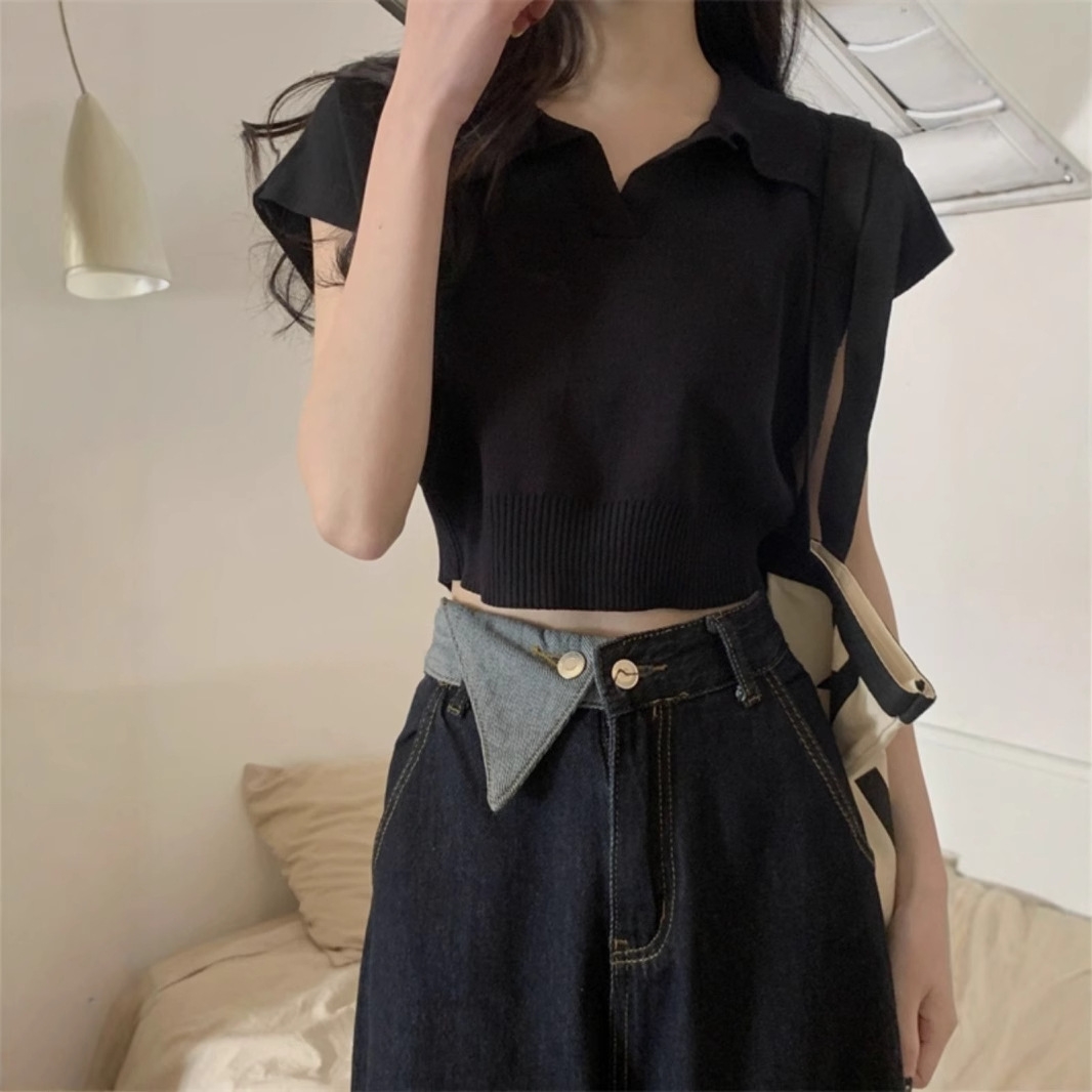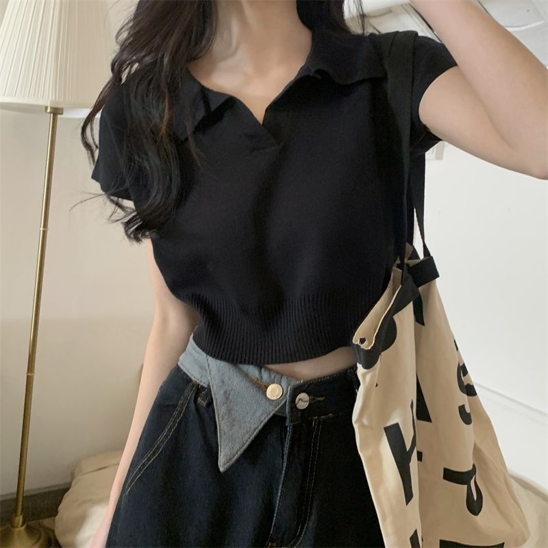 ショート丈がトレンド感を引き立てるVネックニットトップス♪骨格ストレートさんのウエストラインを美しく見せ、シンプルなデザインでどんなボトムスとも相性抜群。デイリーに使いやすい一枚です♡